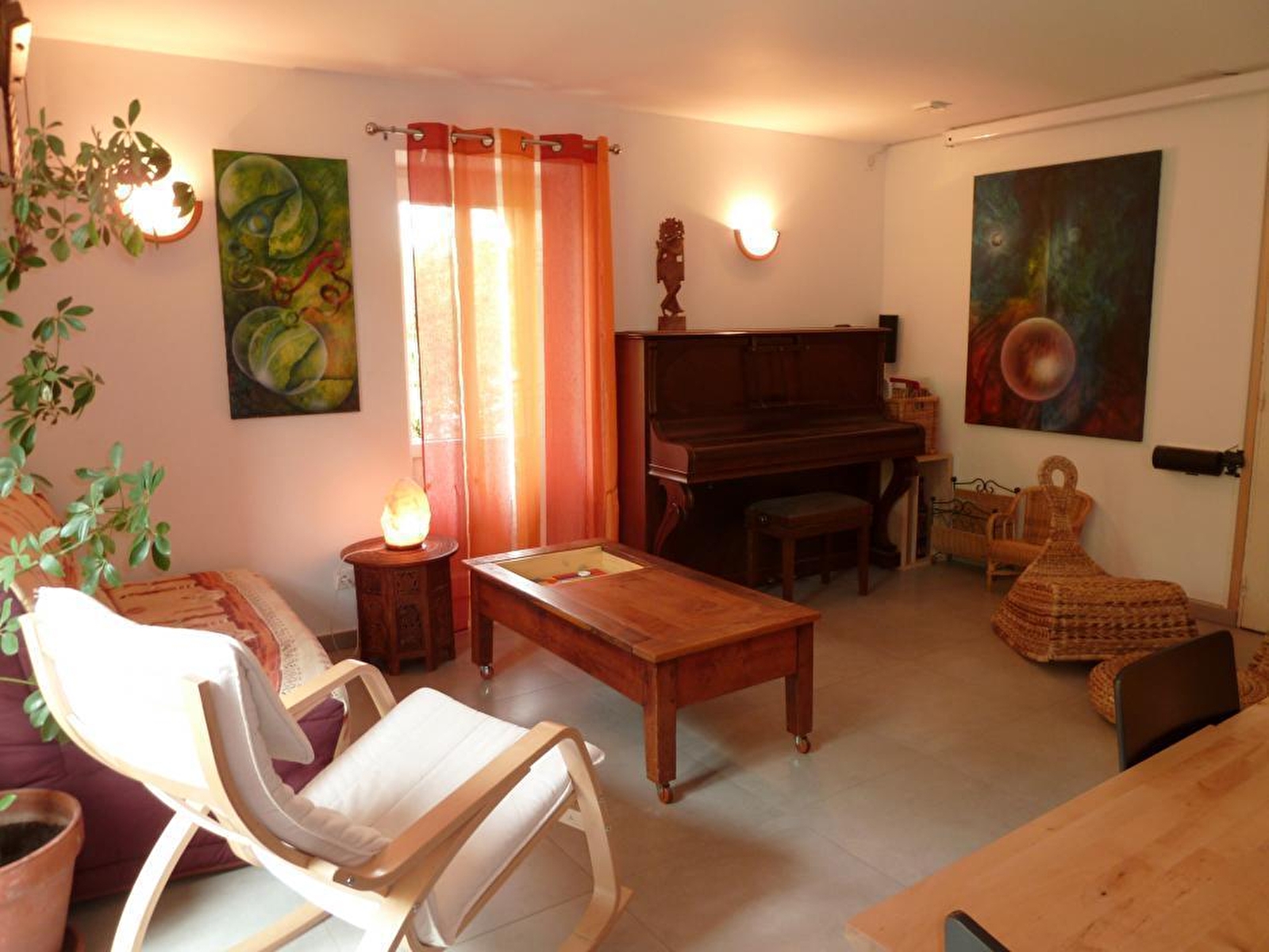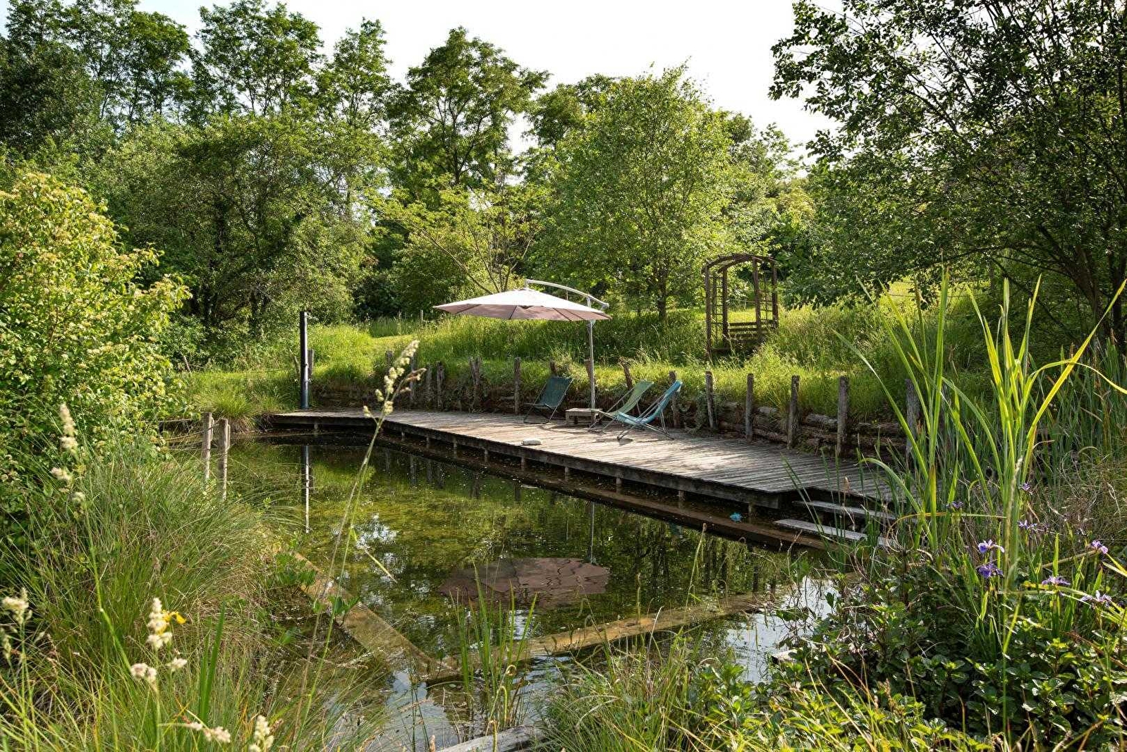 Composition : Maison individuelle voisinant un autre bâtiment (comprenant salle bien-être, salle de yoga et accueil) et la maison des propriétaires (indépendance totale sans vis-à-vis). Wifi. Chauffage central solaire + poêle bois. Rdc : séjour-cuisine-salon (TV/vidéoprojecteur, piano), 2 chambres (lit 2 p. 140x190cm / 2 lits 1 p. 90x200cm) dont 1 avec douche hammam multi-jets privée, salle d'eau (douche multi-jets), Wc indépendant. 1er étage: second séjour-cuisine (coin-repas, bureau PC), 2 chambres (lit 2 p. 140x190cm / 4 lits 1 p. 90x200cm dont 2 superposés), salle de bain (baignoire balnéothérapie, douche, WC). 2ème étage: chambre en mezzanine (2 lits 1 p. 90x200cm). Terrasse + jardinet privatifs (table ping-pong). Parking + local vélos + prise de recharge voiture électrique privés. Terrain commun 7 ha. Espace de baignade naturelle (partagé). Commerces & services 11 km.