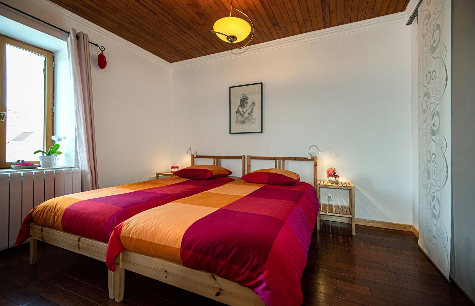 Yvan, expert en éco-construction et Ramatara, professeur de yoga, vous accueillent dans une authentique maison de pays de 1882 rénovée avec soins dans une démarche écologique globale, sur un vaste domaine naturel de 7 ha. Paisible petit hameau typique niché au calme en pleine campagne bressanne sur les rives de la Seille, remarquable écosystème classé « Zone Natura 2000 » (réserve d'oiseaux migrateurs, espèces végétales rares, nombreux poissons dont les célèbres silures, animaux et faune sauvage…). Lovée au creux d'un agréable écrin préservé de nature et verdure en lisière de prairies & forêts, aménagée dans un esprit de permaculture et de « micro ferme » sans nuisance (âne, poney, poules, canards, oies, ruches…), la propriété dispose d'un espace de baignade naturelle (partagé), d'une salle bien-être avec hammam & salle de massage (prestations professionnelles payantes) et d'un parcours pédestre en forêt. Chaleureux cachet campagnard, cosy et douillet. Ambiance zen et douce. Large terrasse exposée et ombragée en gravier jouxtant un jardinet privé.