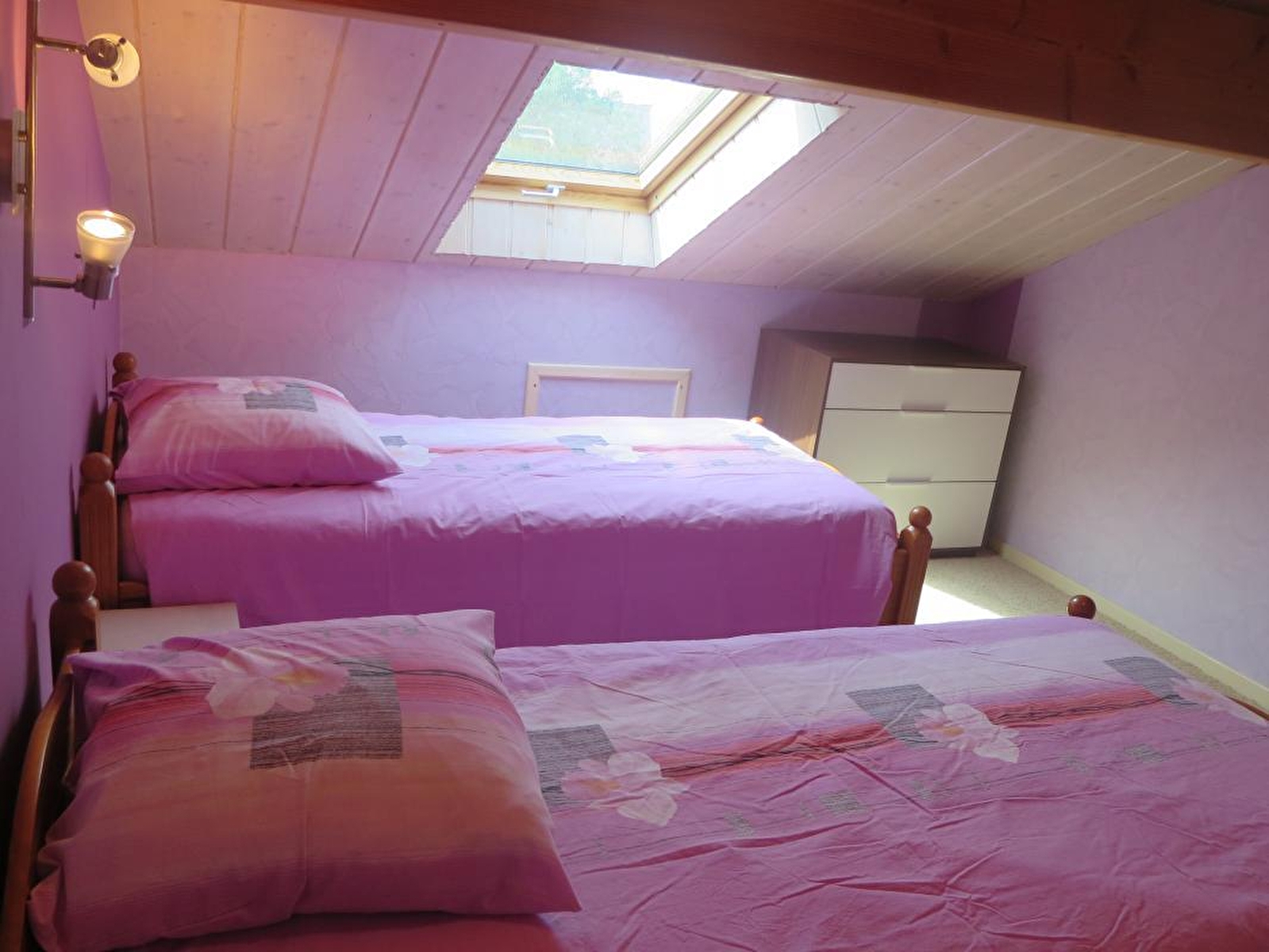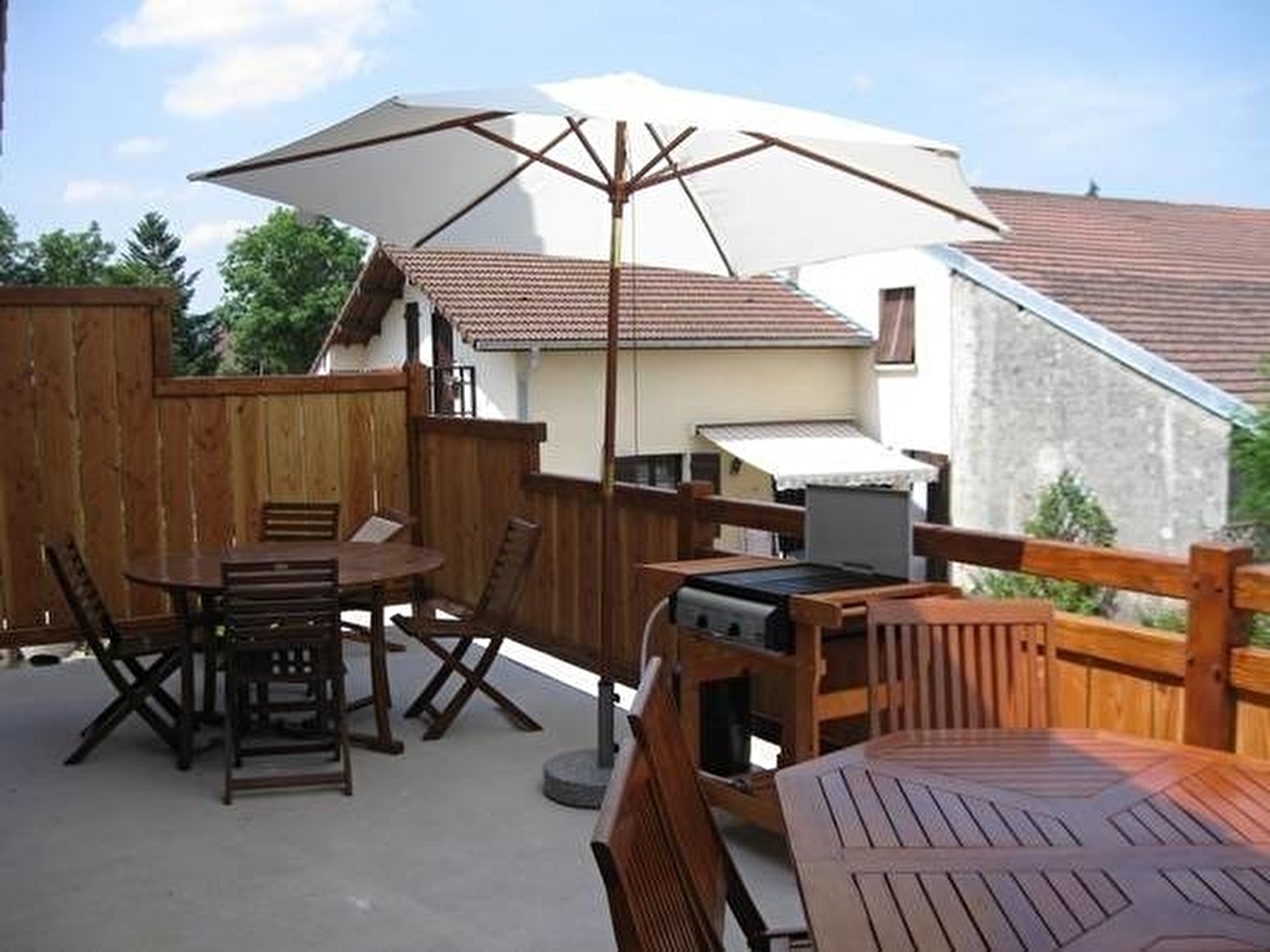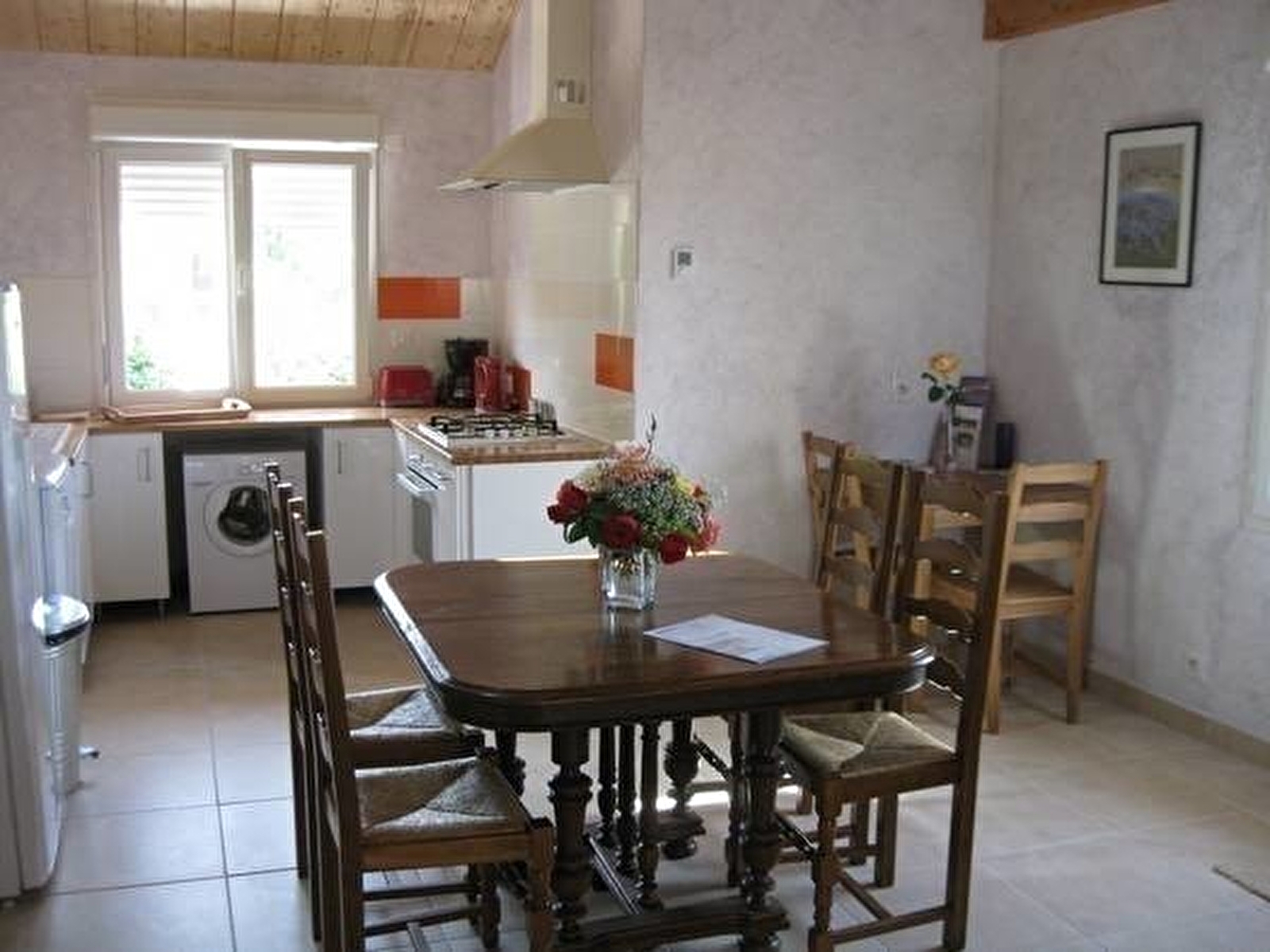Idéalement situé à 600 m du Lac de Chalain, ce gîte se trouve au 1er étage d'une maison de village. Il est composé d'une cuisine ouverte sur le séjour avec espace repas (cheminée-bois fournis), salle d'eau avec douche à l'italienne, Wc indépendant, chambre 1 avec 1 lit 2 places. Au 2ème étage : mezzanine avec coin salon (possibilité couchage supplémentaire), chambre 2 avec 2 lits 1 place. Le gite dispose d'une terrasse en commun avec un autre gîte (G1973), salon de jardin et barbecue privatif. Chauffage éléctrique au sol.