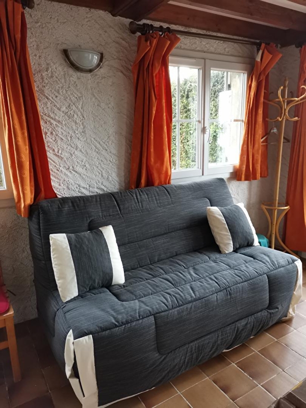 Composition : Maison individuelle. Chauffage électrique + cheminée. Rdc : séjour-cuisine-salon (canapé convertible BZ 2 p. 160x200cm en appoint), salle d'eau (douche), Wc indépendant. 1er étage : 2 chambres (lit 2 p. 140x190cm / 2 lits 1 p. 90x190cm). Buanderie en sous-sol (accès par escalier extérieur desservant également la grande terrasse). Double terrasse + local vélos + parking privés. Pêche non autorisée du 1er octobre au 31 décembre (vidange de l'étang). Commodités 9 km. Gare 22 km.