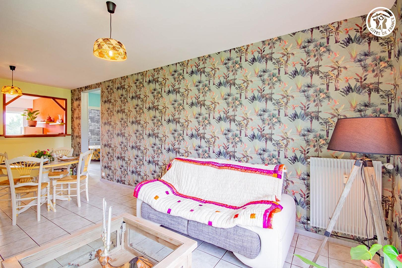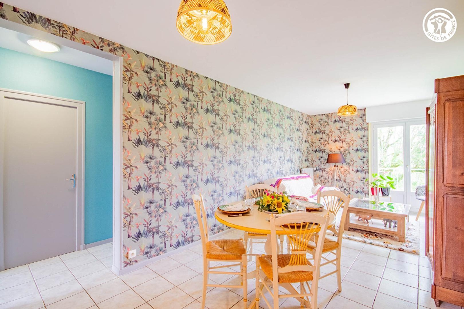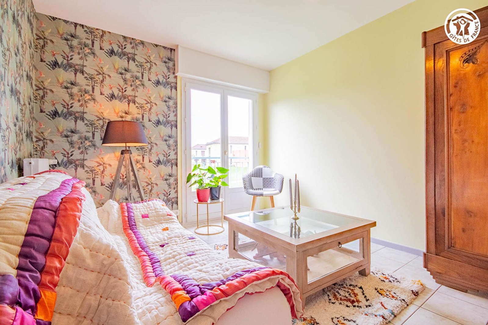 Passionnée de nature & de champignons, Sylvie vous accueille au sein d'une atypique résidence "seventies", d'inspiration moderniste "brutaliste", sise au calme sur agréable petit "parc" engazonné parfaitement entretenu, en bordure de ruelle & d'une apaisante prairie boisée, au sein d'un paisible quartier résidentiel jouxtant le centre du bourg (& son très réputé "Écomusée de la Bresse" niché dans un prestigieux château du XVIIème siècle), à deux pas de la bucolique campagne alentour. Typique & pétri de charme, blotti sur les premiers contreforts montagneux du proche massif du Jura, au creux de la verdoyante vallée bocagère du Doubs parsemée d'étangs & rivières, Pierre-de-Bresse profite d'un magnifique écrin de douce campagne préservée (à parcourir lors de relaxantes balades à pied ou VTT), alliant agriculture & pleine nature (dont divers espaces protégés en ZNIEFF pour leurs richesses faunistiques & floristiques), et dispose de nombreuses commodités comme d'un très bon niveau d'équipements sportifs & de loisirs (plan d'eau de pêche avec base de loisirs écologique protégé en "Zone Natura 2000" / "parcours sportif" & "Parkrun" / "Agorespace" etc…). Appartement traversant de bon confort. Spacieux & lumineux. Grande pièce de vie. Équipement complet de qualité. Chaleureux cachet « campagnard contemporain », mixant traditions & modernité, twistée par une "déco jungle" soignée, à l'esprit "pop" coloré. Ambiance douillette & cocooning. Belle vue dégagée sur la campagne environnante. En bonus, vous disposez d'un espace réservé & aménagé côté "parc" (avec salon jardin, barbecue & transats) lové au pied d'un chêne.