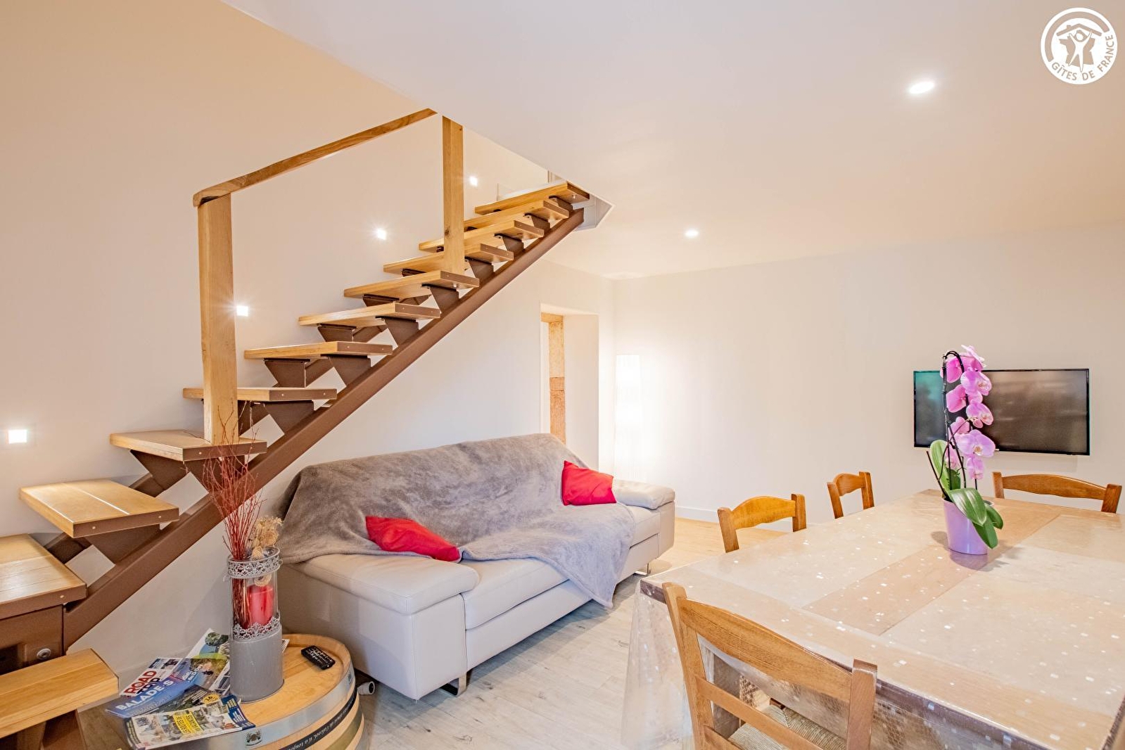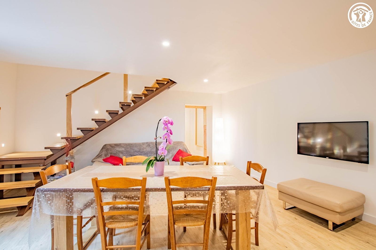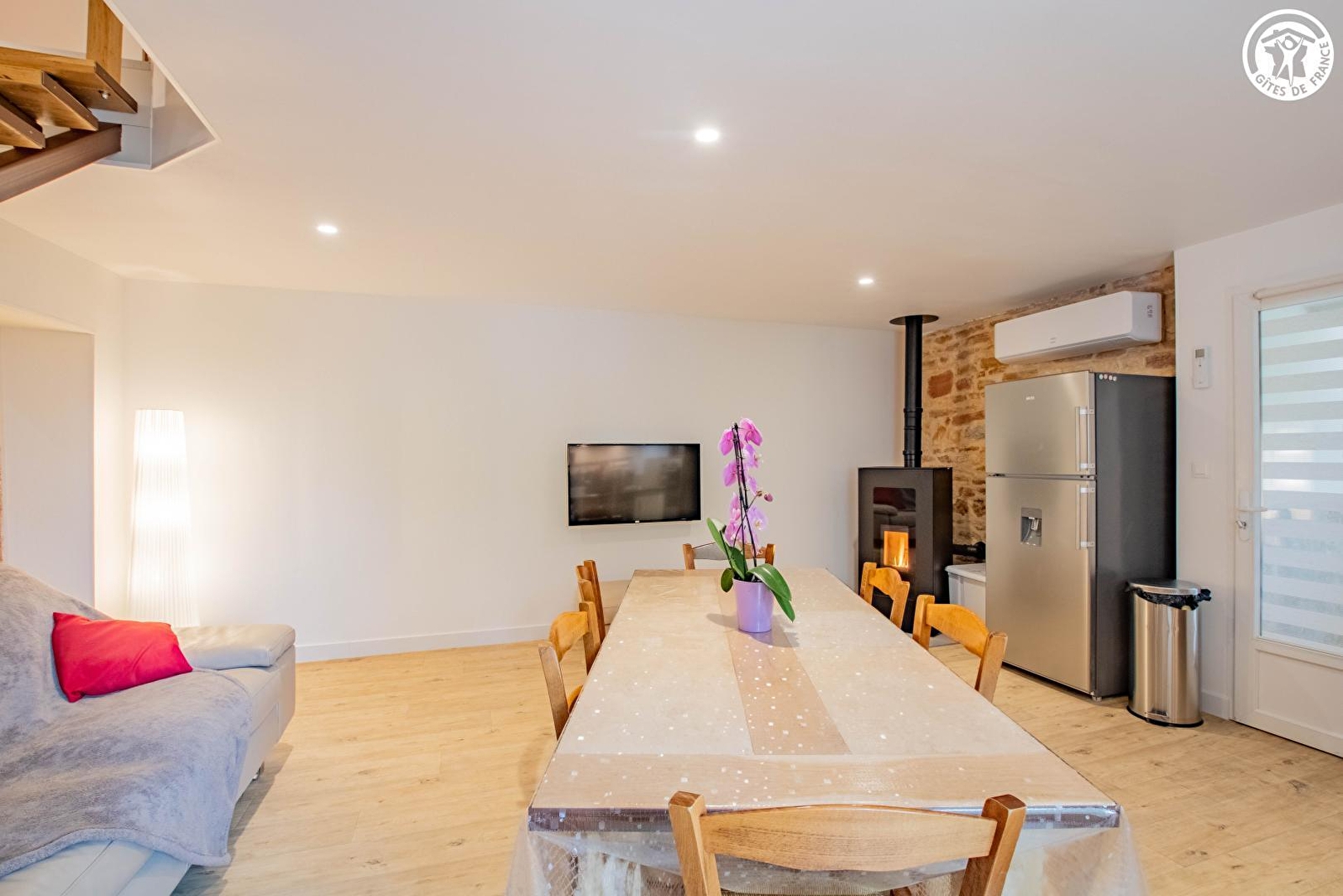 Composition : Maison comprenant un logement permanent (famille des propriétaires) et un gîte (indépendance totale). Wifi (fibre). Chauffage Pompe à chaleur + poêle à granulés bois. Climatisation. Gîte au 1er étage en duplex (accès par escalier extérieur abrité). 1er étage : séjour-cuisine-salon, 1 chambre (lit 2 p. 160x200cm), Wc indépendant. 2ème étage : 2 chambres dont 1 avec TV (lit 2 p. 140x190cm / lit 2 p. 140x190cm + lit 1 p. 90x190cm), salle d'eau (douche/Wc). Petit jardinet privé. Parking public gratuit aisé sur place (ruelle au pied du gîte). Commerces dont supermarchés à 2.5 km. Golf 9 km.