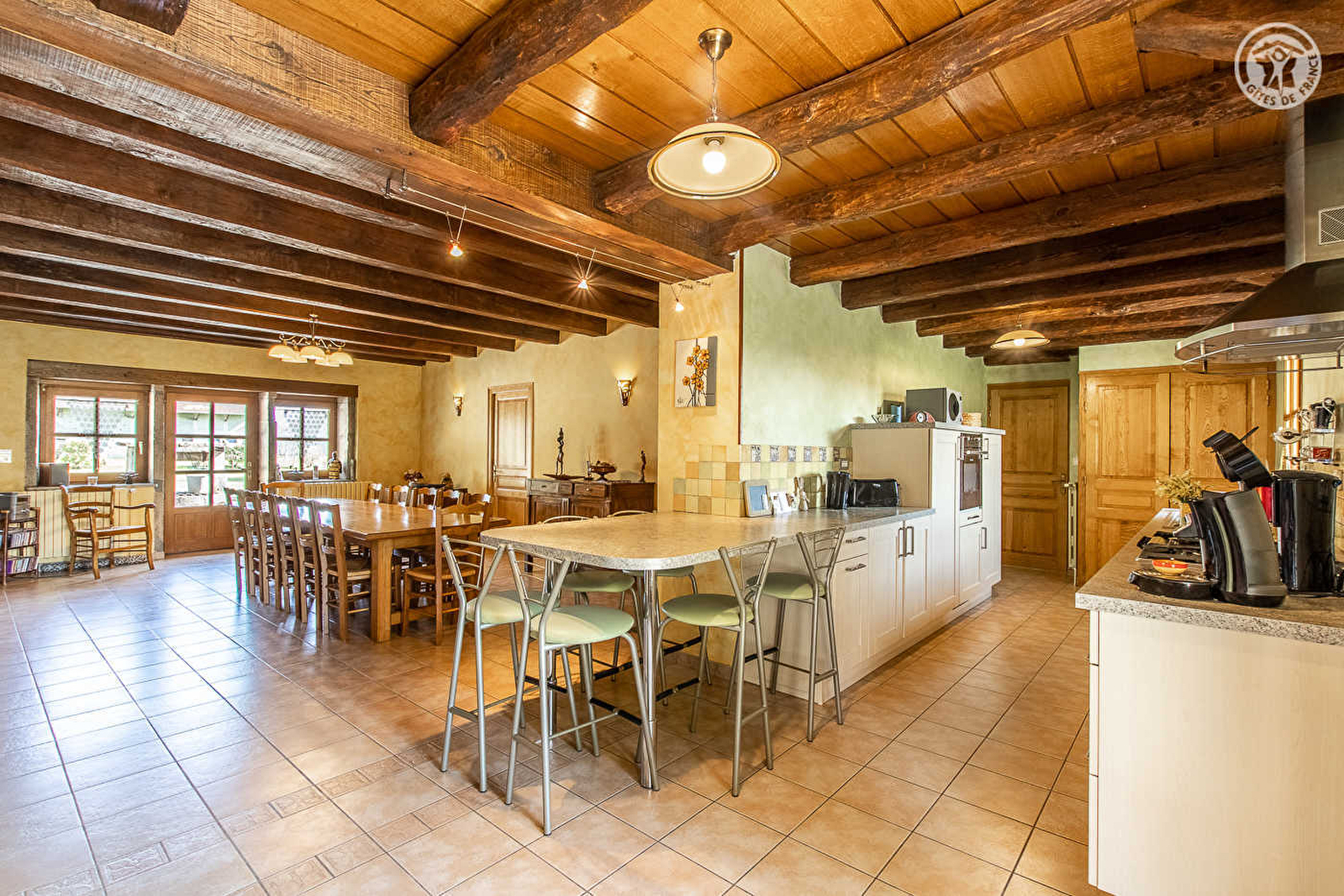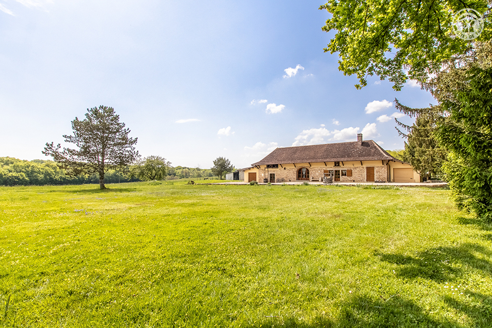 Ravissante ferme traditionnelle de caractère du XIXe restaurée avec soins, nichée en pleine campagne en lisière de prairies, au creux d'une vaste clairière ouverte, à l'orée d'une grande forêt. Au sein d'un paisible hameau résidentiel sis à 4 km du centre de Cuiseaux, la « cité des peintres », lieu de naissance d'Édouard Vuillard & Pierre Puvis de Chavannes artistes mondialement connus, blottie sur les contreforts boisés du massif Jura, au creux d'un sublime cadre paysagé préservé de montagne douce. Pétrie de charme, dotée de nombreuses commodités et d'infrastructures sportives & culturelles de qualité, ce pittoresque village médiéval commerçant chargé d'histoire (ancienne ville frontière) dispose d'un riche patrimoine (porte du verger, remparts, château des princes d'Orange, église, chapelle, maisons bourgeoise et hôtels particuliers du XVIème siècle, anciennes maisons vigneronnes…). Gîte de très bon confort à l'architecture intérieure atypique. Ultra spacieux. Vaste pièce de vie. Chaleureux cachet campagnard contemporain mixant traditions & modernité dans l'esprit d'une douce « maison de famille » aux riches traces du passé (murs en pierres, briques, manteau de cheminée, poutres, linteaux en pierres… d'origine). Équipement très complet de qualité. Agréable propriété naturelle de 3 ha comprenant un vaste jardin engazonné (parfaite aire de jeux pour les enfants) et une grande cour (terrain de pétanque naturel) accueillant un large espace terrasse exposé.