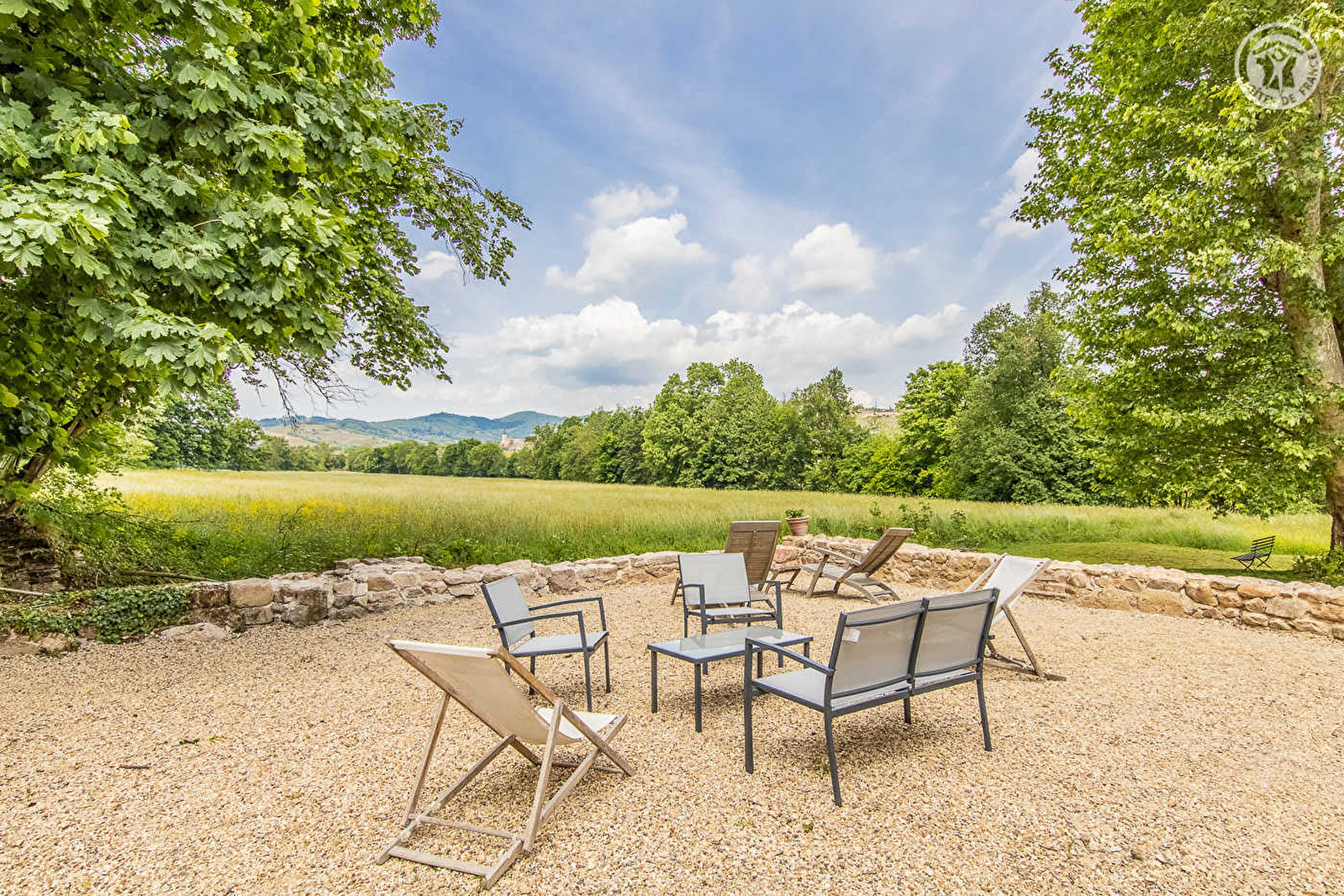 Delphine & Emmanuel vous accueillent au sein d'une charmante authentique dépendance agricole du XVIIIe (1769), soigneusement restaurée & chargée d'histoire (liée jadis à une exploitation viticole) voisinant l'élégante demeure de maître du XIXe qu'ils occupent. Calme absolu en pleine campagne viticole, à deux pas des vignobles, au creux d'une douce clairière lovée en lisière de bois & prairies (accueillant parfois vaches ou chevaux) sur une propriété privée de 5 ha, riche d'une forêt avec sentier & petite rivière poissonneuse (pêche possible !), littéral écrin préservé de nature & verdure, totalement relaxant & reposant. Spacieux gîte de très bon confort. Grande pièce de vie. Chaleureux cachet campagnard aux accents contemporains, conjuguant traditions & modernité, dans un savoureux « mix & match ». Beaucoup de charme & caractère. Ambiance douillette, cocooning & cosy. Large double terrasse en gravier, exposées & ombragées, ouvertes sur les prés & pâtures sans vis-à-vis aucun, dont une panoramique dotée d'un salon de détente « outdoor ». Apaisante vue dégagée sur la campagne environnante, telle une « carte postale ». Agréable jardin naturel privatif de 3000m², parfaite aire de jeux pour les enfants, complété par un espace pétanque (cour en gravier). Accès à la piscine de la propriété (4x11m) lové à l'orée des bois dans un bucolique décor verdoyant (partagé avec les propriétaires).
