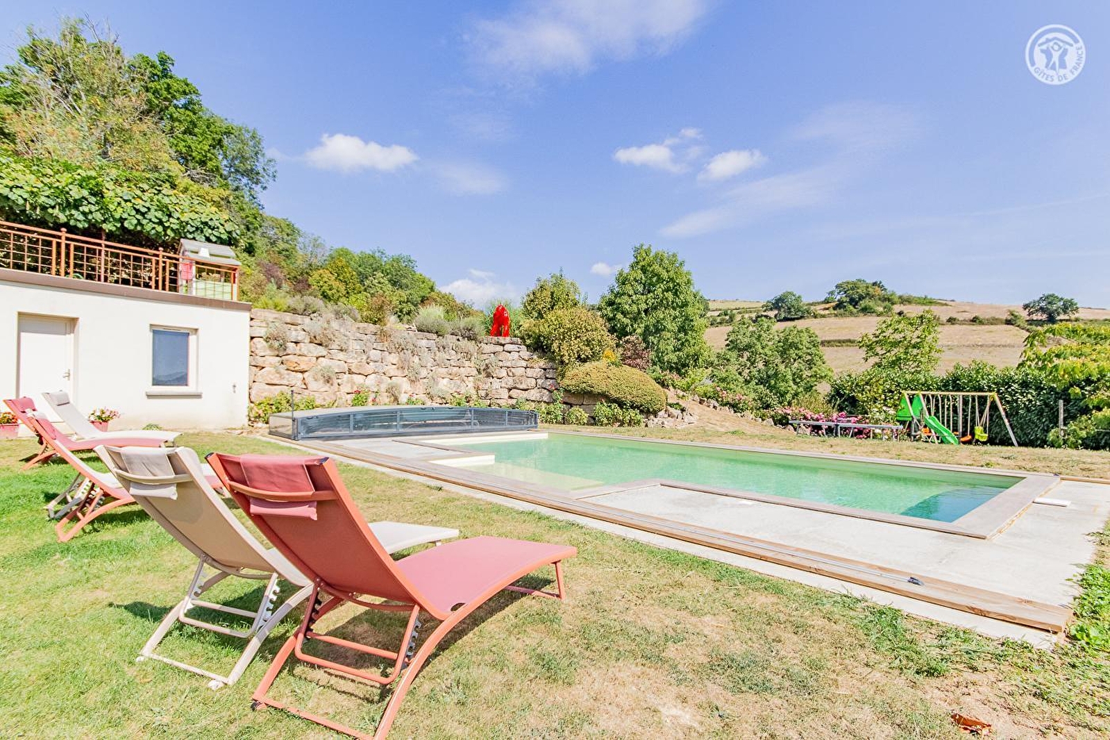 Cécile & Jérémy vous ouvrent les portes d'une authentique ferme de pays de 1850 chargée d'histoire, soigneusement restaurée & revisitée en douce villégiature, nichée en "balcon" & belvédère panoramique à flanc de coteau sud-est bien exposé, sur les contreforts d'un vaste massif forestier (en partie protégé en "Zone Natura 2000" pour son riche écosystème). Calme & totale tranquillité en pleine campagne mâconnaise vallonnée, voisinant un paisible mini hameau viticole, blotti en pleine nature au creux d'un petit vallon boisé à deux pas des toutes premières vignes. Environnement d'exception, lové au coeur d'un sublime écrin champêtre, naturel & viticole préservé, conjuguant bucoliques coteaux de vignobles, prairies bocagères, rivières & collines , adossé au "Signal de la Mère Boitier" point culminant du Mâconnais (702m), à sillonner lors de ressourçantes balades à pied ou VTT. Cadre absolument enchanteur & 100% reposant. Superbe panorama & paysages. Gîte de très bon confort. Ultra spacieux. Élégant cachet contemporain. Ambiance zen & douce. Beaucoup de charme. Vaste terrasse agrémentée d'un spa extérieur (en accès payant), ouverte sur un jardin soigneusement végétalisé & très fleuri, disposant d'une belle piscine (10x4m avec plage immergée), d'une table de ping-pong, d'un trampoline et d'une balançoire avec toboggan.