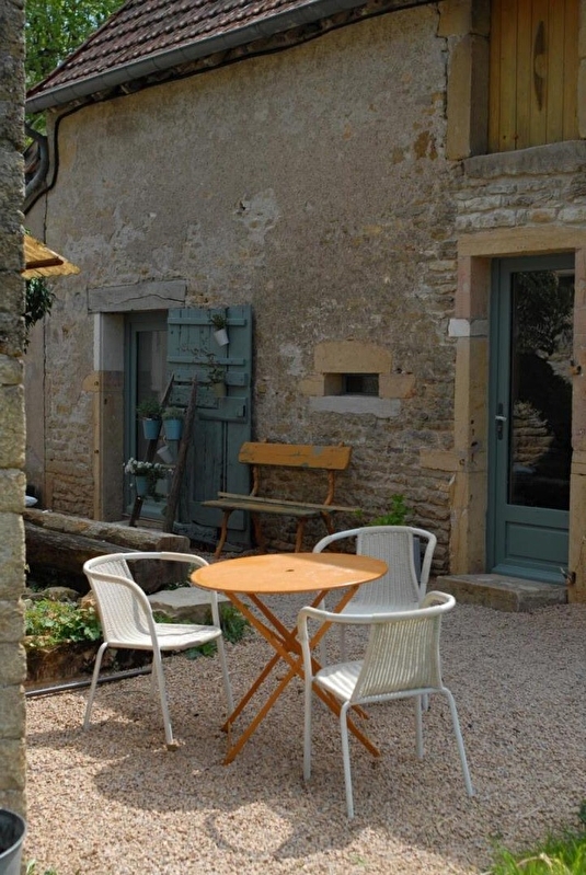 Propriétaire d'une brasserie artisanale située sur place (bière "la Paille" / visite et dégustation possible), Julien & sa compagne Céline vous accueillent au sein d'un confortable gîte blotti dans une authentique écurie traditionnelle de caractère du XIXème siècle soigneusement restaurée, sise sur un ancien domaine agricole chargée d'histoire. Calme absolu, niché en pleine campagne clunisoise, au cœur d'un paisible & charmant petit village typique (riche d'une ravissante chapelle romane du XIVème siècle) adossé en "balcon" à flanc de coteau exposé , au creux d'un bucolique vallon cerclé de collines boisées, magnifique écrin préservé de nature & verdure protégé en "Zone Natura 2000" pour ses riches écosystèmes Splendide cadre champêtre conjuguant bocages, vignobles, prairies, rivières & belles forêts sauvage. Site paysager littéralement enchanteur, ultra relaxant & reposant. Spacieux gîte de bon confort. Chaleureux cachet campagnard contemporain aménagé dans un esprit "maison de famille" allié à une rénovation patrimoniale soignée (préservation des murs en pierres & linteaux de fenêtre en bois d'origine). Ambiance zen & cosy. Belles chambres "cathédrales" cocooning lovées sous les toits. Large terrasse en gravier, ombragée & exposée, jouxtant un agréable jardinet privatif ouvert sur une grande prairie (en partie pentus), parfait terrain de jeu naturel pour les enfants. Belle vue dégagée sur le village & la campagne environnante. Apaisant panorama & paysage.