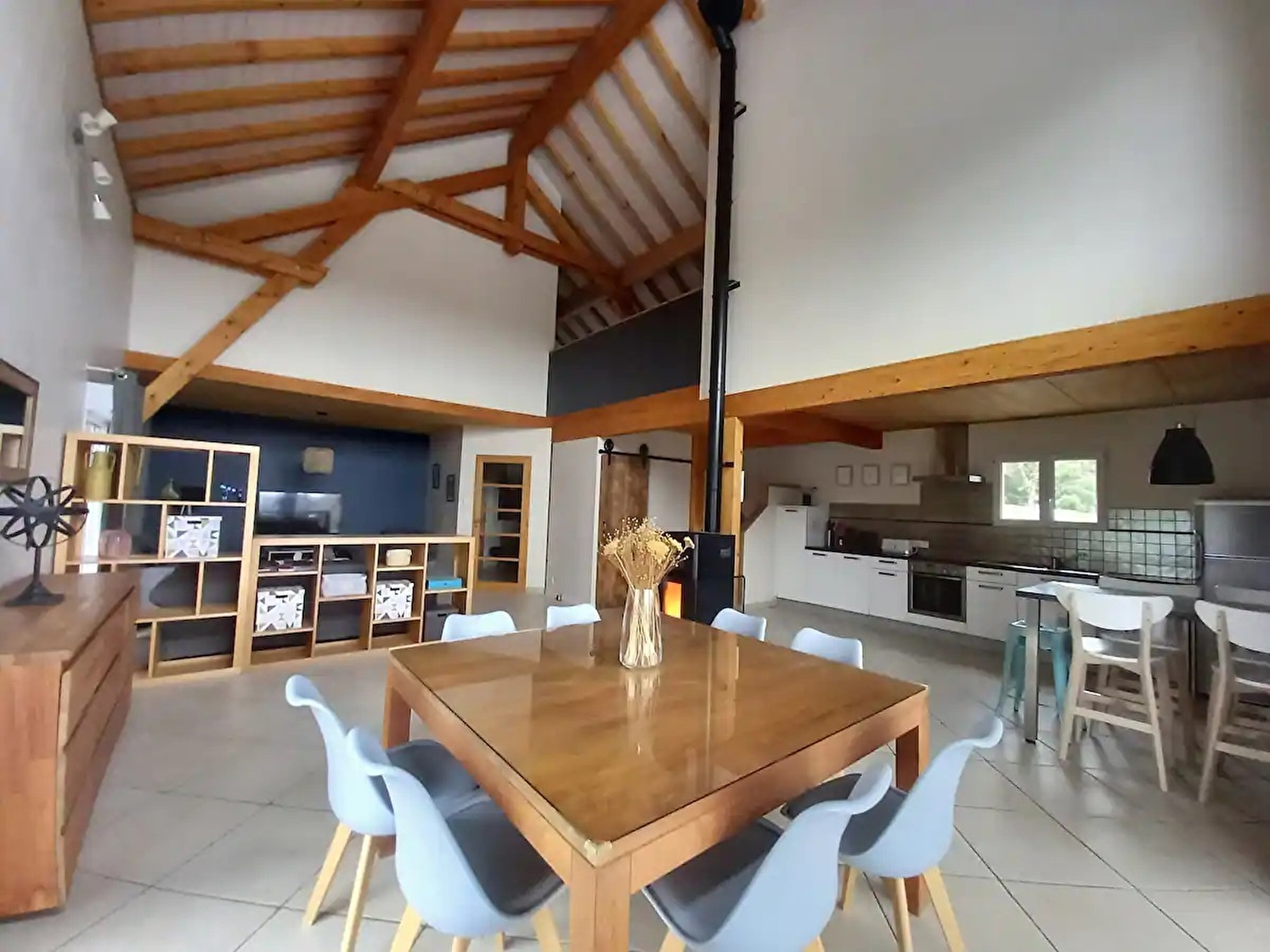 Idéalement situé au cœur du parc naturel du Haut Jura, ce chalet se compose au rez-de-chaussée d'une vaste pièce de vie avec cuisine toute équipée ouverte sur une salle à manger avec poêle à granulés (fournis gratuitement) et un salon avec TV, d'une chambre avec avec 1 lit double (160*200), d'une salle d'eau avec douche à l'italienne et d'un WC. A l'étage, 1 chambre avec 1 lit double (160*200), 1 chambre avec 1 lit double (160*200) et 2 lits superposés, une chambre avec 2 lits superposés, une salle de bain avec baignoire et WC. Le ménage est inclus dans le tarif. Côté extérieur, vous pourrez profiter d'un accès direct depuis la pièce de vie à une terrasse de 30 m² abritée par une pergola , équipée d'un salon de jardin et d'une plancha. A proximité de nombreuses pistes de ski nordique, raquettes, luge , Randonnées, fermes équestres, VTT. Lacs : activités nautiques. Stations de ski alpin et nordique : Station des Rousses à 20 minutes/ Lamoura 15 minutes. Fort des rousses/Massif de la Dôle/musés de la lunette, pipe et diamant, ligne des hirondelles. Pic de l'Aigle, cascades hérisson, Genève à 1h Le gîte est situé dans un quartier calme à proximité de nombreux commerces ( épicerie, boulangerie, fruitière à comté, pharmacie, tabac presse, boucherie). Possibilité de court-séjour du 06 au 10/08/23 (3 nuits minimum). Draps et produits de 1ère nécessité non fournis. Note : un forfait ménage obligatoire s’appliquera automatiquement au moment de la réservation.