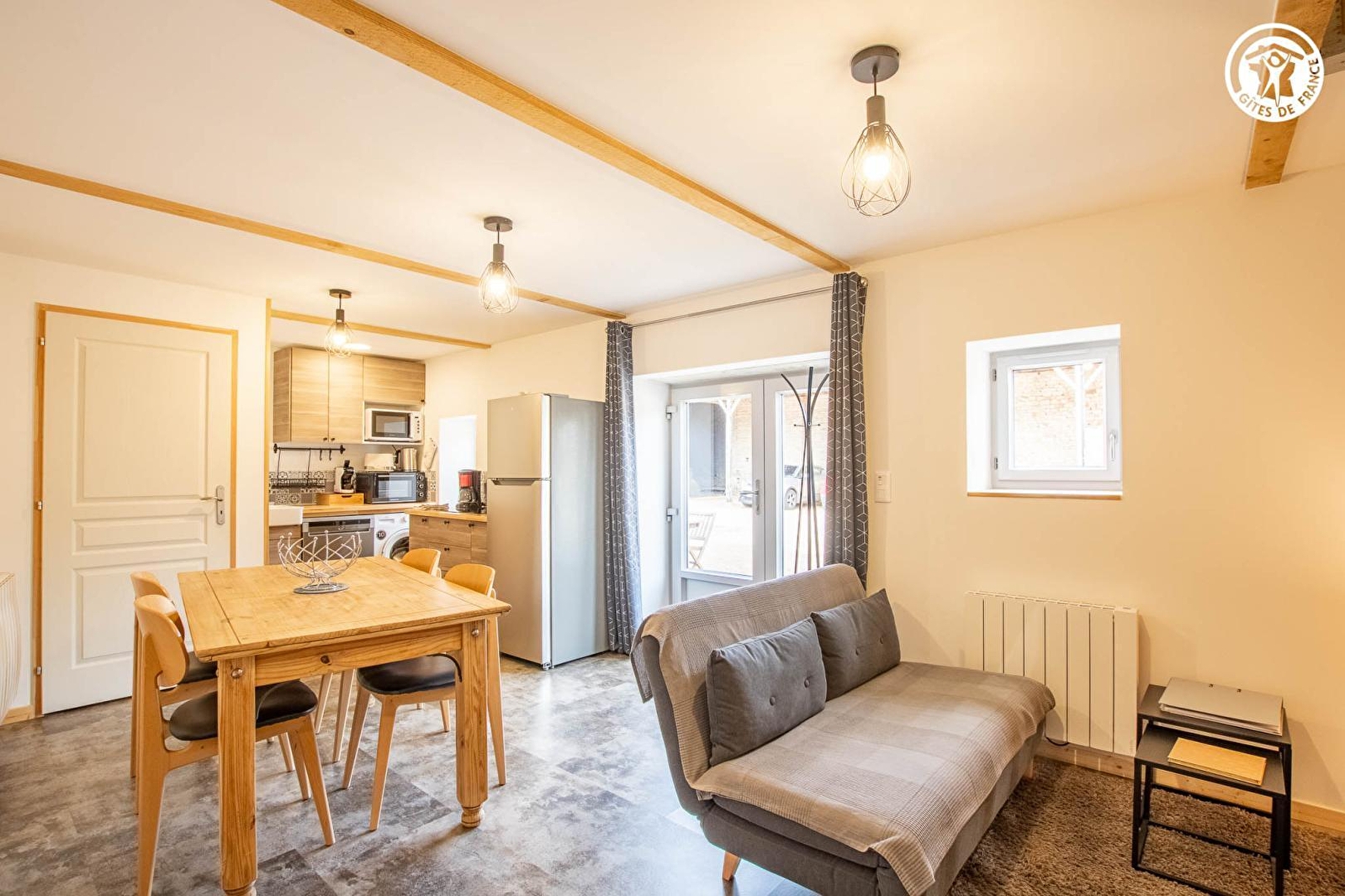 Audrey & Eric vous ouvrent les portes d'élégantes authentiques écuries datant du XIXème siècle intégralement restaurées avec soin (jadis liées à la ferme de pays qui occupait les lieux, dont demeurent les imposants anciens préaux "séchoir"), nichées au creux d'une intimiste vaste cour intérieure sise en bordure de ruelle au sein d'un paisible & pittoresque petit hameau rural résidentiel abritant une belle chapelle prieurale romane du XIIème siècle (aujourd'hui revisitée en espace d'exposition d'œuvres d'art). A deux pas des rives de la Saône, en pleine campagne du haut Mâconnais, apaisant écrin préservé de montagne douce aux bucoliques paysage vallonnés conjuguant coteaux de vignobles (premières vignes à seulement 1.5 km), champs, prairies & belles forêts, blotti au pied de la montagne de Burgy (massif sauvage offrant un exceptionnel belvédère panoramique jusqu'au Mont-Blanc par temps clair !). Village viticole doté de l'appellation "Viré Clessé", Montbellet dispose d'un riche patrimoine (église et chapelle romane des XII & XIème siècle, plusieurs châteaux notamment médiévaux, très nombreux moulins, lavoirs, vestiges d'une commanderie du XIIIe…). Gîte de très bon confort. Chaleureux cachet campagnard aux accents contemporains. Cosy & douillet. Ambiance zen & douce. Agréable terrasse privative exposée (ombragée l'été) ouverte sur la cour, littéral "terrain de pétanque naturel". En bonus : en leur compagnie, vous pouvez rendre visite au poulailler des propriétaires comme à leurs 2 boucs nains, parqués à l'arrière de la propriété.