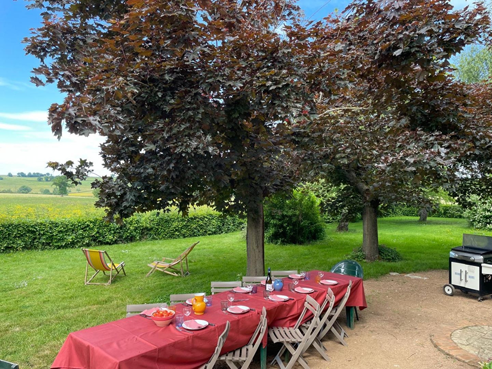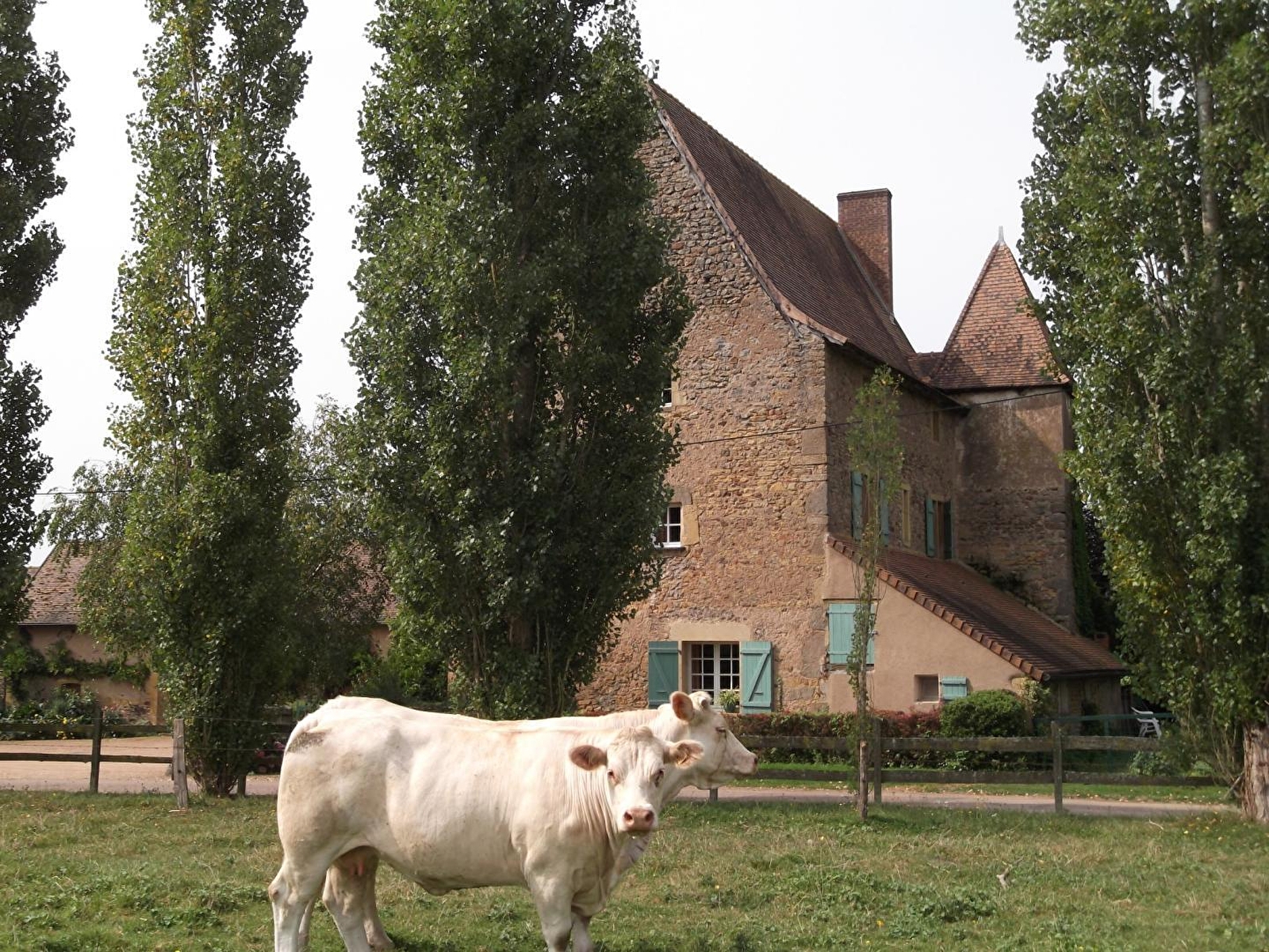 Propriétaire des lieux depuis un siècle, la famille Mathieu vous accueille au sein d'une très rare authentique "maison forte" de caractère du XVIe, intégralement restaurée, exceptionnel édifice de style renaissance parfaitement sauvegardé pétri de grande histoire, ancien "relais de chasse" du seigneur de Busseuil (rassemblant jadis les seigneurs du Brionnais lors de grandes chasses), adossé "en étoile" à plusieurs dépendances autour d'une grande cour, parfait "terrain de pétanque naturel". Totale tranquillité au sein d'un petit hameau rural (résidentiel & agricole) blotti en pleine campagne préservée au creux d'un sublime plateau de bocage vallonné (avec les paisible vaches charolaises comme proches voisines) traversé par une bucolique rivière poissonneuse, à proximité d'une belle forêt sauvage. Véritable havre de quiétude 100% relaxant, immergé dans un littéral "décor de carte postale". Gîte de bon confort. Ultra spacieux. Beaux volumes. Chaleureux cachet campagnard "bourgeois" un brin "vintage" mixé à l'insolite ambiance "châtelaine" totalement dépaysante des lieux (magistral manteau de cheminée & escalier à "vis" en pierres, voûtes, poutres, plafond à la française, linteaux en pierres gravé etc…). Large terrasse en gravier (naturellement ombragée) ouverte sur un agréable jardin engazonné & arboré (balançoire & table ping-pong). Superbe vue dégagée sur la campagne environnante.