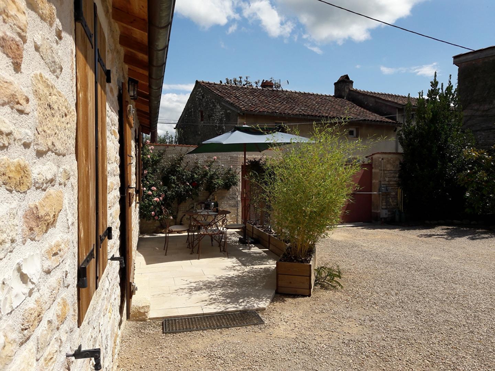 Composition : Gîte mitoyen à l’habitation des propriétaires (totale indépendance). Chauffage électrique + poêle à bois. Wifi (Fibre). Séjour-cuisine-salon, chambre (lit 2 p. 140x200cm), salle d'eau (douche/Wc). Cour + terrasse + jardin + local vélos + parking privés. Piscine (9x5m + douche) en commun avec les propriétaires. Petits commerces (dont supérette) à 1.5 km. Supermarchés à 5 km.