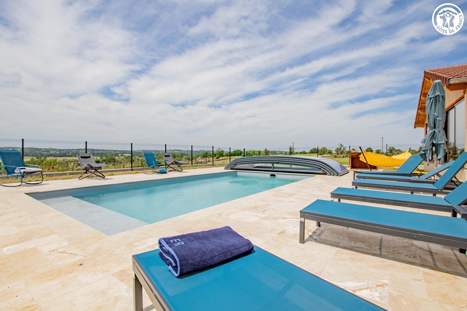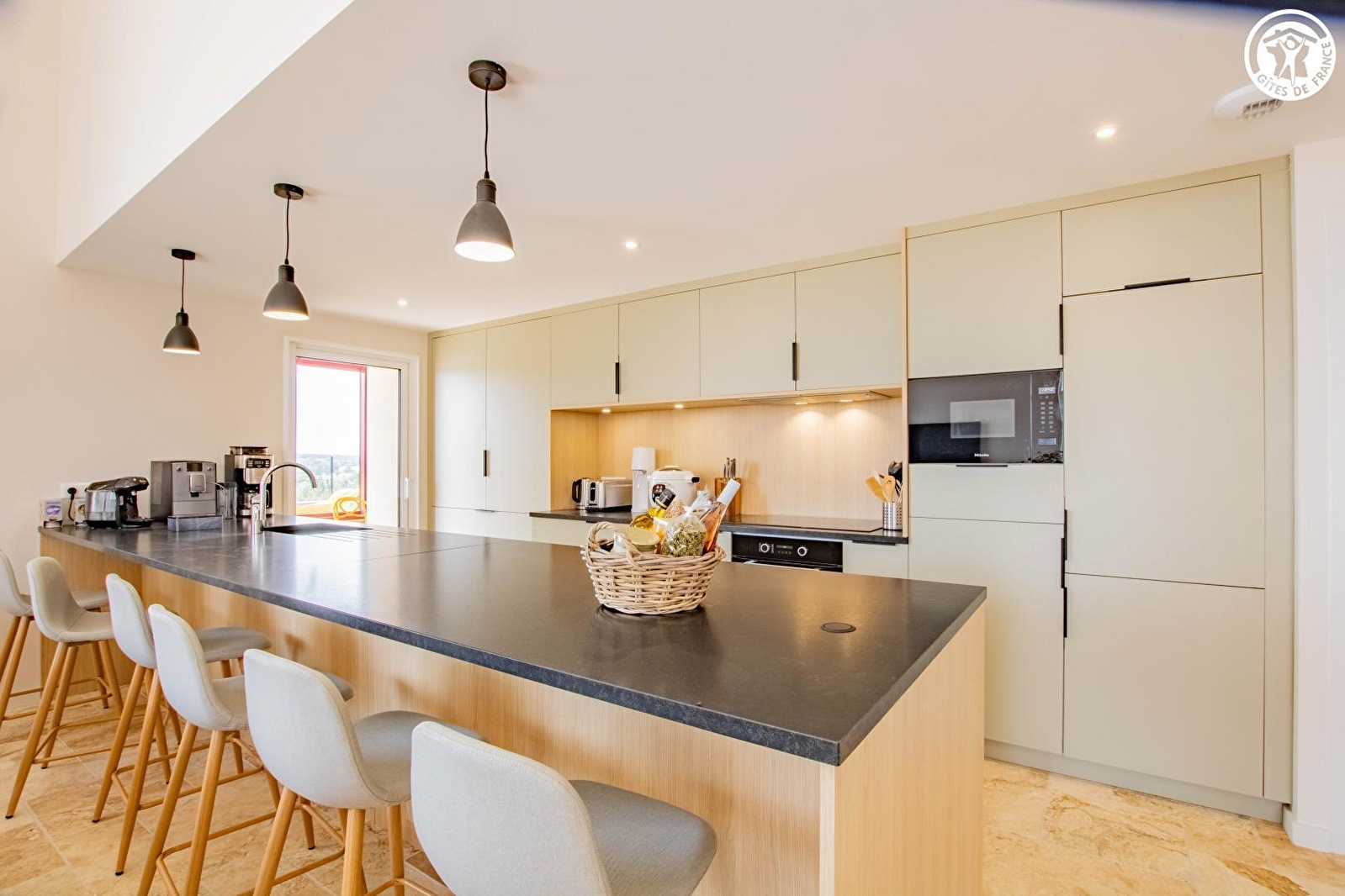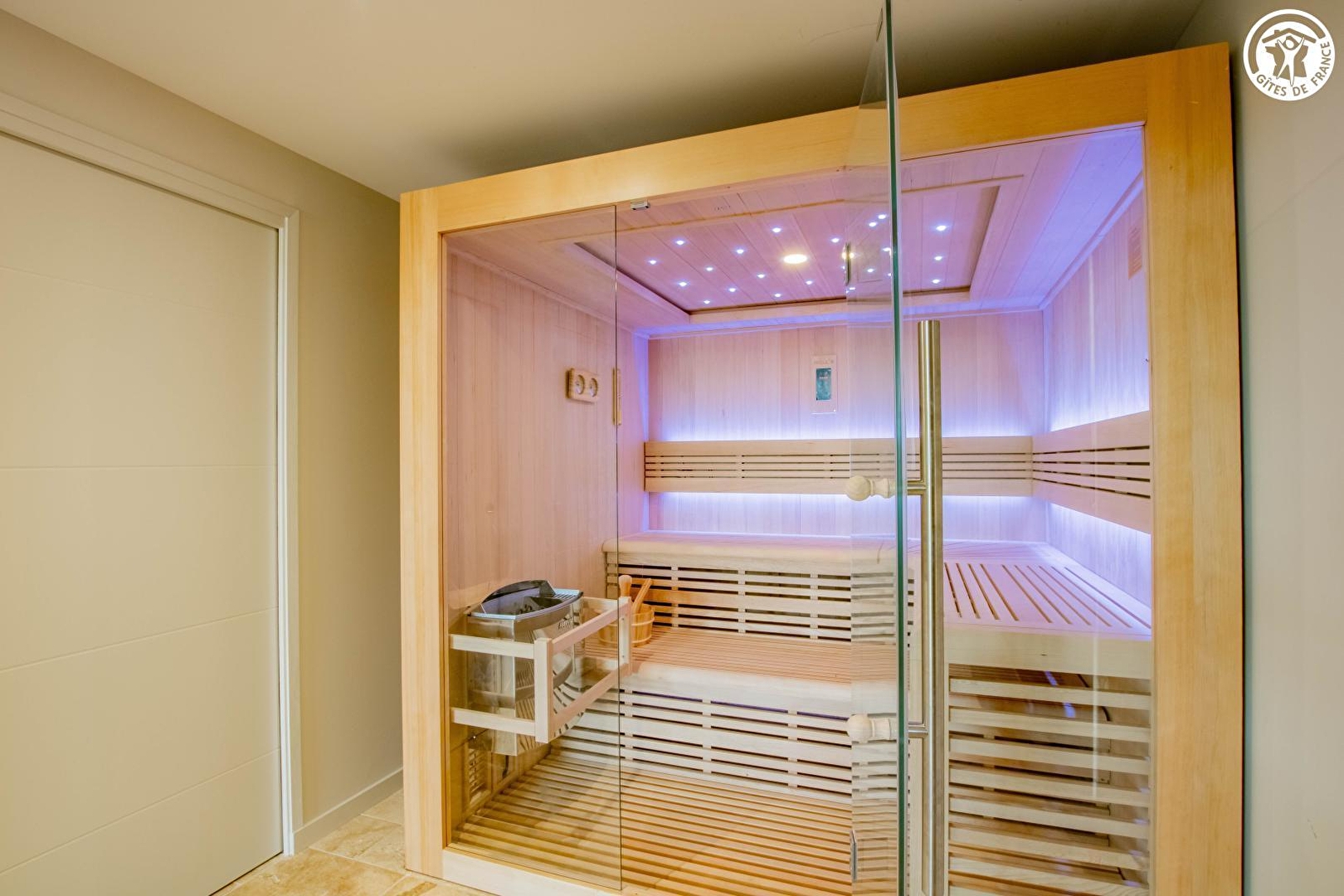 Composition : Maison individuelle. Wifi (fibre). Chauffage PAC. Climatisation. Rdc : séjour-cuisine-salon, 3 chambres (lit 2 p. 160x200cm / 2 lits 1 p. 90x200cm / 3 lits 1 p. 90x200cm), salle d'eau (douche), salle d'eau PMR (douche/Wc), Wc indépendant, espace sauna (6 p.). 1er étage : 3 chambres (lit 2 p. 160x200cm / 2 lits 1 p. 90x200cm / 3 lits 1 p. 90x200cm), salon TV en mezzanine, sdb (baignoire + douche), Wc indépendant. Terrain clos (3000m²) + piscine (8x4) + terrasses (une abritée en véranda) + terrain pétanque + spa (5 p.) + sauna (6 p.) + balançoire + local vélos + parking privés. Commodités 8 km.