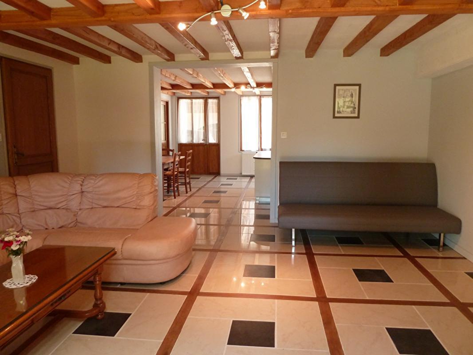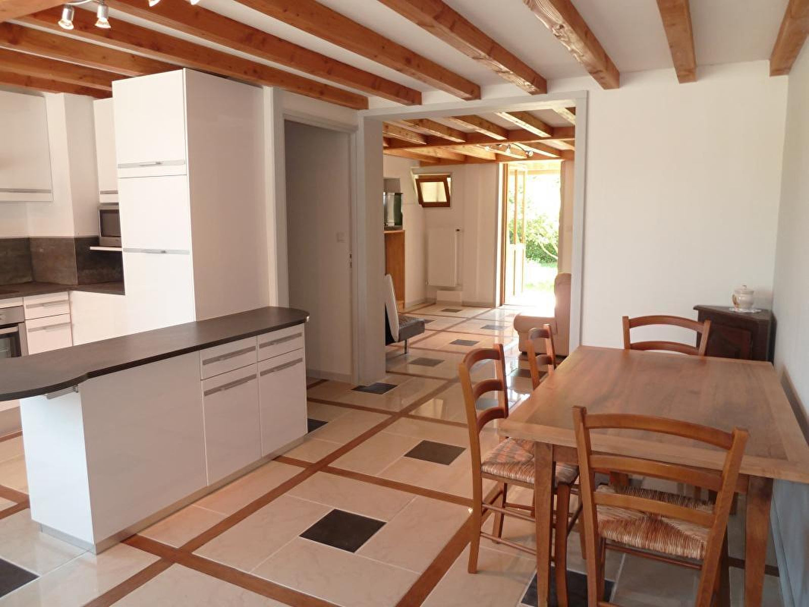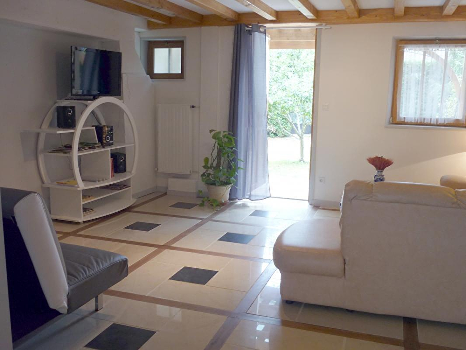Composition : Gîte de plain-pied dans la maison des propriétaires (total indépendance). Wifi. Chauffage central fioul. Rdc : séjour-cuisine-salon (canapé convertible 1 p. 130x190cm en appoint), 2 chambres (lit 2 p. 160x200cm / 2 lits 1 p. 90x200cm), salle d'eau (douche à l'italienne), WC indépendant. Jardin clos (150m²) + terrasse + abri couvert voiture (1 place) + parking privés. Local vélos. Commerces & services 1 km. Supermarchés 12 km.