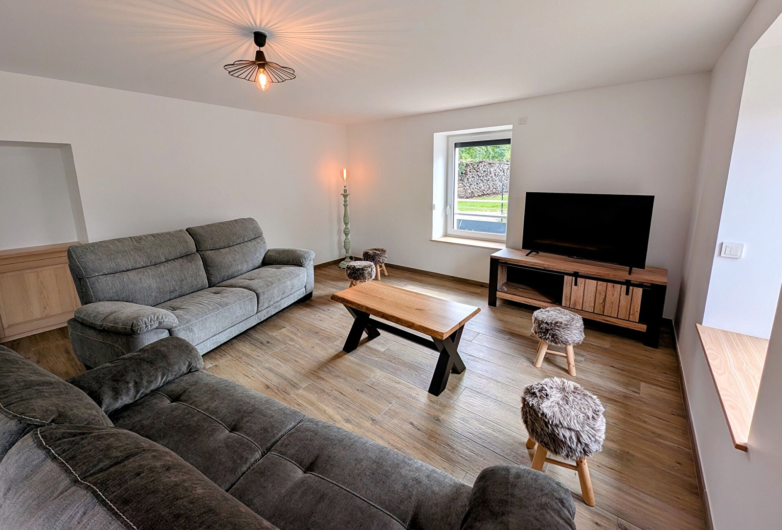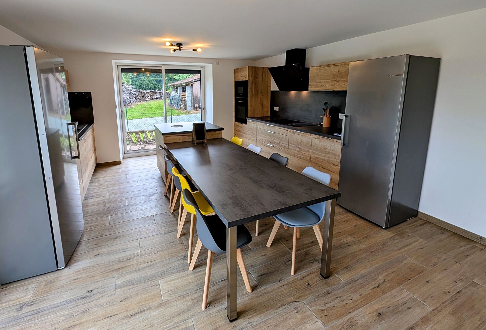 Ancienne ferme rénovée de 280 m², le Gîte Les Marguerites offre confort et convivialité pour accueillir jusqu’à 14 personnes. Pensé pour les séjours en famille ou entre amis, il dispose d’une vaste salle à manger avec une grande table, d’un salon chaleureux équipé de canapés et d’une cuisine entièrement aménagée. Le rez-de-chaussée propose également une chambre de quatre lits simples, une buanderie et une salle d’eau avec douche italienne. À l’étage, trois chambres avec lit double et une chambre avec quatre lits simples permettent une répartition harmonieuse des couchages. Trois salles d’eau, dont une avec baignoire, ainsi que plusieurs toilettes complètent l’ensemble. Une mezzanine aménagée en bibliothèque apporte un espace de détente supplémentaire. À l’extérieur, une terrasse donne sur un grand espace vert invitant à la convivialité et aux jeux en plein air. Proposé en formule tout inclus (ménage, linge et charges comprises), le gîte est ouvert toute l’année et garantit un séjour sans souci dans un cadre authentique et apaisant.