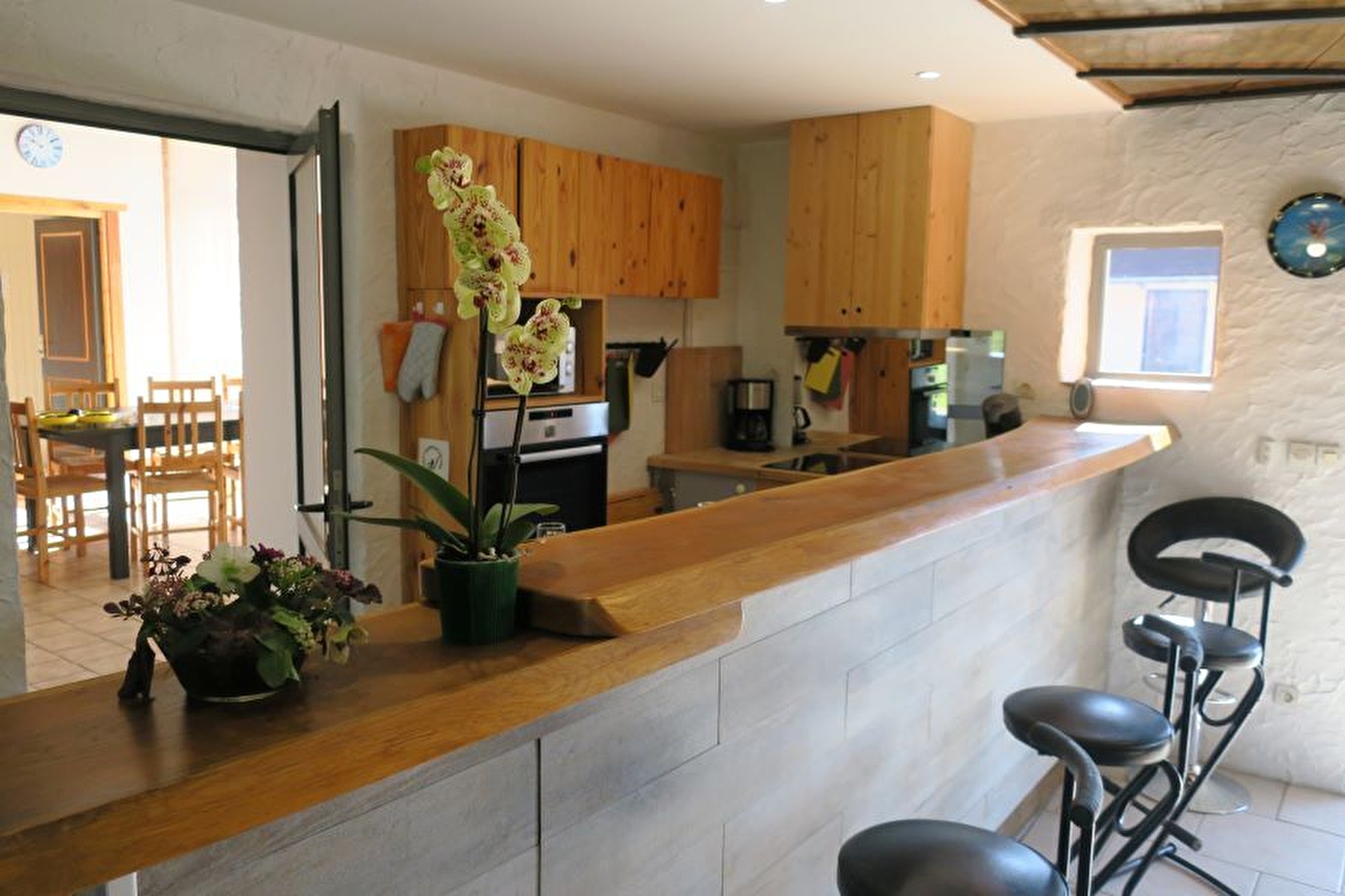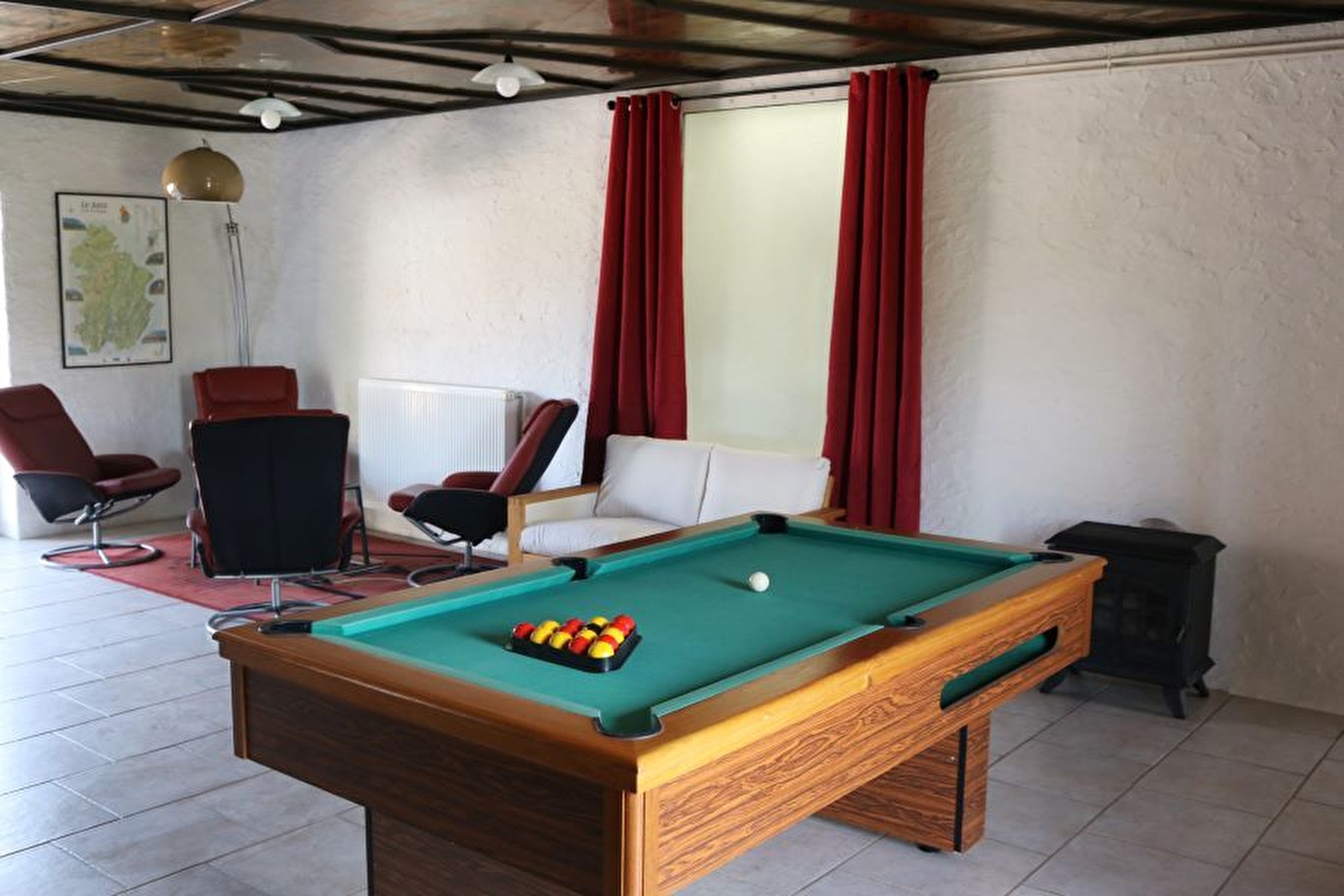 Envie de calme et de grands espaces? alors ce gîte est fait pour vous! Il se compose d'une vaste pièce avec cuisine toute équipée, d'un coin jeux avec billard et poêle à bois, d'un salon avec cheminée pour profiter de moments conviviaux autour d'une petite flambée, d'une salle à manger, d'une buanderie avec lave-linge et sèche-linge, d'une salle d'eau avec douche et WC et d'un second WC indépendant. A l'étage, mezzanine avec TV, appareils de fitness (rameur, vélo, stepper), 1 chambre avec lit en 140 et salle d'eau privative (douche et WC), une seconde chambre avec lit en 140 et salle de bain privative (baignoire et WC), une troisième chambre avec 2 lits simples, et un coin nuit avec 2 lits superposés et 2 lits simples. Côté extérieur : salon de jardin, barbecue/plancha et transats vous permettront de profiter de la quiétude des lieux. 5 vélos et un terrain de pétanque sont également mis à votre disposition. Cerise sur le gâteau : un accès gratuit et illimité avec prêt de matériel pour découvrir le swin golf (terrain situé juste à côté du gîte). Idéalement situé pour partir à la découverte de nombreux sites touristiques : villages pittoresques de Baume les Messieurs et Château-Chalon, Dole ville d'Art et d'Histoire, Beaune et ses célèbres Hospices, le Château de Pierre de Bresse, la base nautique et ludique de Desnes qui vous permettra de vous rafraichir durant l'été... Possibilité d'accueillir 1 ou 2 personnes supplémentaires sur demande auprès des propriétaires