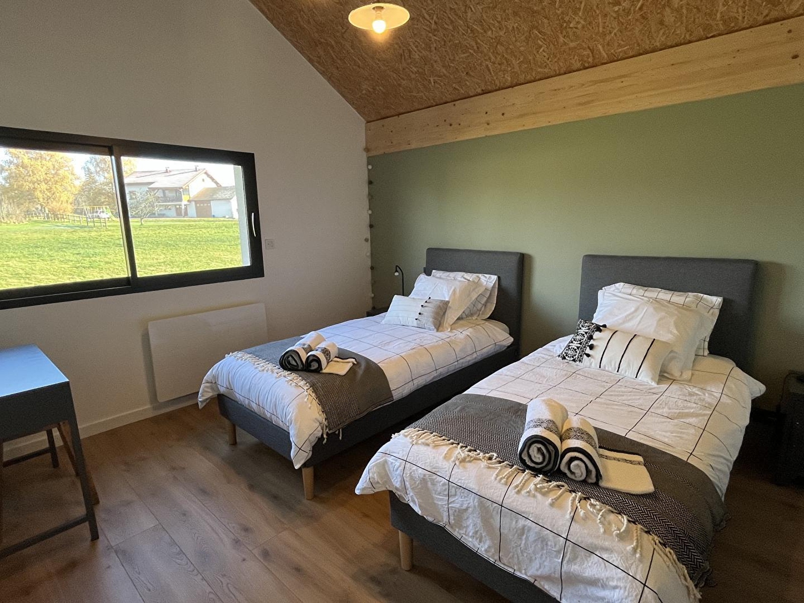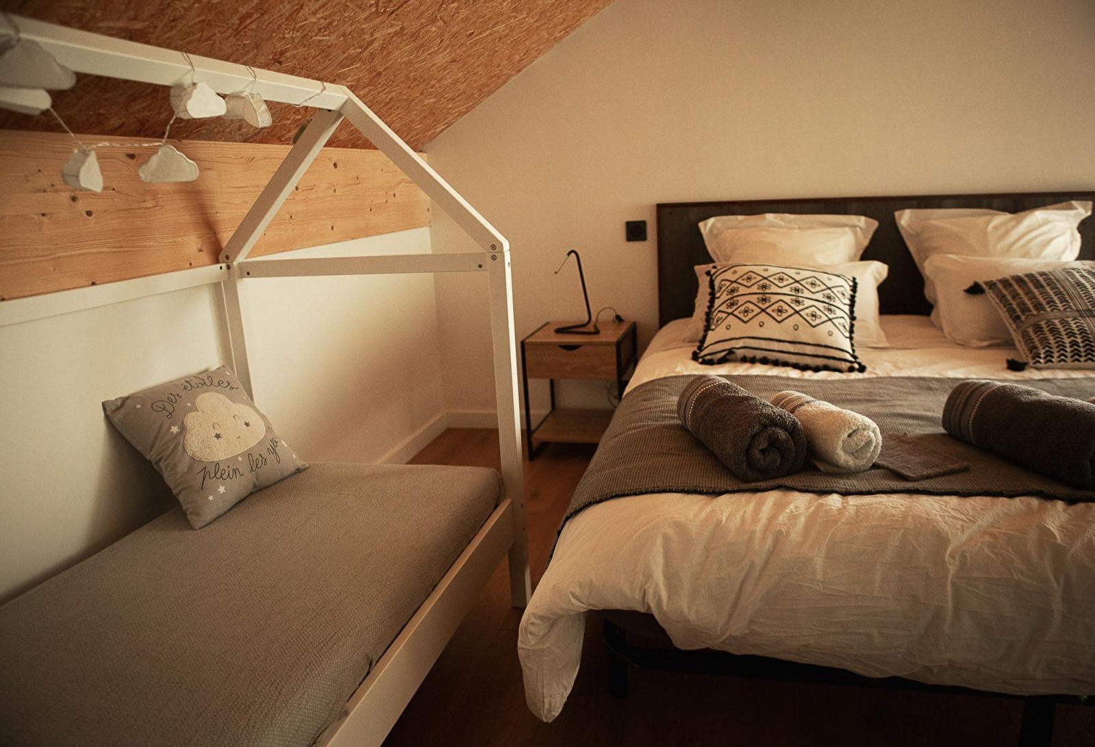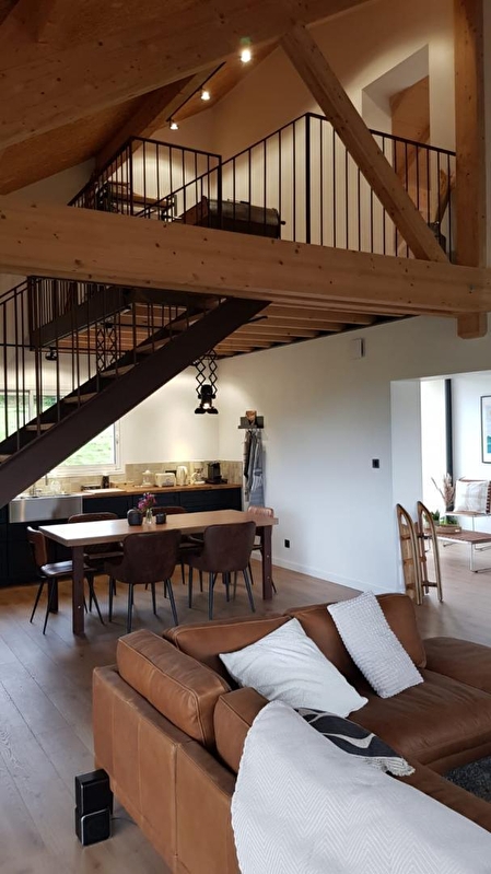 Laissez-vous charmer par cette maison contemporaine aménagée avec une décoration industrielle et chaleureuse. Au RDC, hall d'entrée avec coin détente et poêle à bois, vaste pièce de vie lumineuse avec cuisine toute équipée, coin salle à manger et salon avec canapé, TV, home cinéma, enceinte et lecteur DVD. Une chambre avec 1 lit double 160*200, une salle d'eau avec douche et WC, garage avec lave-linge et sèche-linge. A l'étage, vous pourrez vous défier autour du baby foot ou vous prélasser dans le filet suspendu. Vous trouverez également 2 chambres : 1 avec un lit double (160*200) et un lit cabane (pour enfant jusqu'à 6 ans) et une avec 2 lits simples (90*200) pouvant être jumelés, 1 salle d'eau avec douche et 1 WC indépendant. Le gîte est équipé d'une cafetière à dosette Nespresso. Pour votre plus grand confort, les lits seront faits à votre arrivée, les linges de toilette sont fournis et le ménage est inclus. L'équipement bébé se compose d'un lit bébé et d'une chaise haute. Côté extérieur, vous pourrez profiter de la terrasse aménagée avec salon de jardin, salon de détente et brasero Idéalement situé au cœur de la région des lacs, les cascades du Hérisson se trouvent à 5 min, tout comme le lac de Clairvaux-les-lacs. Vous profiterez de randonnées spectaculaires, notamment le Pic de l'Aigle et sa vue époustouflante sur les 4 lacs. Ou encore, le tour du lac de Bonlieu (à 5 min). Vous pourrez également découvrir les produits régionaux tels que le Comté ou le Morbier en vous rendant à la fromagerie située à 5 mns du chalet.