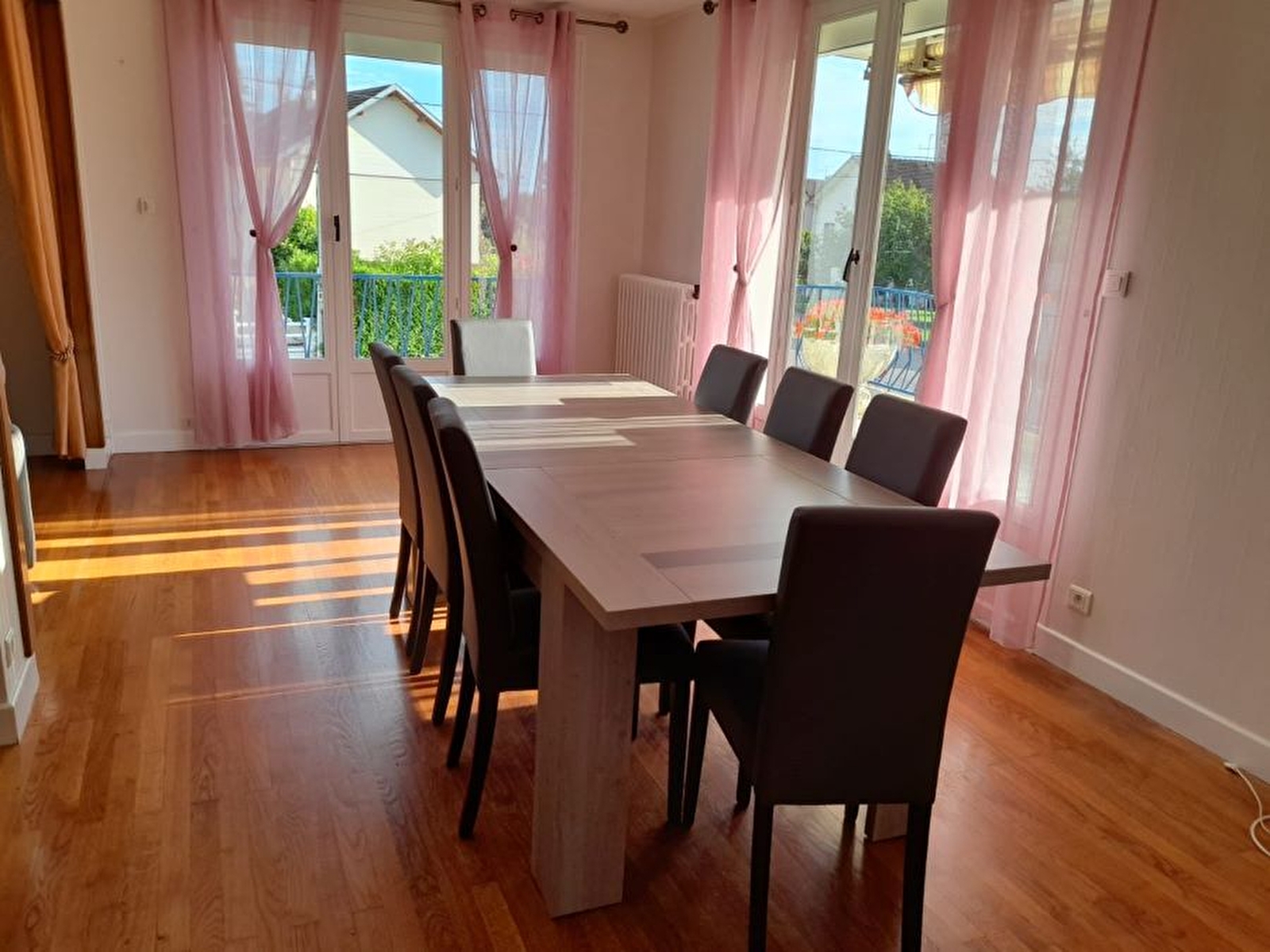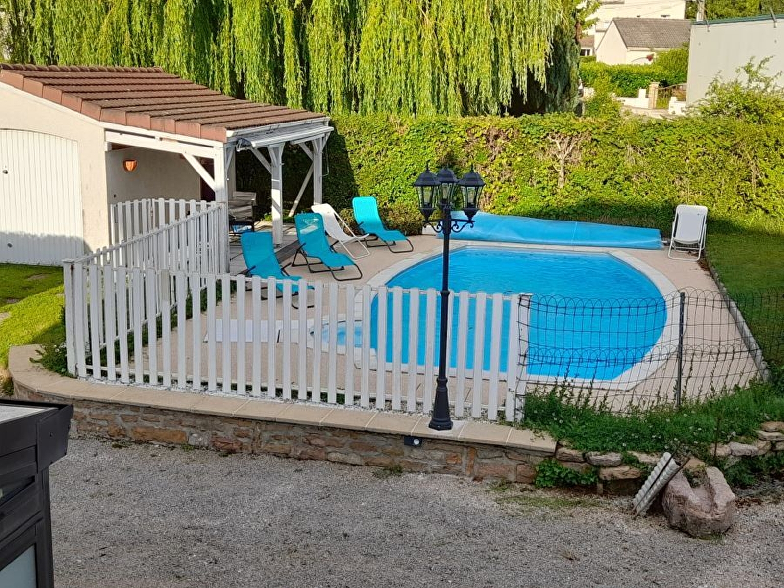 Cette maison indépendante située au calme se compose au RDC, d'un petit coin salon avec cheminée à bois (fourni gratuitement), de 2 chambres, l'une avec 2 lits simples et la seconde avec 1 lit en 140, d'une buanderie avec douche et WC, d'une véranda et d'un garage. A l'étage, cuisine intégrée toute équipée, salon avec TV et canapés convertibles (possibilité d'accueillir 1 ou 2 personnes supplémentaires sur demande et avec supplément), salle à manger offrant un accès direct au balcon avec salon de jardin, chambre avec un lit double en 140, salle de bain avec baignoire et WC indépendant. Côté extérieur, vous pourrez profiter d'une piscine clôturée de 8*4 mètres (avec 1.5 mètres de profondeur au maximum) et d'un pool-house. Des transats et un barbecue seront également à votre disposition. Pour votre plus grand confort, les lits seront faits à votre arrivée et les linges de toilettes sont fournis. Idéalement situé pour partir à la découverte de la ville thermale de Lons le Saunier, de Louhans et son célèbre marché, ou encore de la région des lacs. Note : gîte accessible PMR (monte-escalier)