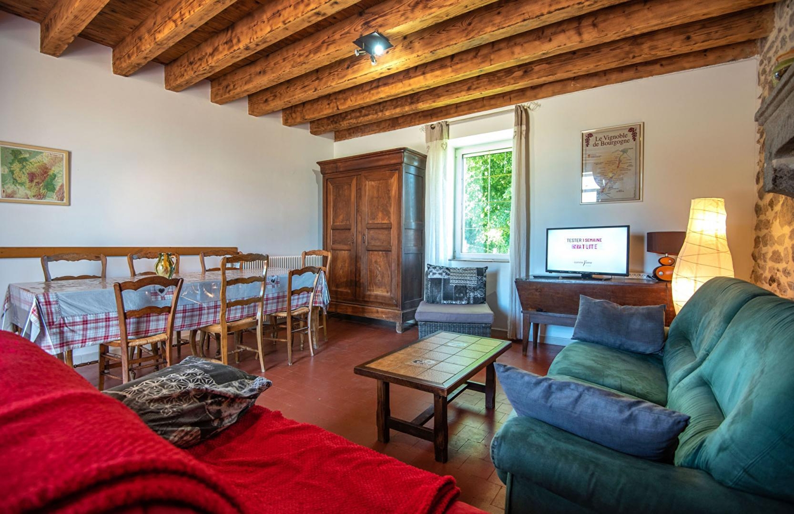 Située à mi-distance d'Autun et du Creusot, dans un hameau calme surplombant la vallée, cette ancienne ferme avec maison indépendante offre une vue superbe sur la campagne, et assure une tranquillité absolue avec 10 hectares de terrain privatifs tout autour.