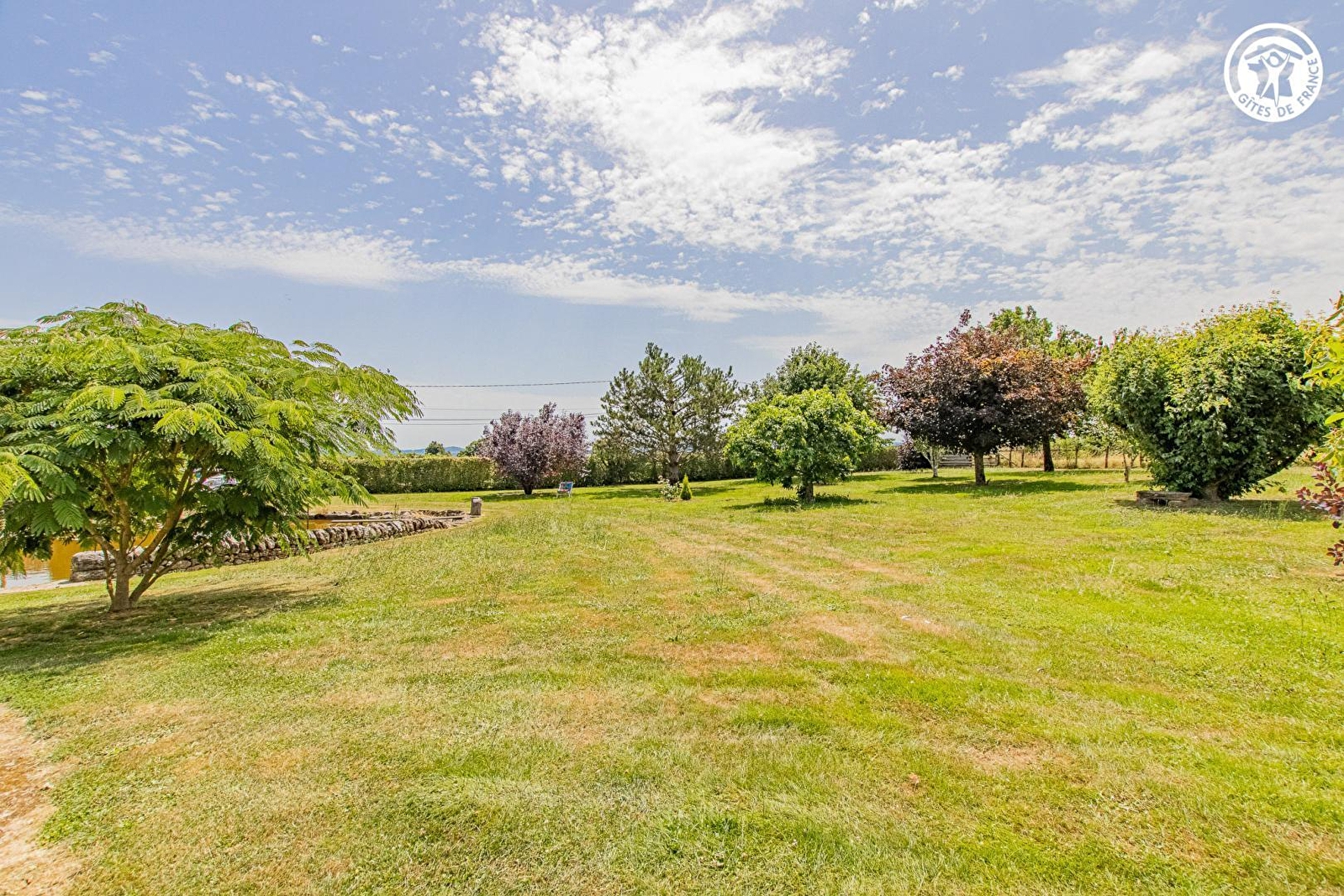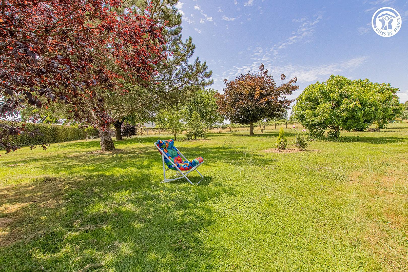 Composition : Gîte mitoyen à l'habitation propriétaires (totale indépendance). Wifi (fibre). Chauffage central mixte (bois/fioul). Climatisation à l'étage. Rdc : séjour-cuisine-salon (canapé conv. 130x190cm en appoint en "coin nuit"), chambre (lit 2 p. 140x190cm) avec TV & salle d'eau privées (douche/Wc), salle d'eau (douche), Wc indépendant. 1er étage : chambre (lit 2 p. 140x190cm + lit 1 p. 90x190cm), salon TV en mezzanine, salle de bain (baignoire/Wc). Terrasse + terrasse abritée + parking privés. Jardin en commun (1 ha). Commodités dont supermarché 7.5 km.