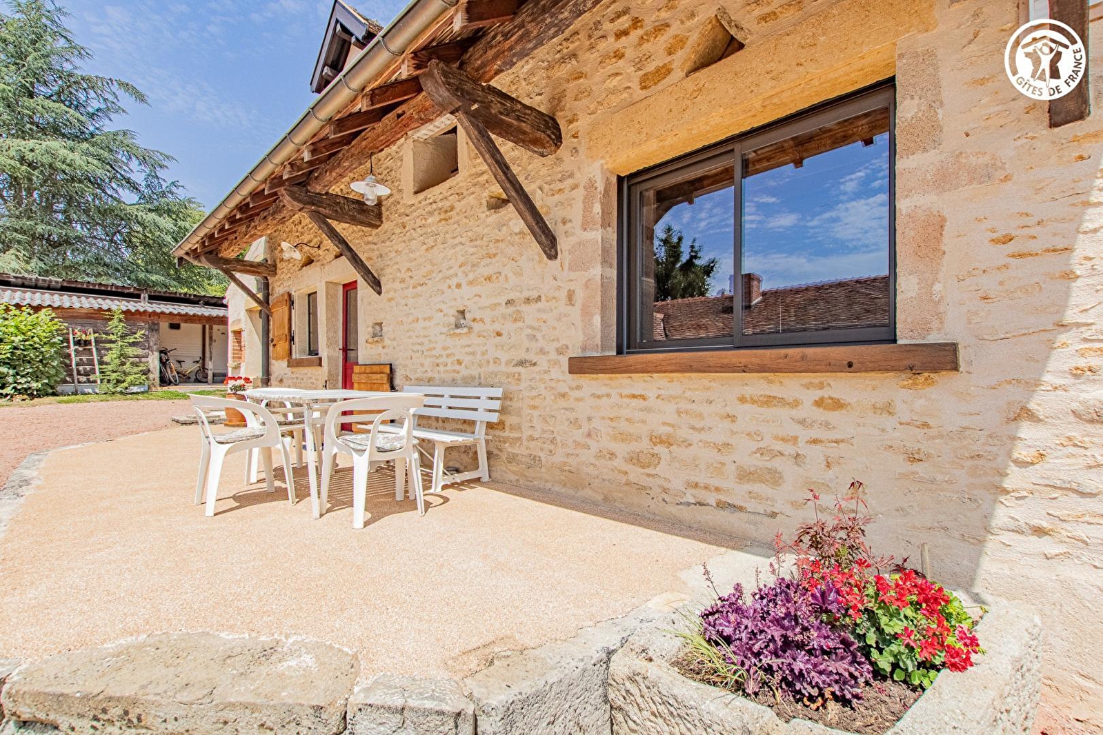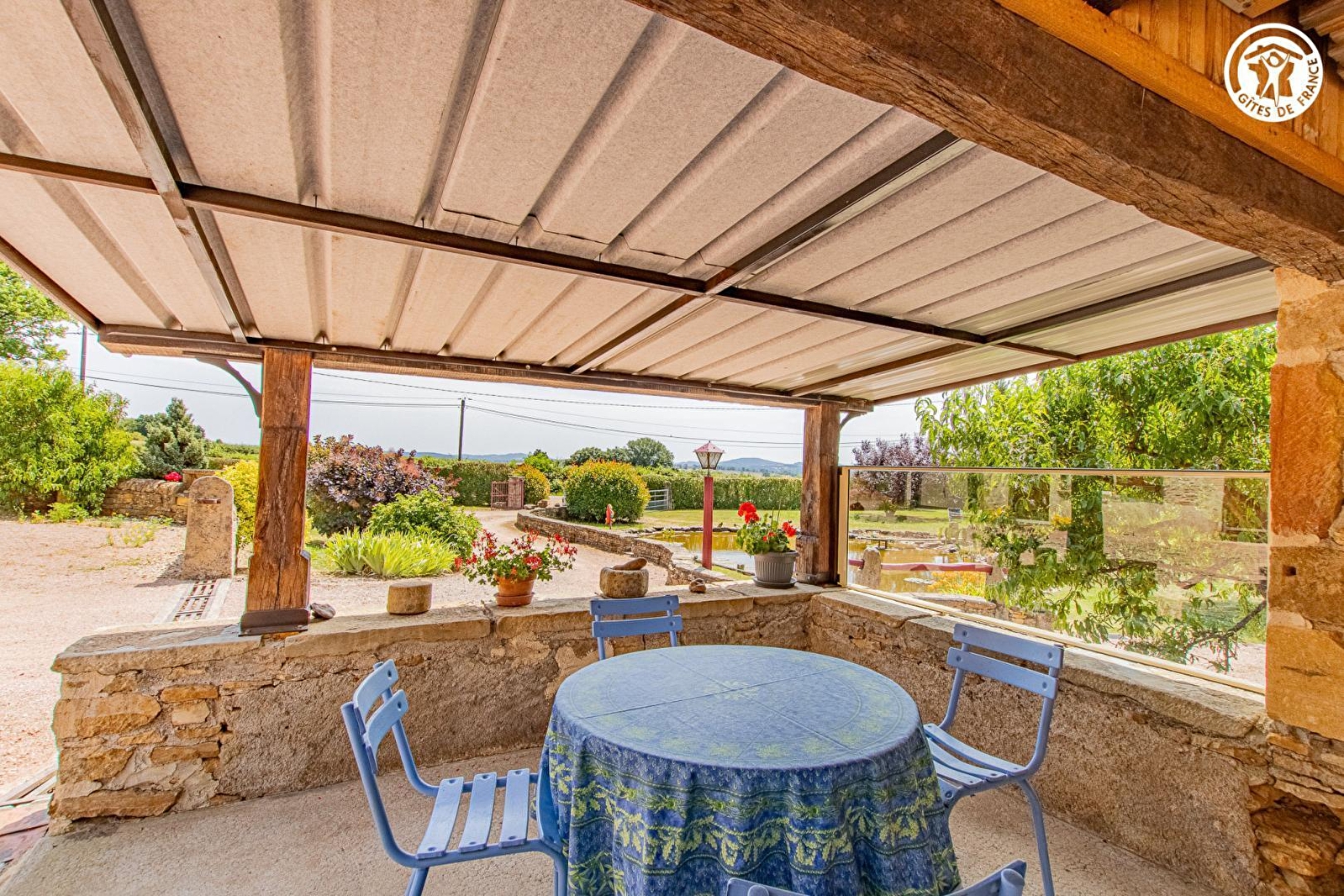 Passionnés de voitures anciennes (ayant en partie inspiré la "déco" du gîte), Nicole & Paul vous accueillent au sein d'une élégante authentique fermette traditionnelle du XIXe soigneusement restaurée, nichée au calme en pleine campagne charolaise préservée (sur un site protégé en ZNIEFF pour ses richesses faunistiques & faunistiques), aux confins de l'un des plus petits villages de Saône-et-Loire. Absolue tranquillité, lové en lisière de prairies, à l'orée d'une belle forêt sauvage, au creux du magnifique bocage local (accueillent les paisibles & célèbres vaches charolaises en saison). Apaisant écrin préservé de nature & verdure. Véritable havre de paix & repos offrant le privilège rare de pouvoir observer la faune sauvage (chevreuils, lièvres, renards, rapaces, lérots, nombreux oiseaux…). Gîte de très bon confort. Ultra spacieux. Vaste pièce de vie. Chaleureux cachet campagnard aux accents contemporains sublimé par les riches traces du bâti d'origine (manteau de cheminée, linteaux, niches & piliers en pierres, tomettes, poutres…). Énormément de charme & caractère. Cosy & douillet. Terrasse exposée que complète une vaste terrasse abritée. Très agréable propriété de 1 ha soigneusement engazonnée, végétalisée, fleurie & arborée (cerisiers, poirier, pêchers, mirabellier… / cueillette possible), abritant un insolite petit bassin (avec grenouilles & poissons rouges) comme un terrain de pétanque "naturel" sur cour.