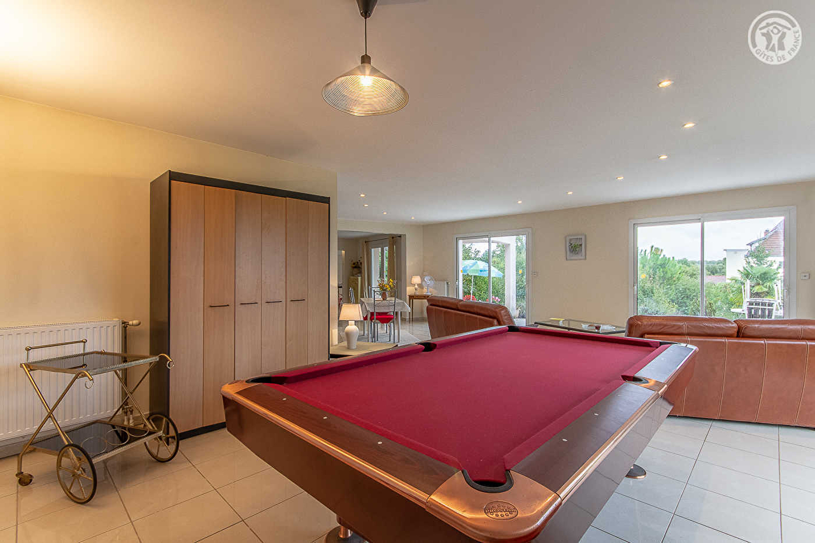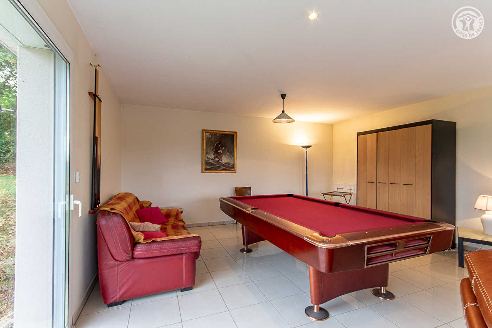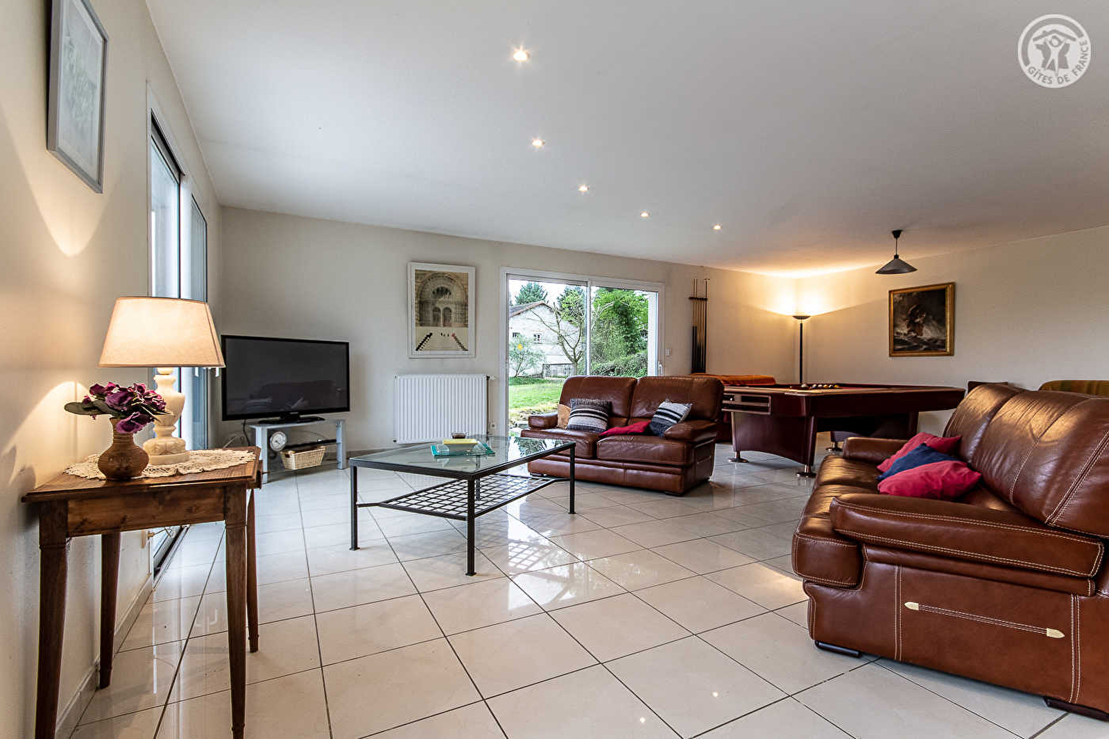Composition du gîte : Maison individuelle sur 2 niveaux (rdc + 1er étage). Wifi. Chauffage central fioul. Rdc : séjour-cuisine-salon (vaste pièce ouverte avec espaces cuisine et salon-séjour bien délimités / cuisine avec cellier / billard à disposition côté salon). 2 chambres (1 lit 2 p. 140x190cm dans chacune / 1 avec TV), salle d'eau (douche), WC indépendant. 1er étage : 1 chambre (1 lit 2 p. 140x190cm), salon en mezzanine donnant accès à un balcon. Jardin + double terrasse (une couverte). Parking privé (garages non accessibles). Chaise et lit bébé à disposition. Commerces & services à 6 km. Baignade biologique publique à la Chapelle Saint Sauveur à 12 km.