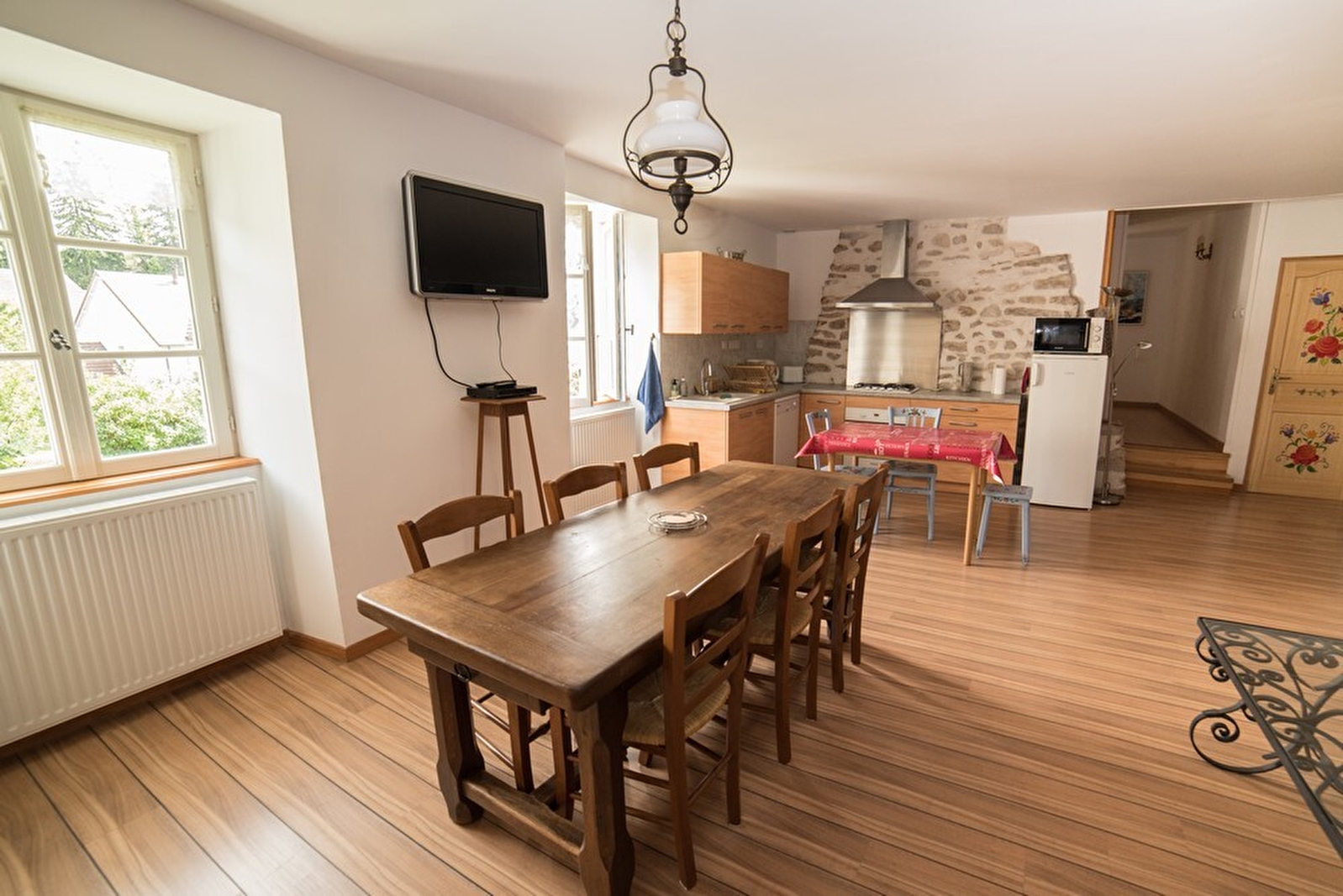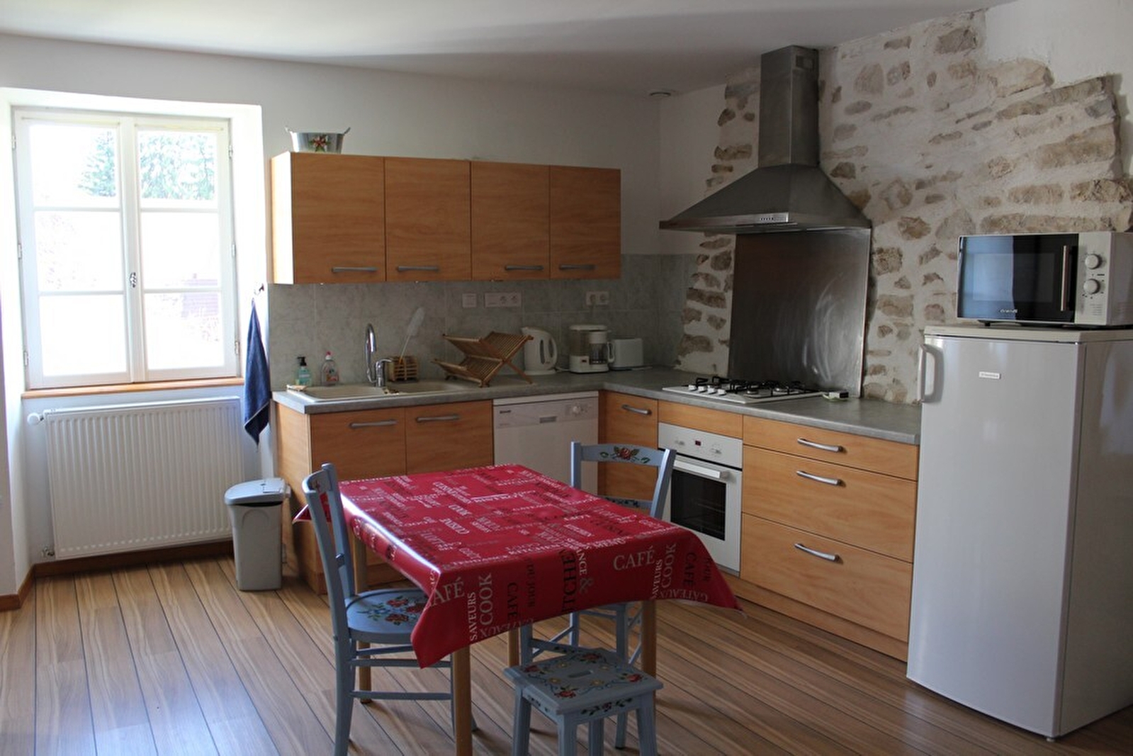 Idéalement situé à proximité des Lacs et des sites touristiques remarquables, au coeur du 1er plateau, sous les ruines du vieux château, logement aménagé à l'étage d'une maison mitoyenne à celle des propriétaires. Pièce à vivre composée d'un coin cuisine entièrement équipée et d'un séjour-salon avec canapé, tv écran plat et lecteur DVD. Une première chambre avec 2 lits de 90cm, une seconde chambre avec 1 lit de 140cm, une vaste salle d'eau avec douche et machine à laver. Wc indépendants. Terrasse couverte équipée d'un salon de jardin et barbecue. Terrain attenant non clos.