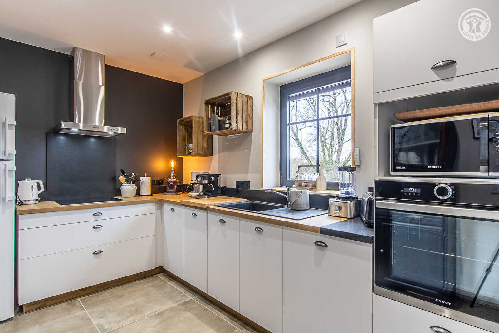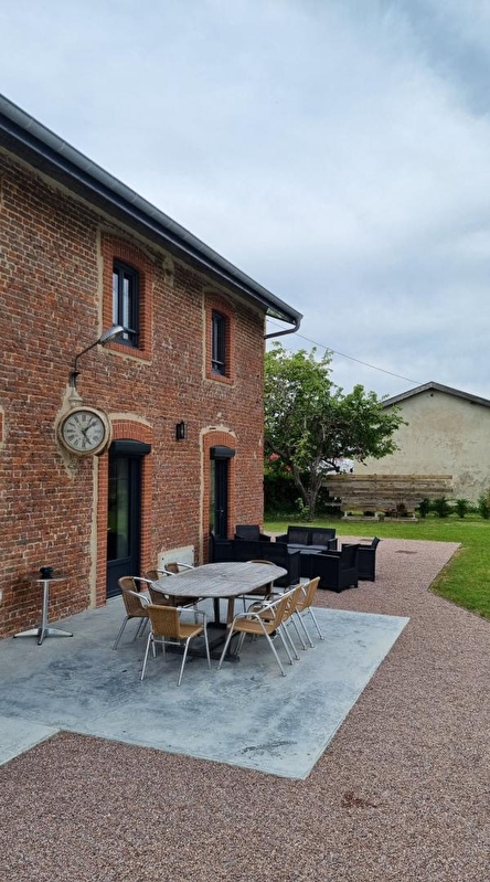 Inspirés par la douce magie du site et tombés littéralement amoureux des lieux, Céline & Cyril vous ouvrent les portes d'une très rare authentique gare ferroviaire du village du 19ème siècle (ancienne gare du bourg dont subsistent de nombreuses traces architecturales soigneusement préservées, que vous aurez loisir de découvrir sur place), élégante demeure industrielle de caractère pétrie d'histoire, intégralement restaurée dans les règles de l'art & revisitée en ultra confortable villégiature. Au sein d'un hameau résidentiel jouxtant le cœur d'un charmant petit village typique & commerçant, blotti en pleine campagne bressane au creux d'un apaisant cadre rural préservé, alternant champs & prairies verdoyantes, bucoliques étangs et belles forêts sauvages (accessibles à deux pas). Spacieux gîte de grand standing. Ravissant cachet résolument contemporain un brin « rétro », mixant touches vintages & industrielles, sublimé par une « déco » hyper soignée basée sur la thématique du train & du chemin de fer, ludique « fil conducteur » en hommage au très riche passé du site, dans un esprit « carnet de voyage ». Énormément de charme, style & caractère. Ambiance ultra cosy & cocooning. Très belles prestations. Équipement complet de grande qualité. Large terrasse (exposée et ombragée, selon) ouverte sur un intimiste et agréable jardin engazonné & arboré de 1400m² comprenant une belle piscine chauffée (3.5x6m) et un terrain de pétanque parfaitement aménagé.