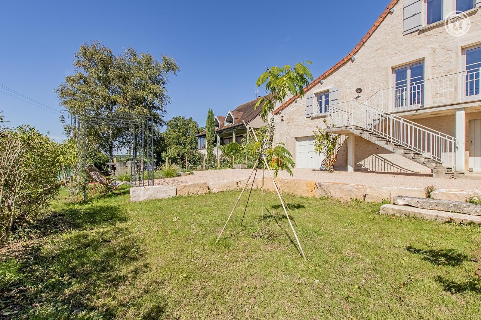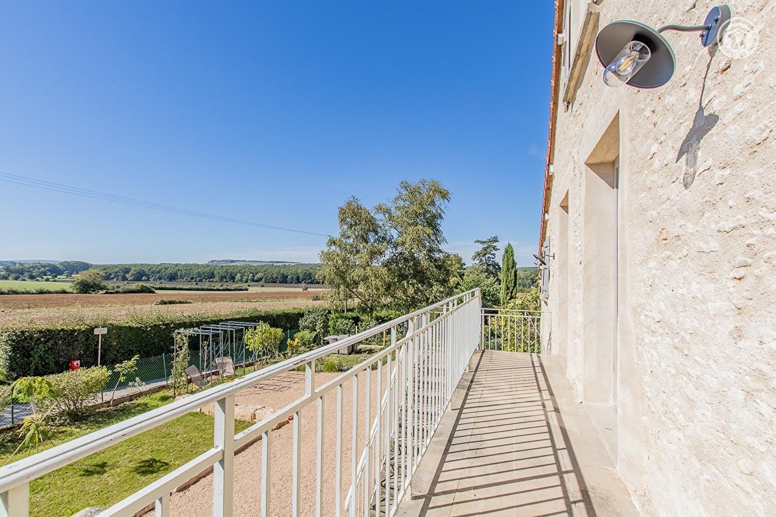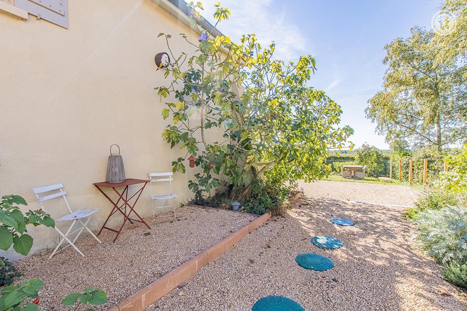Ravissante demeure mâconnaise traditionnelle du XVIIIe soigneusement restaurée dans les règles de l'art, blottie au calme en bordure de ruelle & prairies, aux confins d'un paisible hameau chargé de "grande histoire", ayant jadis abrité un Prieuré fondé au XIe - dont demeurent les vestiges - dédié aux jeunes filles issues de la noblesse locale (les célèbres "Dames de Lancharre"). Parfaitement préservé & riche d'un exceptionnel patrimoine (église romane classée du XIe, belles maisons typiques, pierres tombales médiévales classées, tuilerie du XVe, porte fortifiée d'une ancienne abbaye royale…), le site profite d'un bucolique écrin champêtre & naturel, lové en bordure de champs à l'orée d'une vaste forêt, non loin des premiers vignobles & collines boisées du massif Sud Bourgogne (superbe espace sauvage à parcourir à pied ou VTT). Spacieux gîte de très bon confort. Chaleureux cachet campagnard aux accents contemporains (ponctuée de quelques insolites touches "sixties") sublimé par une restauration patrimoniale très soignée (majestueuse poutraison, manteau de cheminée en pierre & briques, murs en pierres, imposant linteaux de portes en pierres, tomettes etc… d'origine). Énormément de charme & caractère. Ambiance cocooning & cosy conjuguée à l'âme dépaysante des lieux. Large balcon panoramique offrant une belle vue dégagée sur la campagne environnante. Agréable jardin clos de 400m², fleuri & végétalisé, doté d'une cour.