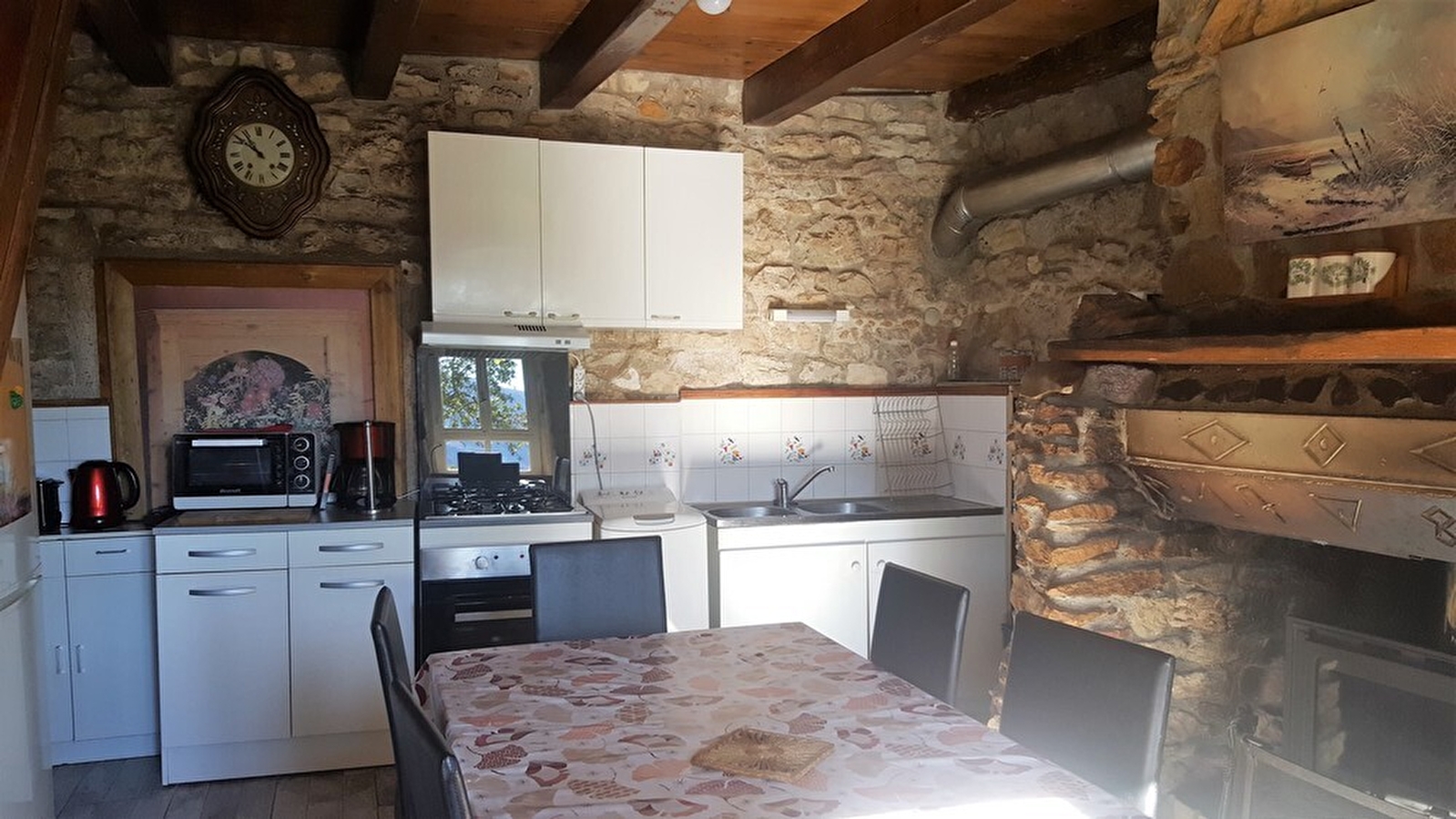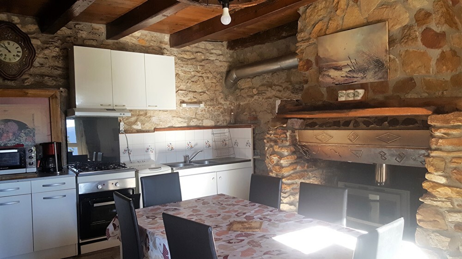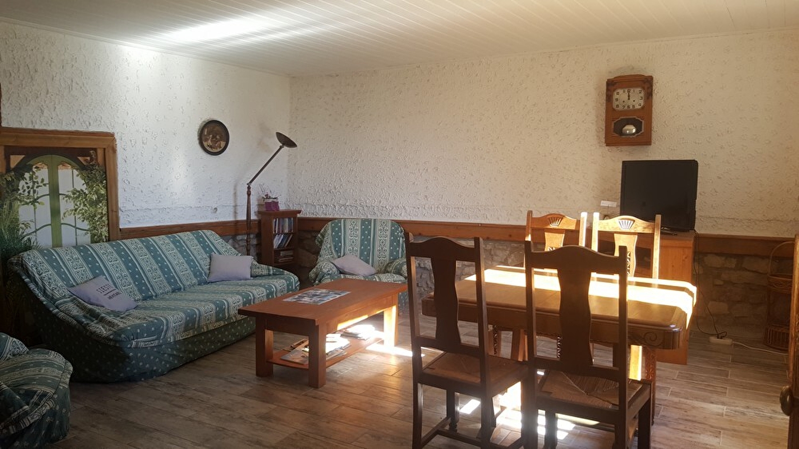 Au coeur du Haut Jura, à proximité de la ville de St Claude, maison mitoyenne offrant une belle vue sur les Monts jurassiens. Au rez de chaussée, cuisine, séjour avec cheminée, salon. A l'étage: salle d'eau, ch1: 1lit 1 pl , ch2: 2 lits 1 pl (de 120cm), terrain attenant non clos, cour, salon de jardin, barbecue. Chauffage central. Toutes charges comprises.