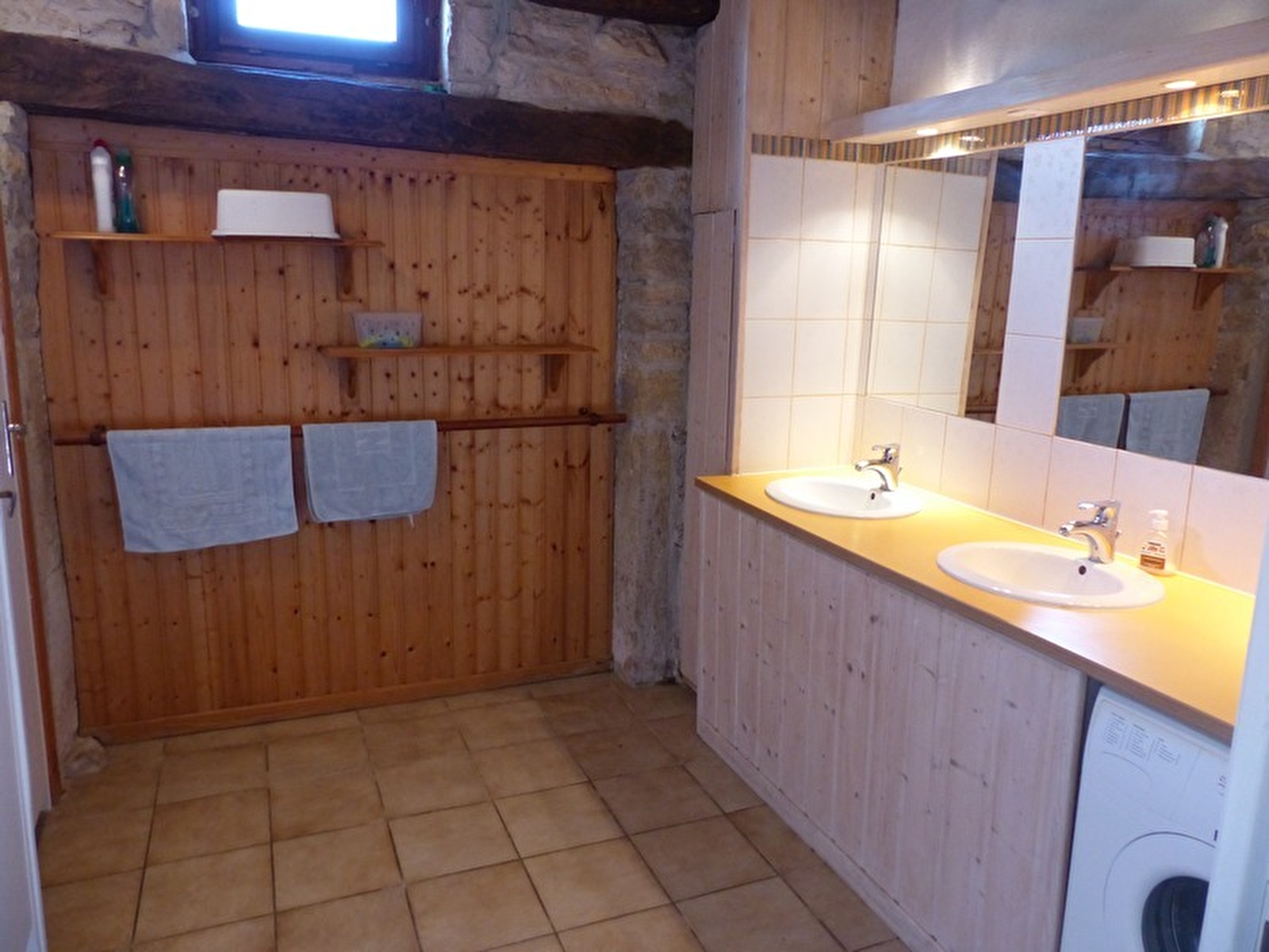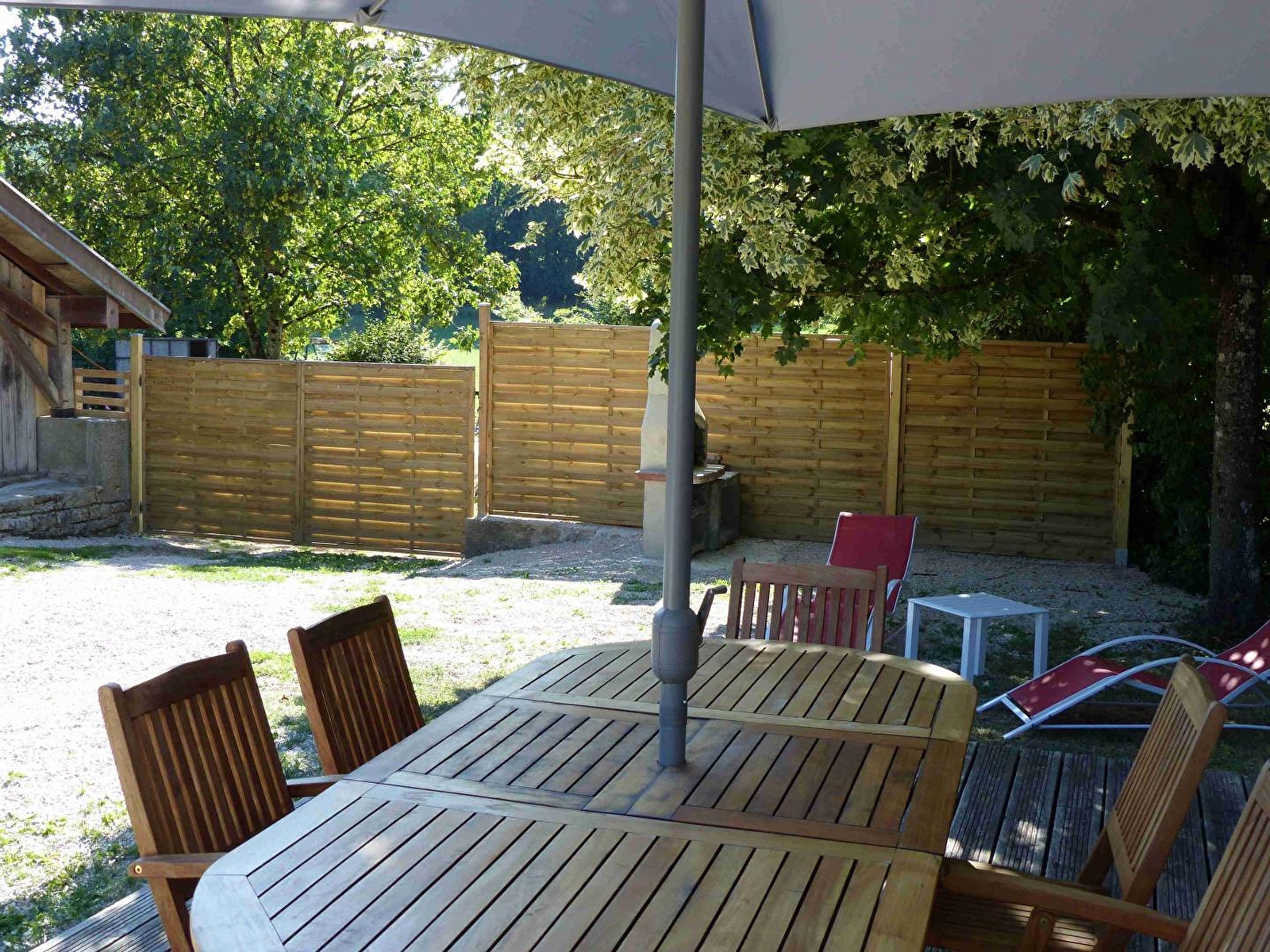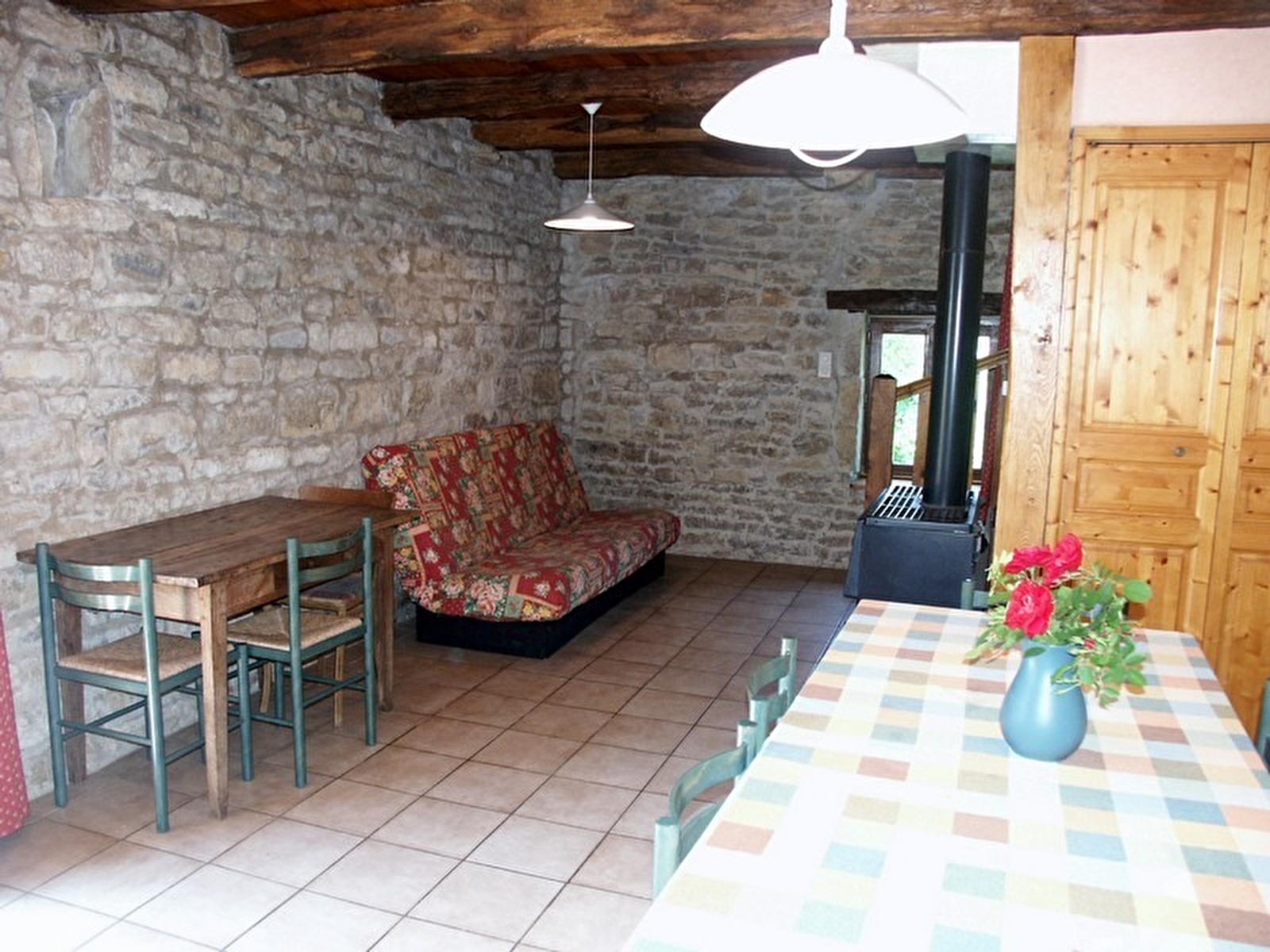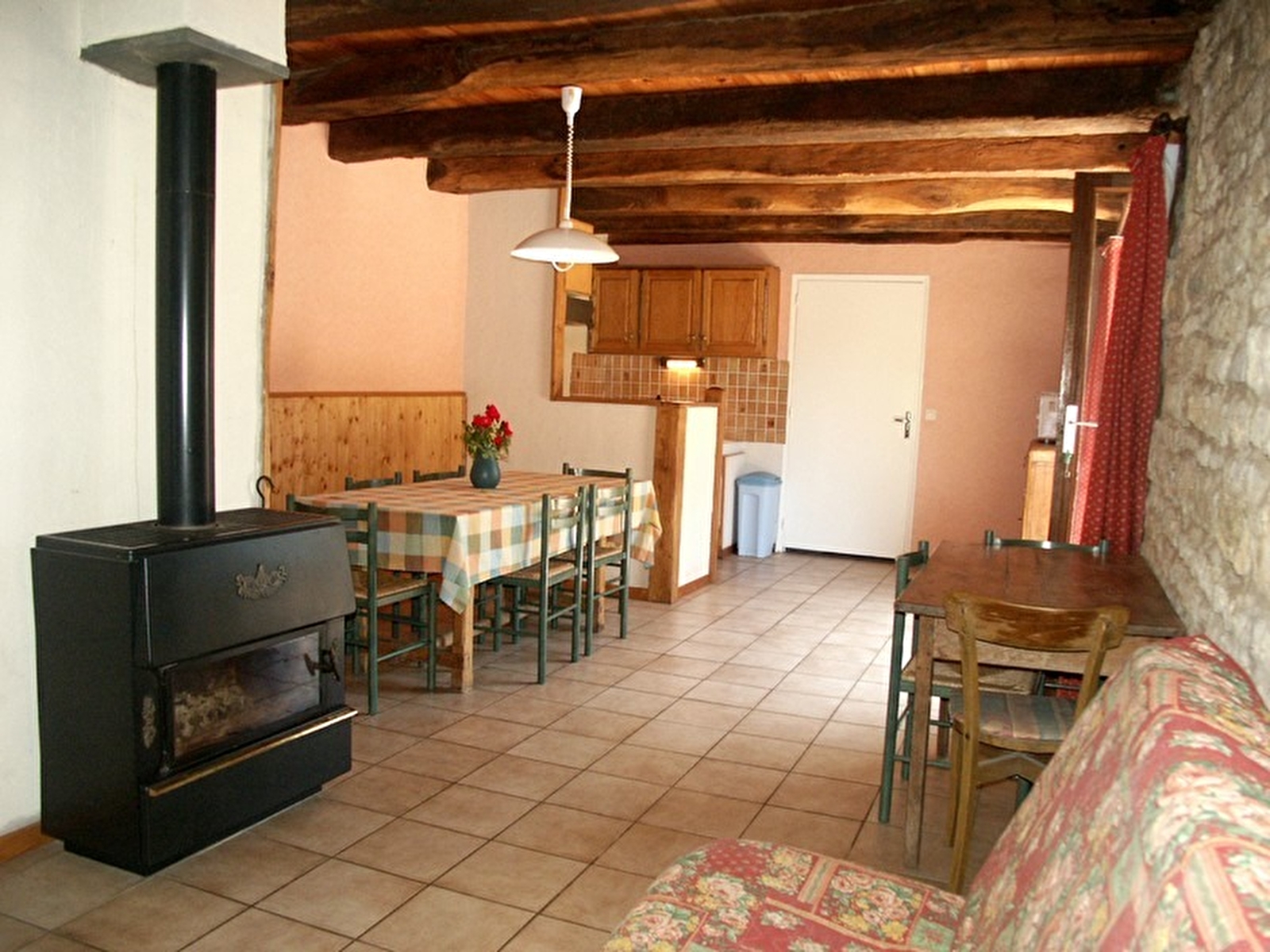 Maison indépendante avec au rez-de-chaussée: cuisine-séjour avec poêle-cheminée, salle d'eau avec 2 douches et un wc indépendants. A l'étage : 2 chambres avec un 1 lit 2 personnes et la 3ème chambre avec 1 chambre avec 2 lits superposés. Cour et jardin entièrement clos, salon de jardin, barbecue. Chauffage au bois (gratuit) et électrique. Charges non comprises. Sur demande: chaise bébé, table à langer, lit et baignoire.