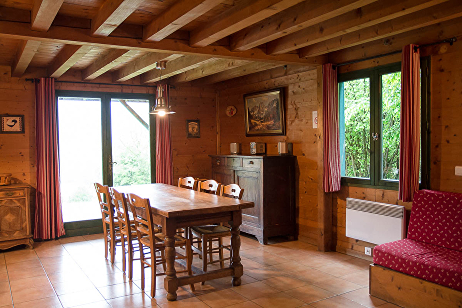 Chalet indépendant situé à proximité des Cascades du Hérisson. Au rez de chaussée salon - séjour, cuisine, Ch.1 : 1 lit 2 personnes, salle d'eau. A l'étage: une mezzanine avec coin salon, Ch2 : 1 lit 2 pers et 2 lits 1 pers. Terrasse couverte avec salon de jardin, barbecue, abri garage attenant. Terrain non clos. Terrain de pétanque. Accès internet gratuit en wifi. Équipement bébé. Chauffage électrique et bois, charges non comprises. Forfait bois : 30 €/semaine du 15/10 au 15/04. 1 animal autorisé, animal supplémentaire sur demande préalable auprès du propriétaire (supplément de 35 € par animal supplémentaire).