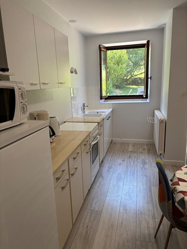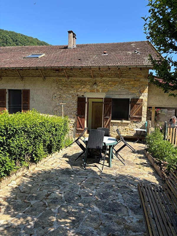 Situé dans une reculée, site Natura 2000. Proximité du vignoble de Chateau-Chalon. Logement au rez de chaussée d'une maison où se trouve un autre gîte. Cuisine-séjour, chambre avec 1 lit 2 places - chambre 1 lit 2 places et 1 lit 1 place, salle d'eau, terrain attenant clos, cour-terrasse, salon de jardin, barbecue. Chauffage central. Toutes charges comprises. Espace détente et jeux. Abri pour voiture. Départ de sentiers de randonnées. Les draps et linge de toilette ne sont pas fournis