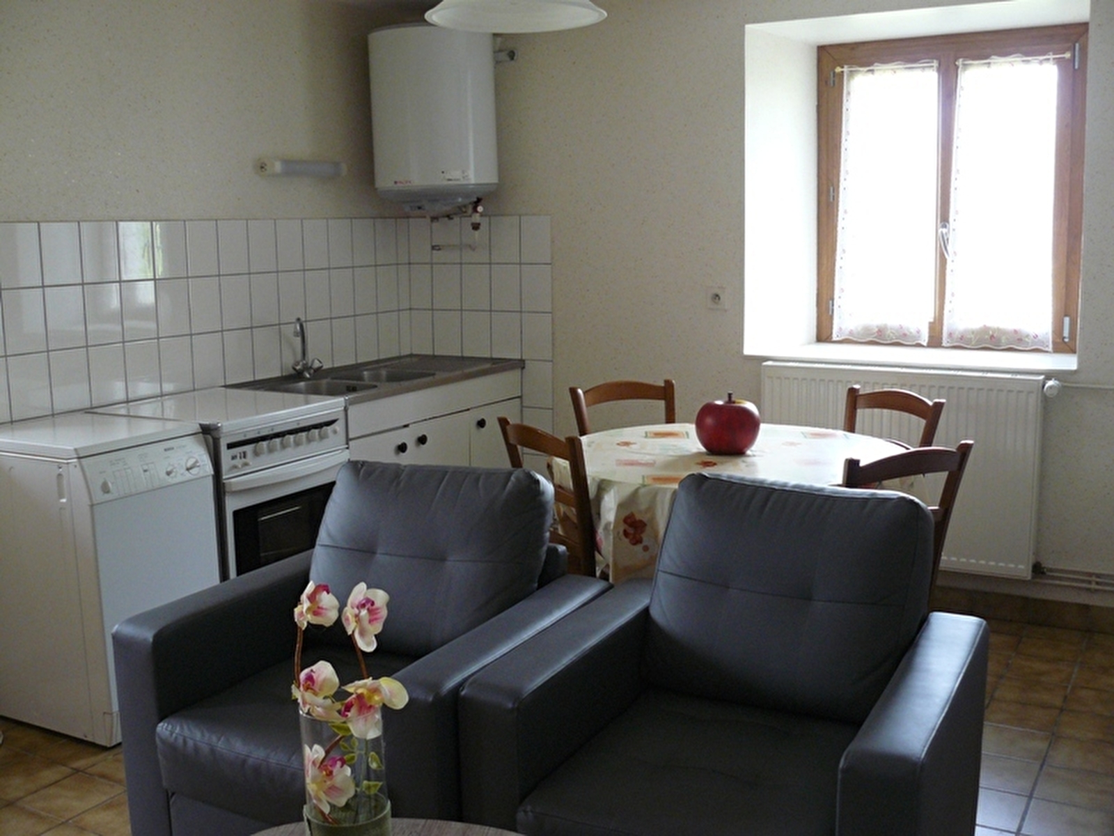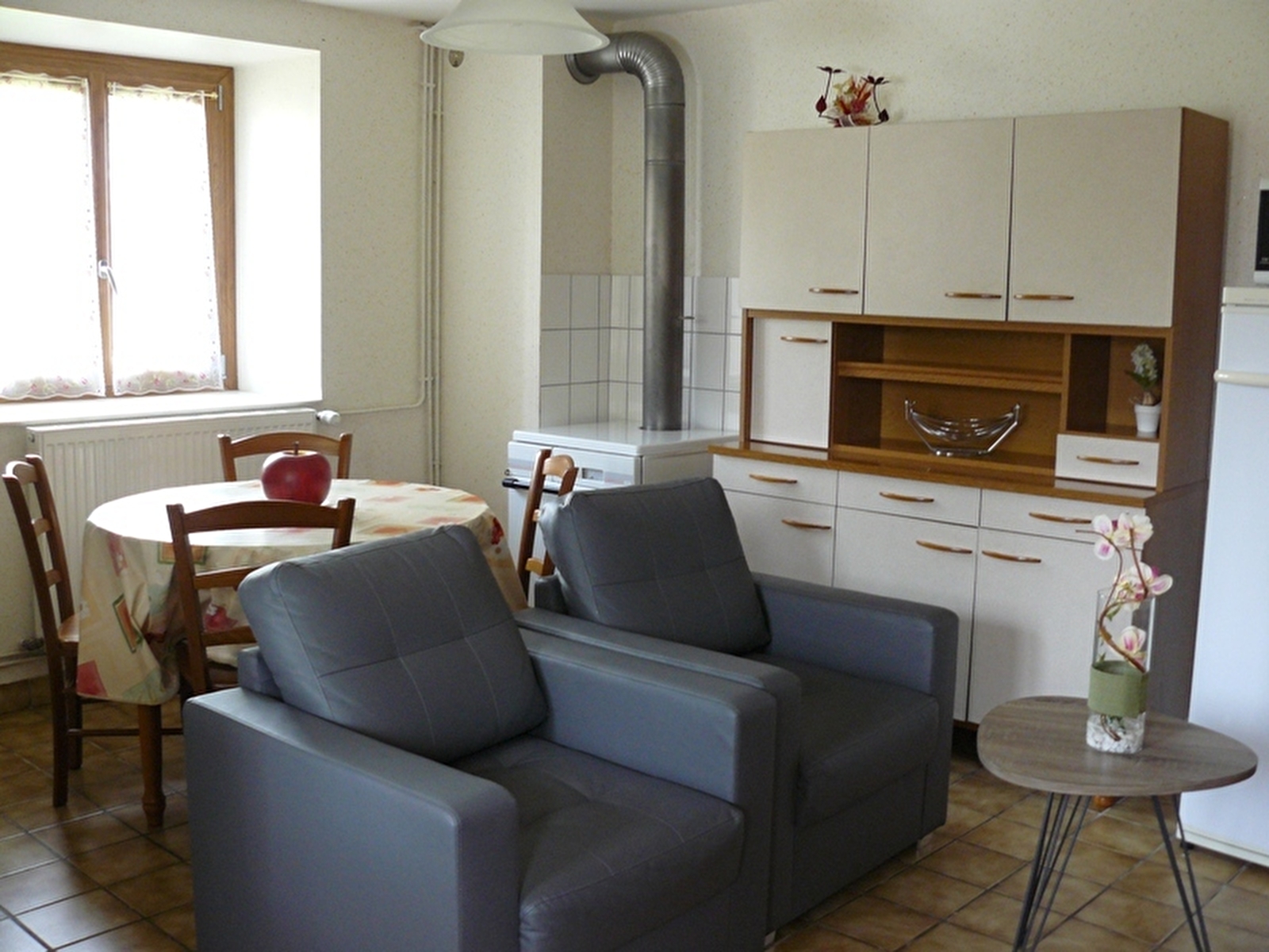 Dans le haut Jura, à quelques kilomètres de la cité médiévale de Nozeroy, ce logement est aménagé au rez de chaussée de la maison du propriétaire. Vous pourrez disposer d'une petite véranda, d'une cuisine-séjour, d'une salle d'eau et de 2 chambres, chauffage central et chauffage au bois dans la cuisinière. A l'extérieur, une cour et un terrain attenant non clos, avec salon de jardin avec barbecue pour profiter du grand air. Un garage est disponible pour une voiture l'hiver.