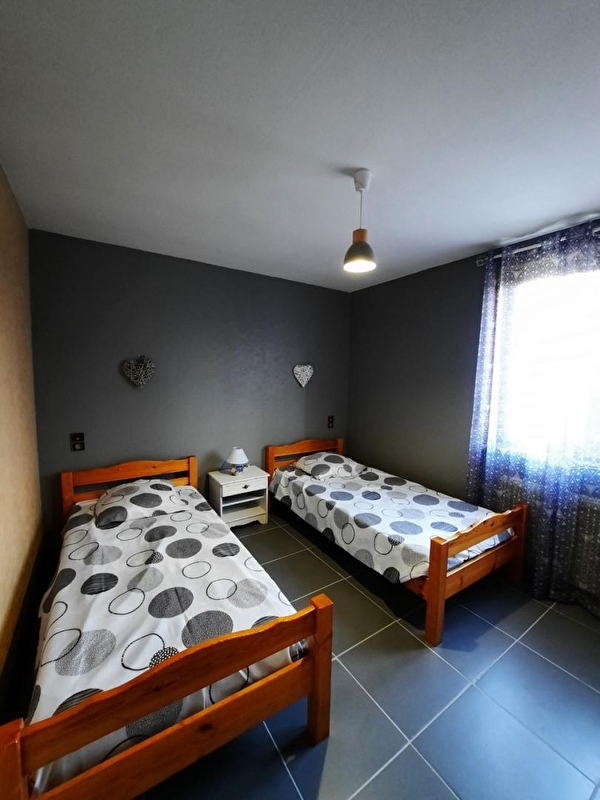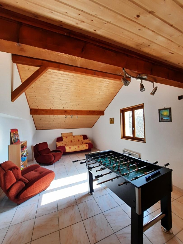 Idéalement situé à proximité du barrage et du lac de Vouglans, ce gîte dispose d'une belle vue sur la nature environnante. Lieu idéal pour la randonnée, le VTT, les activités nautiques, via ferrata. Vous pourrez disposer au 1er étage d'un coin-cuisine, un salon-séjour, une salle de bains avec WC, ch1:1 lit 2 pl,1 lit BB, ch2:1 lit 2 pl, ch3:2 lits 1 pl. Au 2ème étage: ch4:1 lit 2 pl, salle d'eau avec WC, et une salle de jeux avec un canapé convertible. Chauffage central et électrique. Cour, balcon, terrasse, terrain attenant clos, salon de jardin, barbecue, petit bassin empoissonné dans la propriété (clos). Forfait ménage obligatoire si présence d'un animal.