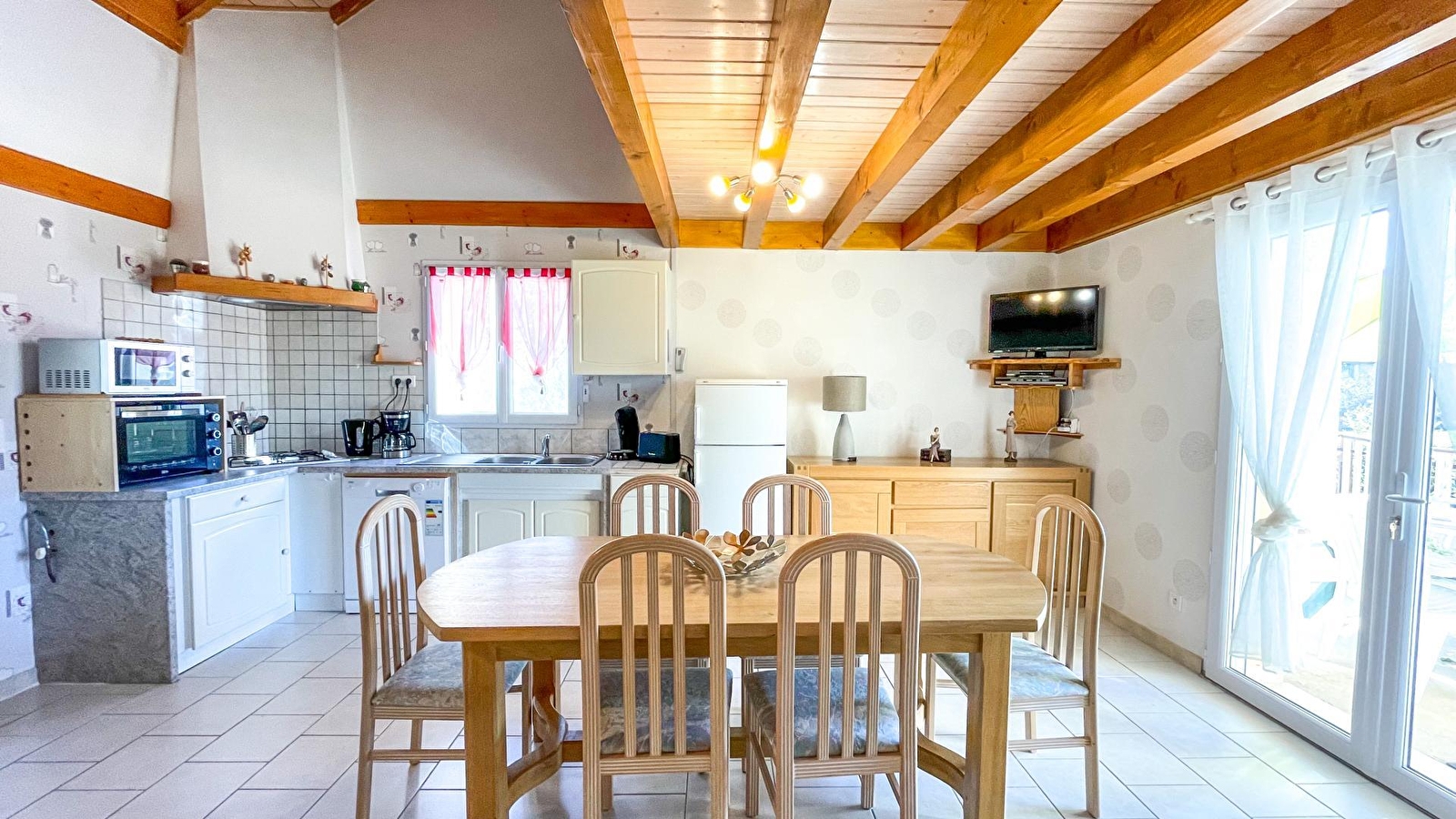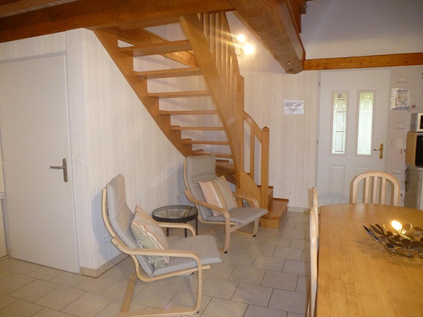 Maison indépendante abritant 2 logements mitoyens avec entrée indépendante. Au rez de chaussée: séjour salon (lecteur DVD), coin cuisine, réfrigérateur congélateur. CH1:1 lit 2 places en 160 cms, grande salle d'eau avec wc. A l'étage: mezzanine avec canapé, CH2:1 lit 2 places en 140 cms, CH3:2 lits 1 place, wc indépendant. Chauffage central (pompe à chaleur) et électrique. Terrasse (sans vis à vis avec la terrasse de l'autre appartement), terrain attenant non clos, salon de jardin,barbecue, terrain de pétanque. Gîte non fumeurs. Idéalement situé au cœur de la région des lacs, vous pourrez découvrir les cascades du Hérisson, le lac de Chalain, le Belvédère des 4 lacs... Possibilité de louer le G2238 pour accueillir au total 12 personnes.