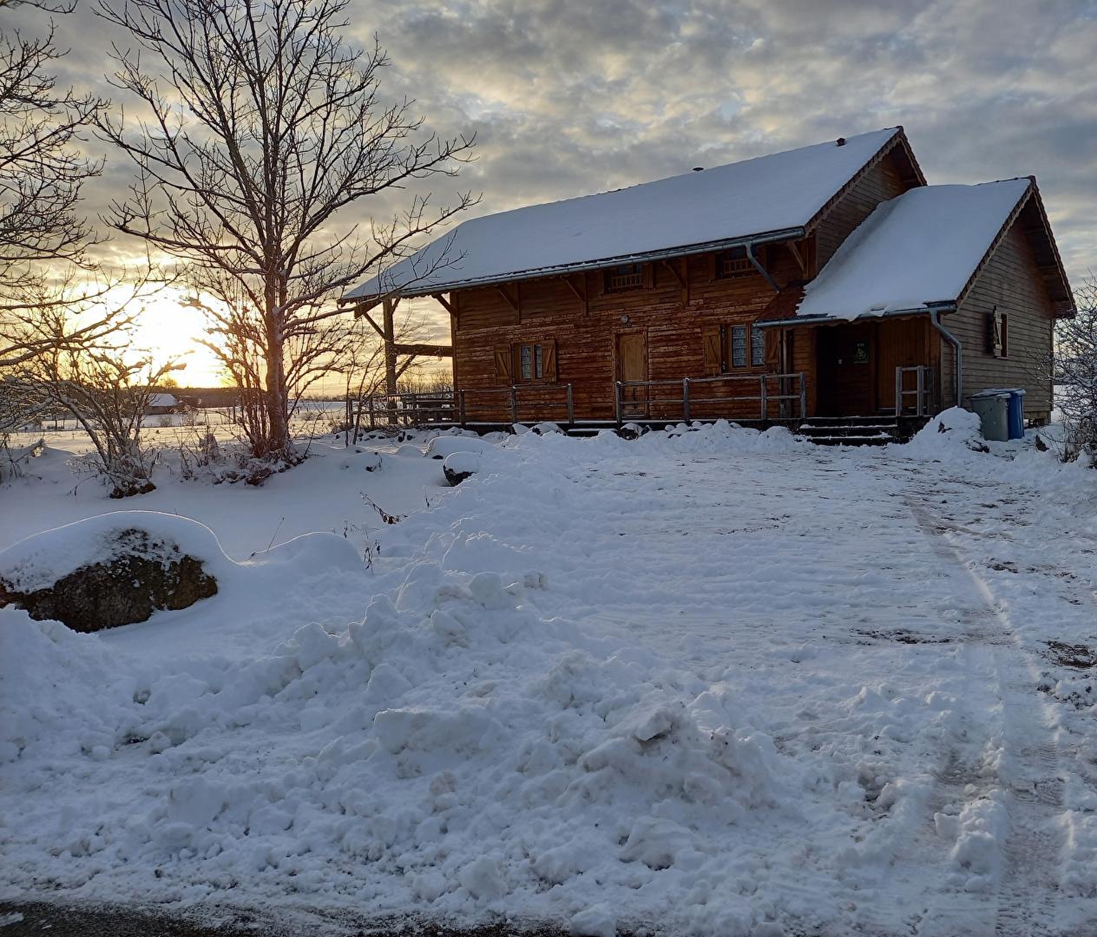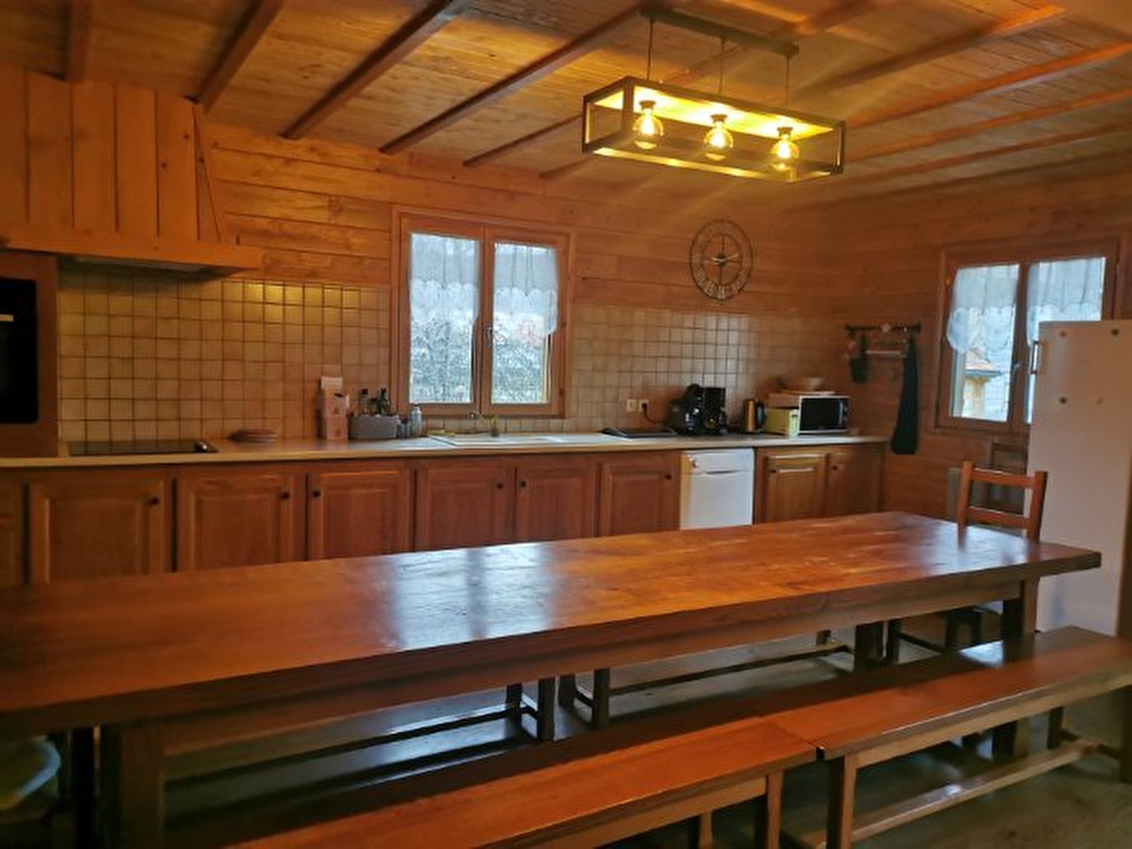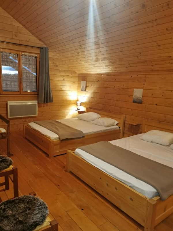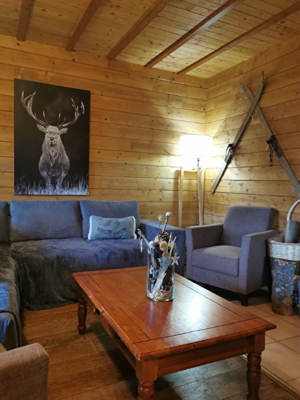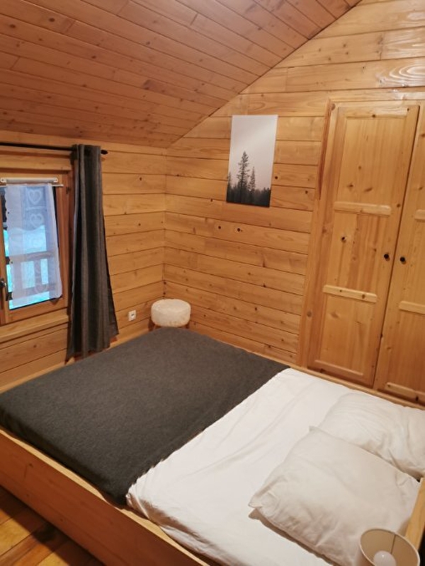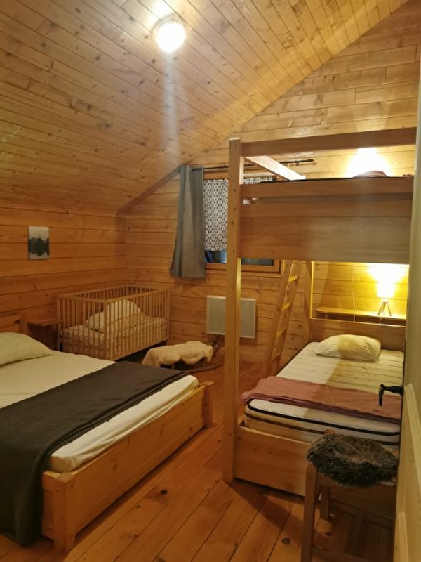 Très beau Chalet indépendant, au rez de chaussée: séjour-salon ouvert sur cuisine, lecteur DVD et chaîne HIFI, une chambre avec 1 lit 2 places, salle d'eau, WC indépendant, buanderie avec sèche-linge électrique et accès au garage,. A l'étage: chambre 2: 1 lit 2 pl, chambre 3: 1 lit 2 pl, 2 lits 1pl superposés, chambre 4: 2 lits 2 pl, chambre 5: 1 lit 2 pl, 1 lit bébé, salle d'eau, WC indépendant. Chauffage électrique. Terrasse, cour, terrain attenant non clos, salon de jardin, barbecue. Bois fourni pour le poêle. Charges non comprises. Idéalement bien situé en pleine nature. Forfait location de draps de 100€. Réseau 4G disponible.