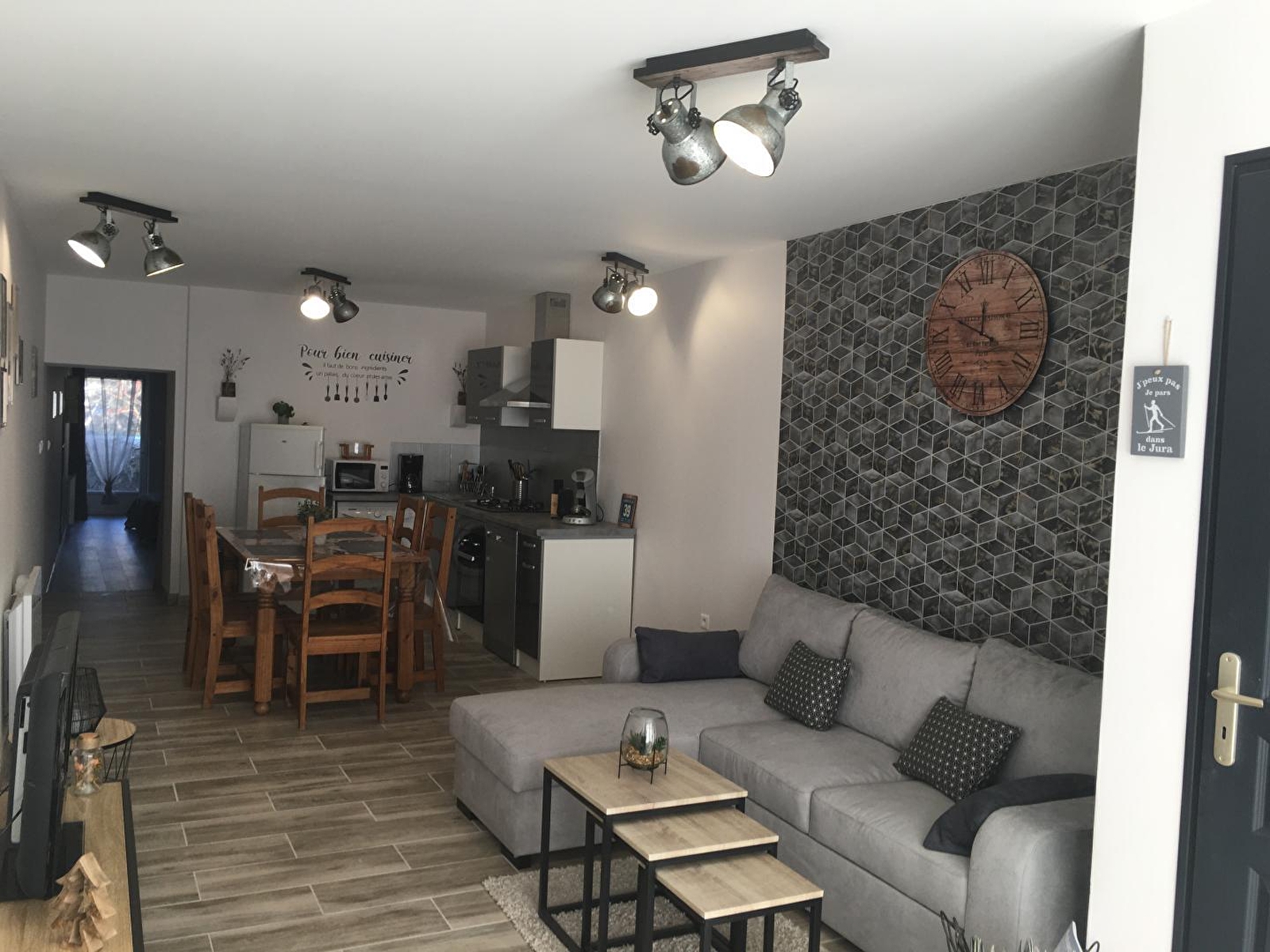 Appartement lumineux au coeur de la région des Lacs, au centre ville de Clairvaux les lacs, situé au RDC d'une maison mitoyenne avec celle des propriétaires. Pièce à vivre avec Espace détente: TV écran plat, lecteur DVD et canapé convertible, coin cuisine équipée, cafetière senseo. Salle d'eau, chambre avec 1 lit 2 pl ouvrant sur l'espace extérieur : grande terrasse, salon de jardin, barbecue. Emplacement pour voiture à proximité. Possibilité de location de draps: 20€ pour l'ensemble des lits. Equipement bébé sur demande. Wifi. chauffage électrique. Possibilité de location de 2 VTT au tarif de 50 euros