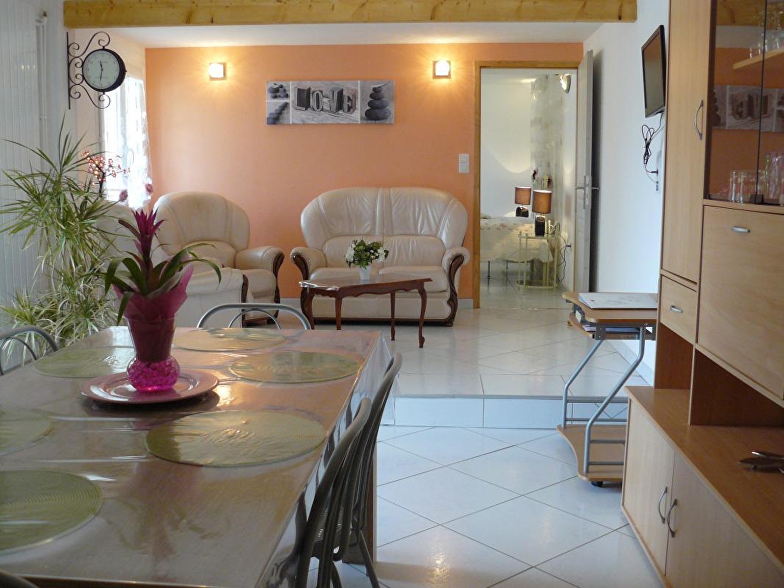 Maison indépendante de plain-pied accolée à la demeure des propriétaires située à seulement 2 km du centre ville de Dole, dans un quartier retiré de la ville et très calme. Vaste pièce à vivre avec cuisine toute équipée et salon, télévision écran plat. CH1 : 1 lit 2 pl, CH2: 2 lits 1 pl. Salle d'eau avec grande douche à l'italienne, WC séparé. Cour avec emplacement voiture privatif, terrasse couverte avec salon de jardin, parasol, plancha et barrière de sécurité pour les enfants. Lit et chaise bébé à disposition. Parking sur place pour un véhicule.