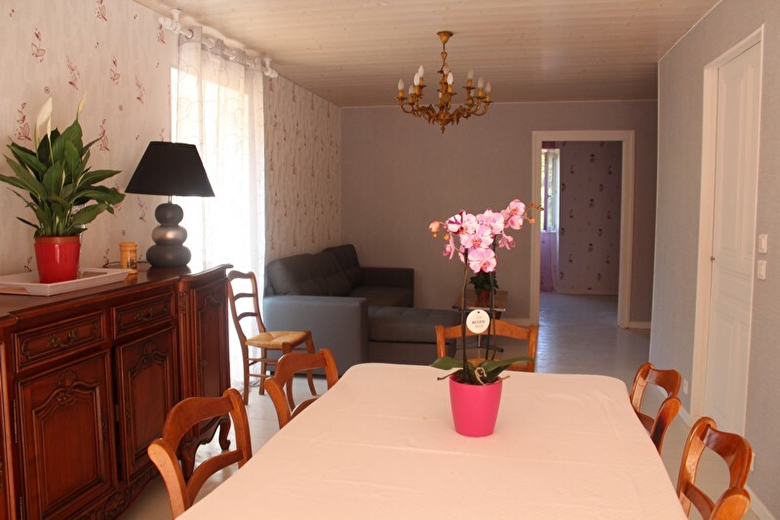 En plein coeur du vignoble jurassien, a seulement quelques kilomètres de Château-Chalon classé l'un des plus beau village de France ainsi que Baume-les-Messieurs, et non loin de la ville thermale de Lons-le-Saunier, jolie petite maison mitoyenne indépendante aménagée pour 6 personnes. Au RDC: pièce à vivre composée d'une cuisine toute équipée et d'un coin salon avec canapé convertible et TV écran plat, une chambre avec un lit de 140cm et une salle d'eau avec wc intégrés. A l'étage : 2 chambres, l'une avec un lit de 140cm et un lit de 90, et l'autre avec 1 lit de 160x200cm, une salle d'eau et wc indépendants. Terrasse offrant une splendide vue sur la nature environnante, équipée d'un salon de jardin et barbecue et grand terrain attenant arboré, idéal pour le repos ! A votre disposition sur demande : 2 vélos adultes, chaise et lit bébé. Pour l'accueil des animaux, contacter les propriétaires.