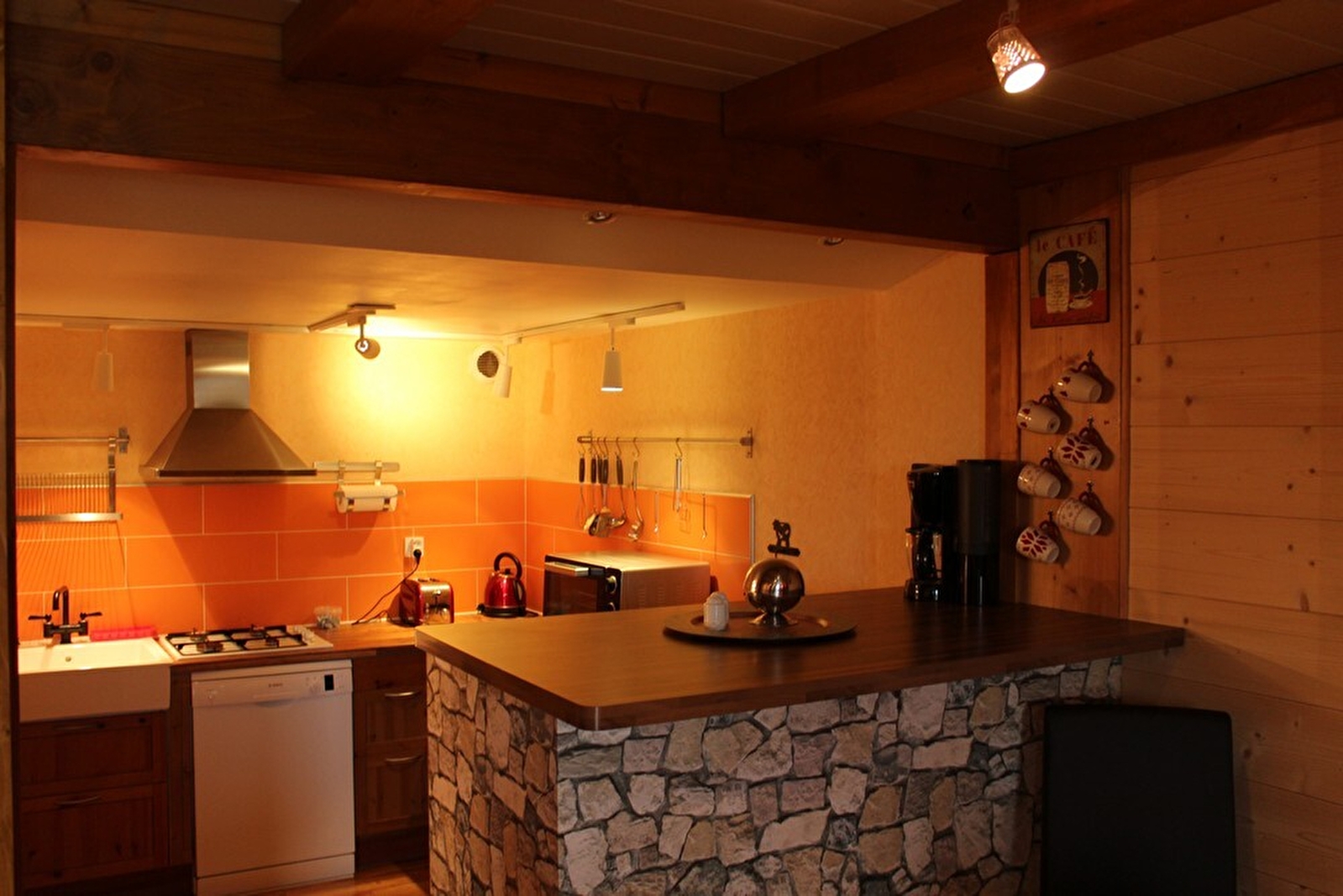 En plein coeur du Parc Naturel Régional du Haut Jura, au pied des pistes de ski de fond et des sentiers de randonnées, venez vous ressourcer dans ce gîte aménagé avec goût dans la grande ferme entièrement rénovée des propriétaires. Au rez-de-chaussée, vaste entrée avec rangements et canapé convertible, pièce à vivre composée d'un coin cuisine entièrement équipée et d'un séjour-salon avec canapé et télévision écran plat, salle de bain avec baignoire et wc. A l'étage une première mezzanine aménagée en chambre avec un lit de 140cm, et une seconde mezzanine avec également un lit de 140cm. Les lits sont faits à l'arrivée. Terrasse équipée de salon de jardin et barbecue et grand terrain attenant non clos offrant une vue magnifique sur la nature environnante.