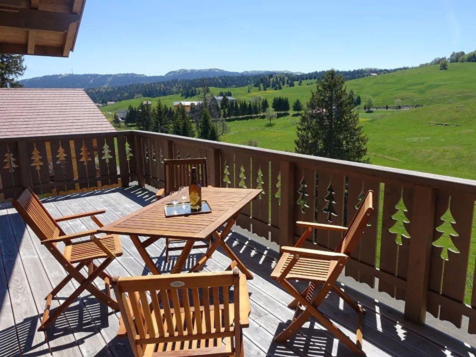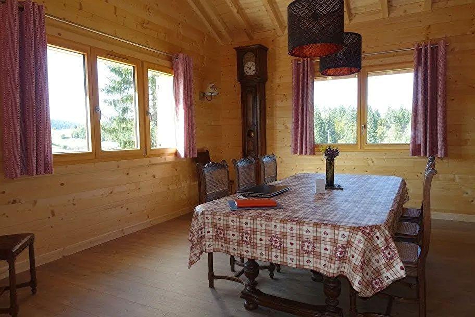 Découvrez ce magnifique chalet indépendant et lumineux. Pour accéder au chalet, 42 marches à monter, ce bel hébergement se mérite ! Au rez-de-chaussée, entrée avec baie vitrée où vous trouverez tout le nécessaire pour déposer vestes et chaussures, cette pièce sert également de couloir pour accéder aux chambres et à la salle d'eau. La première chambre est équipée d'un lit 160*200. La seconde dispose de 2 lits superposés (4 x 90) avec un bureau et une bibliothèque. Retrouvez la salle d'eau avec une douche grande dimension et un lave-linge., WC indépendant. Au premier étage, profitez d'un très grand séjour avec cuisine toute équipée, espace salle à manger et coin salon avec canapé et TV . Depuis le séjour, profitez d'un grand balcon de 30 m² où vous pourrez admirer la vue imprenable et panoramique. Le jardin est attenant au balcon, il est en partie clos et vous disposerez d'un salon de jardin et d'un barbecue. Au second étage, une mezzanine équipée de 2 lits de 80 (pouvant faire un lit en 160) avec coin bibliothèque (livres et jeux de société). Idéalement situé : ski de fond derrière la maison, les pistes tracées sont à moins de 800m, à 100m de la Grande Traversée du Jura, à 400m : activité de chiens de traîneau, face au chalet : pentes de luge. A 3 km, partez à la découverte du village de Lajoux où se trouve le Parc Naturel du Haut-Jura avec une salle dédié aux visites, il y a également une fruitière, un bureau de poste, un commerce de matériel de ski ( vente et location) . A 5 km, à Lamoura (village touristique) retrouvez, restaurants, Office du Tourisme, musée du lapidaire et le Lac de Lamoura. A 6 km, au centre de Septmoncel, un boulanger et épicerie. Forfait électricité : 340 kwh en hiver et 170 kwh en été - dépassement à en sus à régler sur place