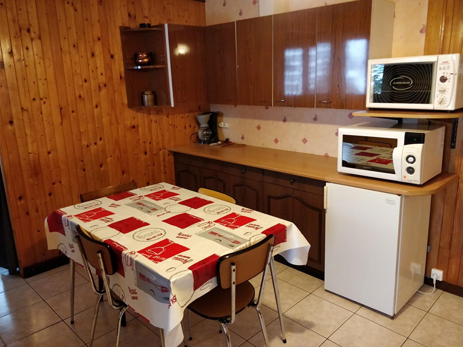 Logement au RDC d'une maison idéalement située pour les activités d'hiver comme d'été. Cuisine, coin-salon avec 2 lits superposés, ch1: 1 lit 2 pl (lit bébé sur demande), salle d'eau avec WC. Terrain attenant clos, cour, salon de jardin, barbecue. Chauffage électrique. Toutes charges comprises. 1 seul animal accepté.