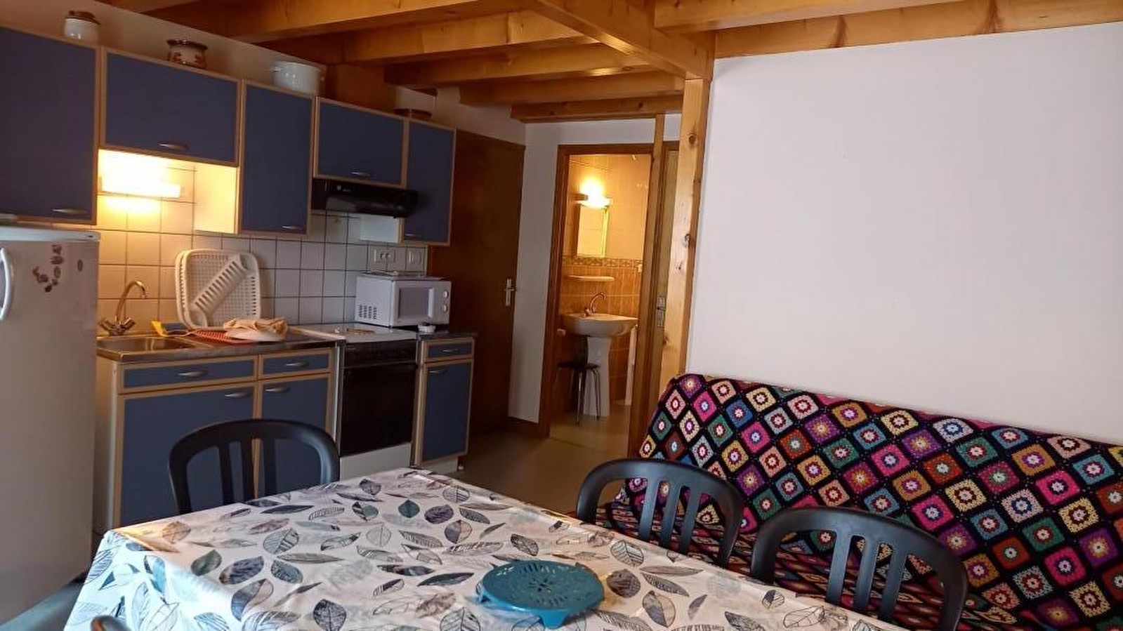 Authentique ferme du Haut Jura(alt:1200m) avec un large paysage sur la haute chaine (Monts Jura, Crêt de la Neige), nature et calme pour vous accueillir: entrée indépendante, à l'étage: séjour coin cuisine, une chambre (lit 140), salle d'eau, wc séparé, une mezzanine avec deux espaces couchages (2 lits simples et 1 lit simple avec possibilité d'un quatrième couchage). Local à skis, vélos, espace à jeux, terrain attenant non clos, terrasse, jardin, mobiliers d'extérieur.Équipements: micro onde, TV, lave linge. Chauffage central, toutes charges comprises, taxe de séjour en sus. animaux non admis. Toutes activités a pied et à vélo dans le PNR du Haut Jura; l'hiver ski et raquettes sur les GTJ.