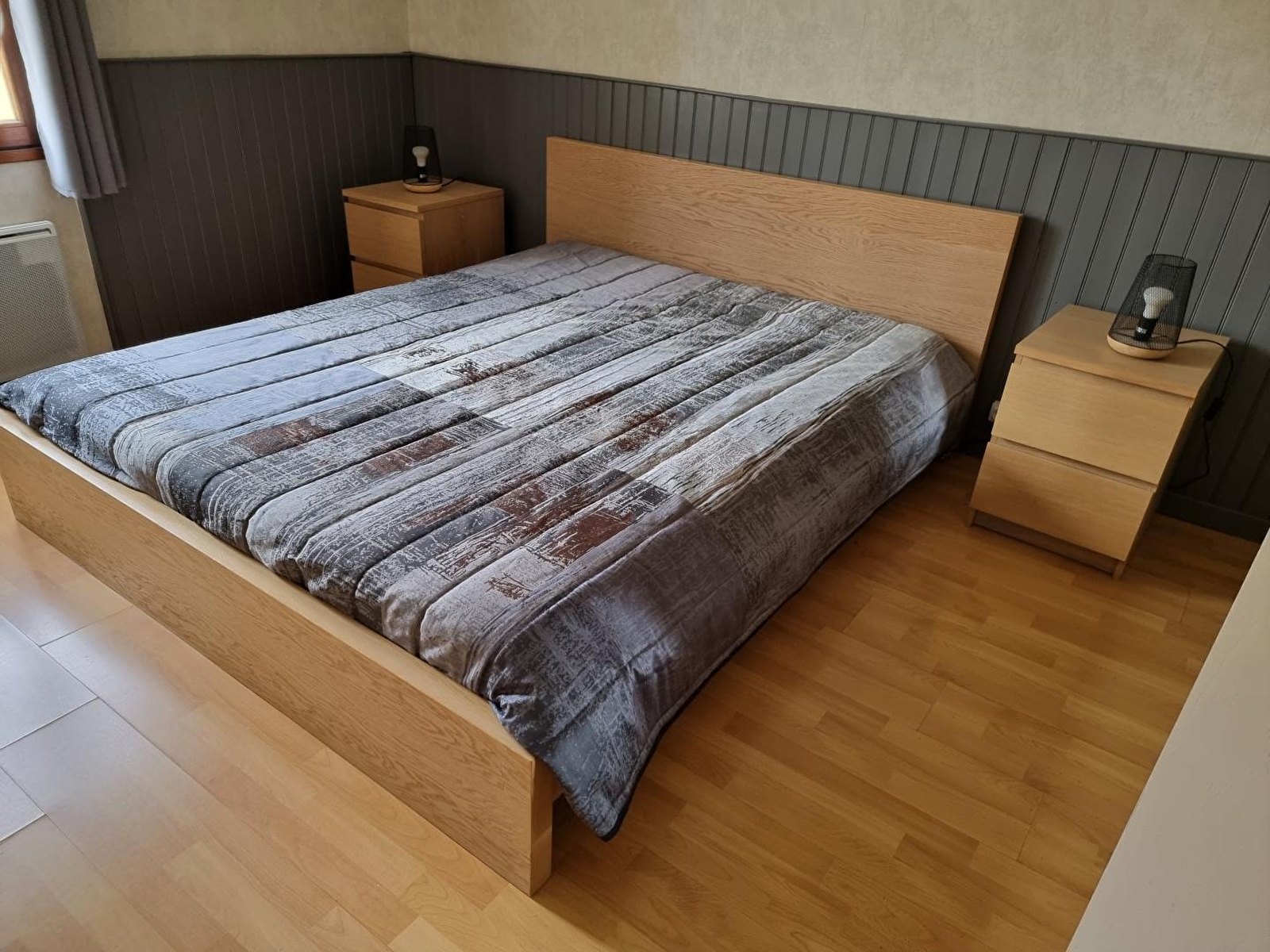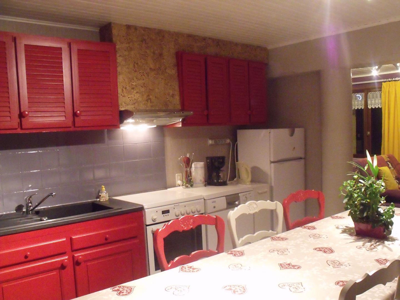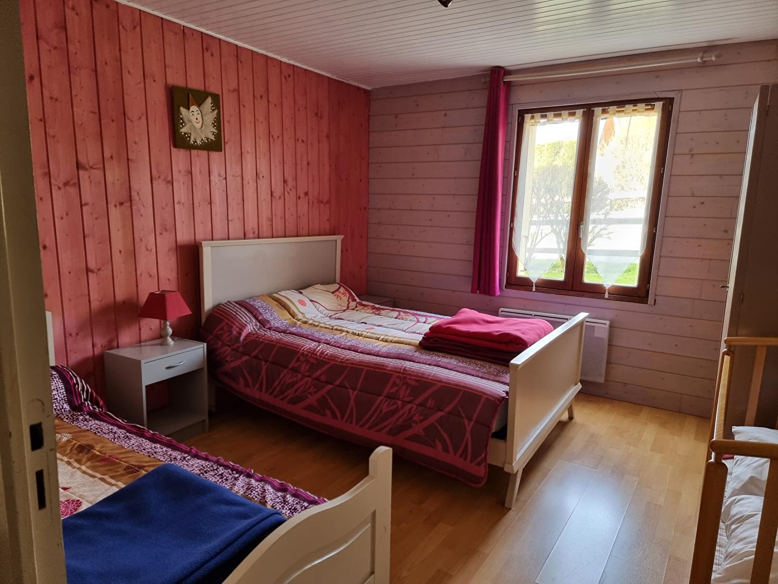 Logement au RDC d'une maison mitoyenne qui abrite un autre gîte. Cuisine-séjour avec poêle à bois, canapé, ch1: 1 lit 2 pl (160*200), ch2: 1 lits 1 pl et 1 lit double (140*190), ch3: 1 lit 2 pl (160*200), salle d'eau, wc indépendants, cellier. Cour commune non close, salon de jardin, barbecue commun. Chauffage électrique. Charges non comprises. A disposition: chaise bébé, 1 lit d'appoint, lecteur dvd bluray. Bois vendu. 1 seul animal accepté.
