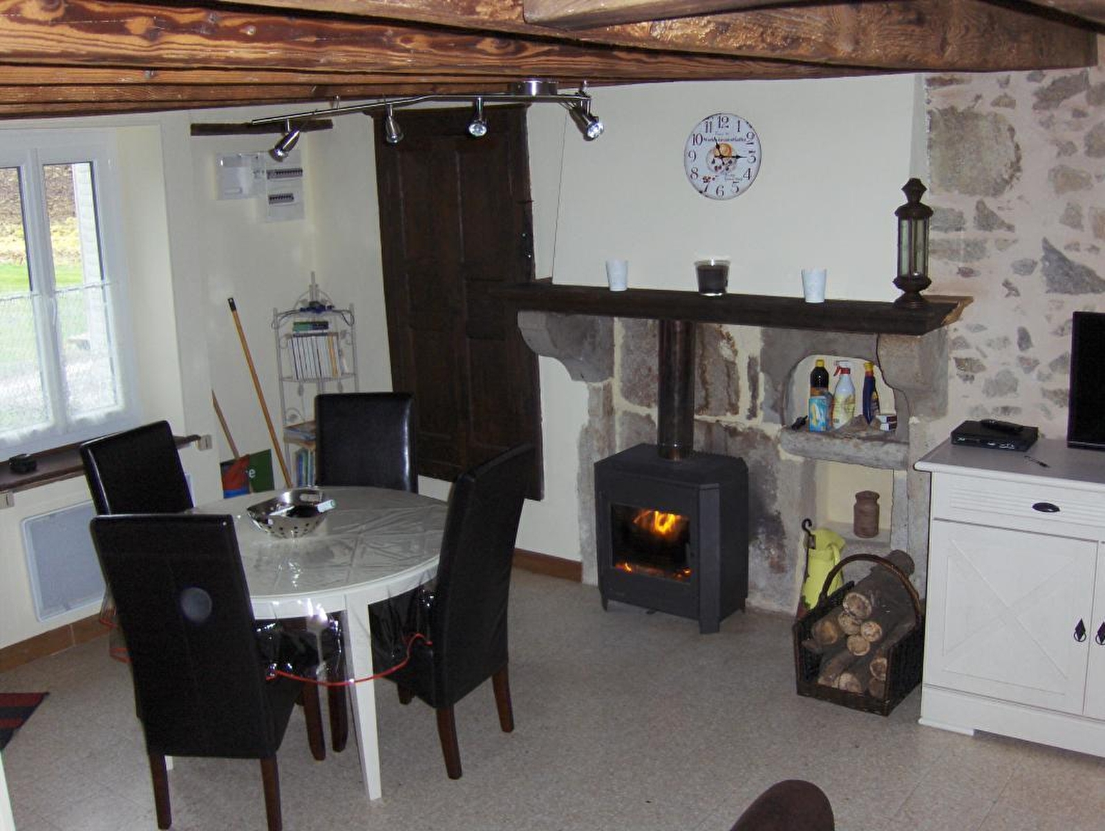 Composition : Maison individuelle voisinant maison propriétaire (totale indépendance sans vis-à-vis). Chauffage électrique + poêle à bois. Lave-linge dans buanderie en accès extérieur (en sous-sol). Rdc : séjour-cuisine-salon, Wc indépendant. 1er étage : chambre (lit 2 p. 140x190cm / lit 1 p. 80x190cm), salle d'eau (douche/Wc). Jardin (1000m²) + terrasse + local vélos privés. Petits commerces dont Supérette 4 km.