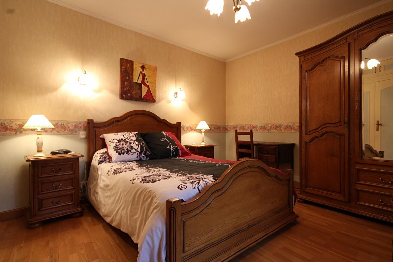 Composition : Maison individuelle. Wifi (fibre). Chauffage central gaz. 1er étage (accès par escalier extérieur) : cuisine, séjour-salon, 1 chambre (lit 2 p. 140x190cm), salle d’eau (douche), Wc indépendant. 2ème étage : 2 chambres en enfilade (lit 2 p. 140x190cm / 2 lits 1 p. 90x190cm). Jardin clos (800m²) + balconnet abrité + terrasse + garage (3 places) + local vélos + parking privés. Petits commerces 500m. Supermarché 1.5 km. Toutes commodités à 10 km (zone commerciale).