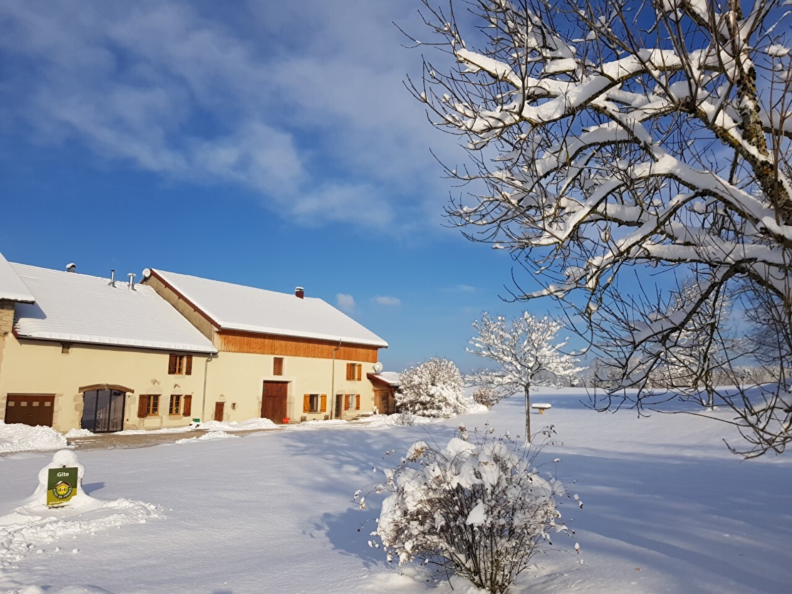 Vous recherchez le charme d'une vieille ferme, du calme pour vous reposer, de l'espace pour les enfants ..et nos amis les animaux, alors vous apprécierez cette ancienne ferme rénovée pouvant accueillir de deux à neuf personnes. Sur un terrain d' un hectare, cette belle maison est le point de départ de vos randonnées avant de vous retrouver pour un bon petit repas devant la cheminée ou un barbecue. Du nord au sud, des vignobles aux stations de ski du haut Jura en passant par la région des lacs et des cascades, chaque visite est une rencontre, un moment inoubliable. Chaque saison offre un décor nouveau, un regard différent sur cette région authentique. Que vous soyez randonneurs, pêcheurs, amoureux de la nature, attirés par la baignade, le VTT ou le ski ou que vous soyez à la recherche d'un patrimoine culturel ou naturel, le Jura vous enchantera. Notre location , de par son implantation géographique, vous garantira un séjour réussi. La petite commune de Saugeot est située au coeur de la région des lacs du Jura, à proximité des Cascades du Hérisson, des lacs et proche des stations de ski du haut Jura. Chèques vacances acceptés. Agencement : Grande cuisine de 20 m² avec cuisinière à bois, plaque cuisson, lave-vaisselle, micro-ondes, mini-four. Séjour de 30 m² avec cheminée et télévision, wifi. Chambre 1 avec un lit 140, un lit de 90, un lit bébé. Chambre 2 avec trois lits de 140. salle de bains avec baignoire, douche et lave-linge, WC indépendant. Appareil à raclette, barbecue, salon de jardin. TARIF pour 6 personnes : 50 euros supplémentaire.