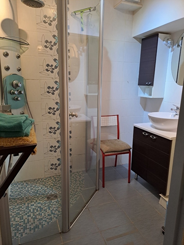 Centre ville, cuisine équipée, chambre avec grand lit, salon avec banquette-lit. Internet, TV, parking privé, salle d'eau, wc, possibilité de location de draps : 10 euros /lit