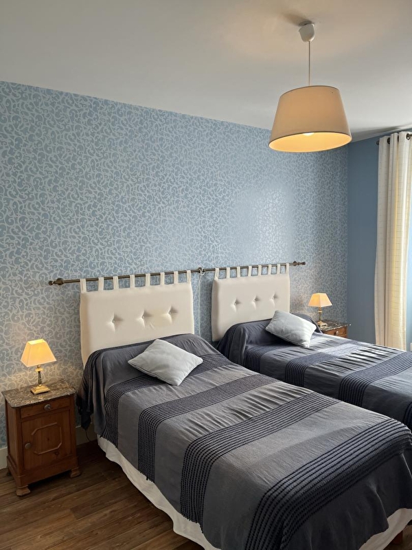 Composition : Maison de village mitoyenne. Wifi. Chauffage central fioul. Entrée du gîte de plain-pied depuis la ruelle. 1er étage : séjour-cuisine, séjour-salon, 1 chambre (lit 2 p. 140x190cm), sdb (baignoire), WC indépendant. 2ème étage : 3 chambres (2 lits 1 p. 90x190cm / lit 2 p. 160x200cm / 2 lits 1 p. 90x190cm), sdb (baignoire/WC). Jardin clos + balcon-terrasse + local vélos (avec babyfoot) privatifs. Parking public gratuit aisé sur place. Commodités à 5 km. Gare 25 km.