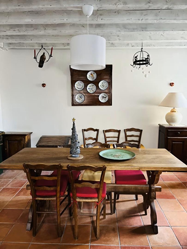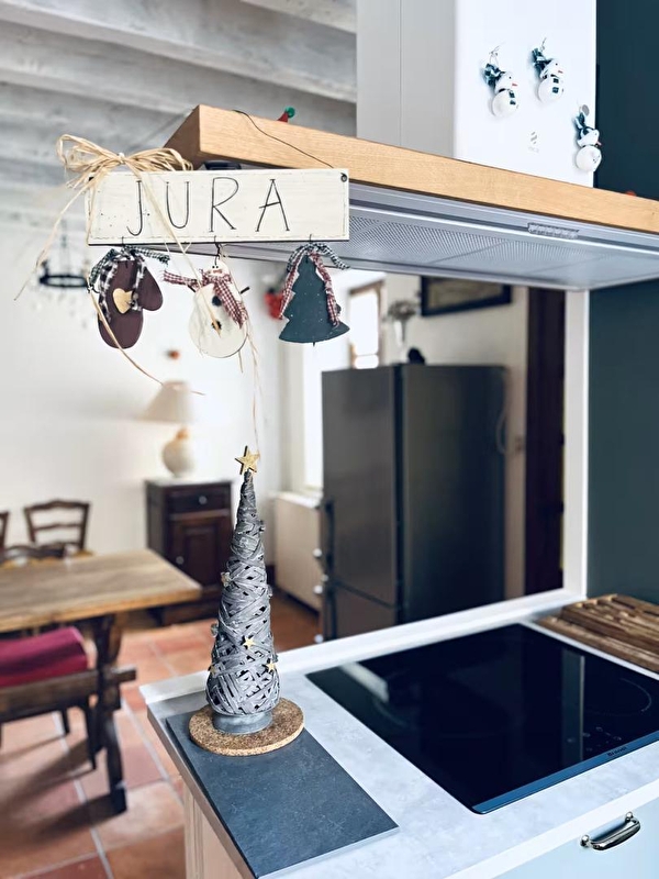 Cette ancienne cure a su garder ses atours: elle offre différents espaces à investir, cour intérieure terrasse, jardin clos et ombragé, salon, bibliothèque, chacun trouvera sa place.D'une capacité d'accueil de 8 personnes ce gîte offre une belle surface habitable d'environ 175 m² ,composée d'une cuisine toute équipée avec plafond à la française, d'un séjour-salle à manger avec boiseries et cheminée donnant sur une terrasse, d'un salon-bibliothèque, d'une salle de bain en rez-de-chaussée et d'un WC indépendant. A l'étage, une deuxième salle de bain avec WC, et 4 chambres avec vue sur le jardin et le joli terrain arboré d'environ 1200m² . Les quatre chambres situées à l'étage , donnent sur le jardin : la chambre des Hirondelles comprend un lit double (140*190) et un 1 lit simple (90*190), une salle de bains avec WC attenante, la chambre des Moineaux 2 lits simples jumelables 90*190, la chambre de la Chouette et celle du Chardonneret , un lit double 160*200. Pour votre plus grand confort, les draps sont fournis. Côté extérieur, vous pourrez profiter de la quiétude des lieux sur la terrasse équipée d'un salon de jardin, d'un barbecue et de transats. Idéalement situé, à 5 mns de Poligny, capitale du Comté où vous trouverez tous les commerces et également la Maison du Comté pour découvrir les secrets de la fabrication de ce célèbre fromage. Autres loisirs à proximité : baignade ( piscine de Poligny et lacs), œnologie et découverte des vins du jura. Parking sur place et à proximité immédiate et volets dans les chambres.