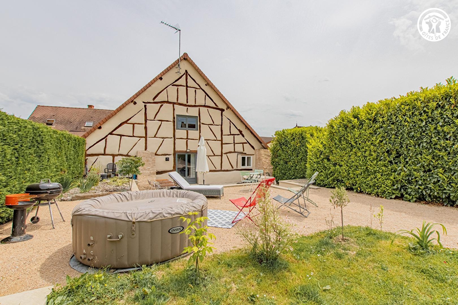 Authentique imposante grange traditionnelle de caractère du XVIIIe, pétrie d'histoire & soigneusement réhabilitée, jouxtant une élégante église au cœur d'un paisible & pittoresque petit village bourguignon, parfaitement sauvegardé. En pleine douce campagne vallonnée, aux confins du Chalonnais et du Tournugeois-Clunisois, à l'orée de deux vastes forêts sauvages (le Bois du Grand Bragny & la Forêt domaniale de la Ferté / à parcourir lors de reposantes balades à pied ou VTT), au creux de la bucolique vallée de la Grosne (& sa rivière poissonneuse toute proche), magnifique écrin préservé de nature & verdure conjuguant coteaux de vignobles & belles prairies bocagères parsemées d'étangs, protégé en "Zone Natura 2000" & ZNIEFF pour ses riches écosystèmes faunistiques & floristiques. Gîte de très bon confort à l'architecture atypique. Ultra spacieux. Exceptionnelle pièce de vie de 100m². Chaleureux cachet campagnard aux accents contemporains conjugué à l'âme totalement dépaysante des lieux (murs en pierres & pans de bois dont un sculptural "squelette ajourée", poutres & charpente... d'origine). Beaucoup de charme & de caractère. Agréable cour close, végétalisée & fleurie, dotée d'une terrasse complétée par un jardin lové à l'arrière de la maison, comprenant une large terrasse en gravier, un spa extérieur 4 places, terrain de pétanque naturel & jardinet.